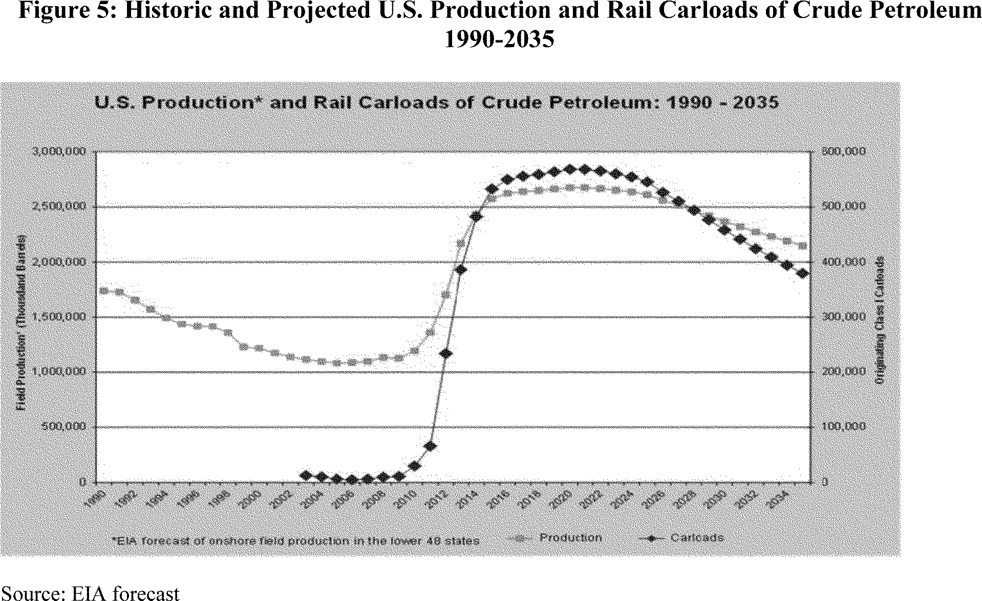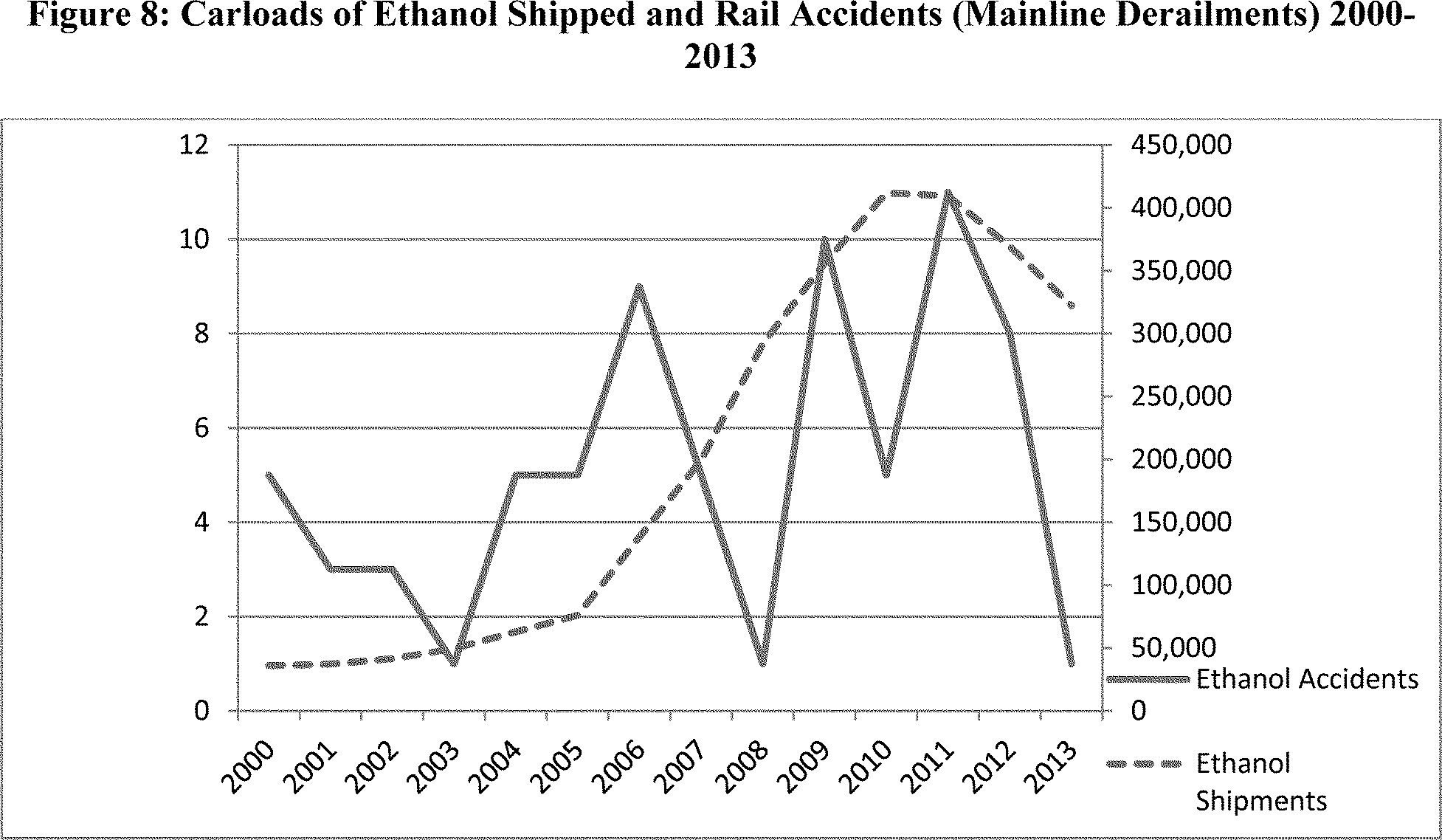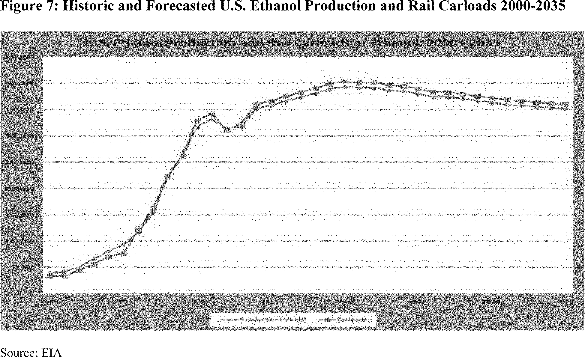 U.S. ethanol production has also increased considerably during the last 10 years and has generated similar growth in the transportation of ethanol by rail.[4]