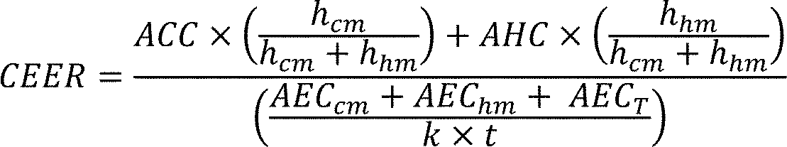 For units with heating and cooling modes, use the annual operating hours for cooling and heating, as outlined in section 5.4 of this appendix to calculate the total combined energy efficiency ratio, CEER, expressed in Btu/Wh. For units with no heating mode, CEER shall be equal to CEERcm,