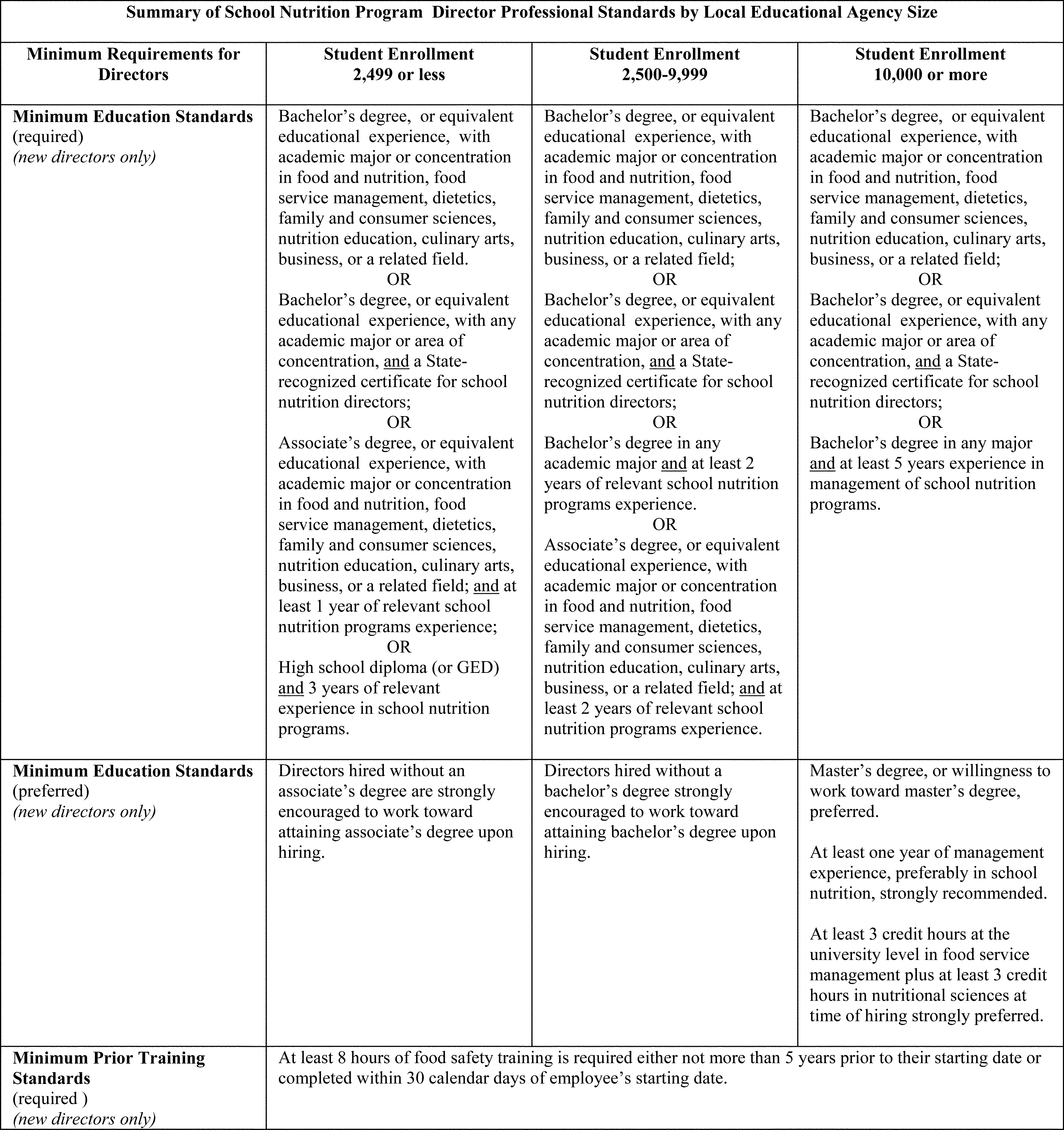 Proposed Rule Hiring Standards for School Nutrition Program Directors by Local Educational Agency Size
