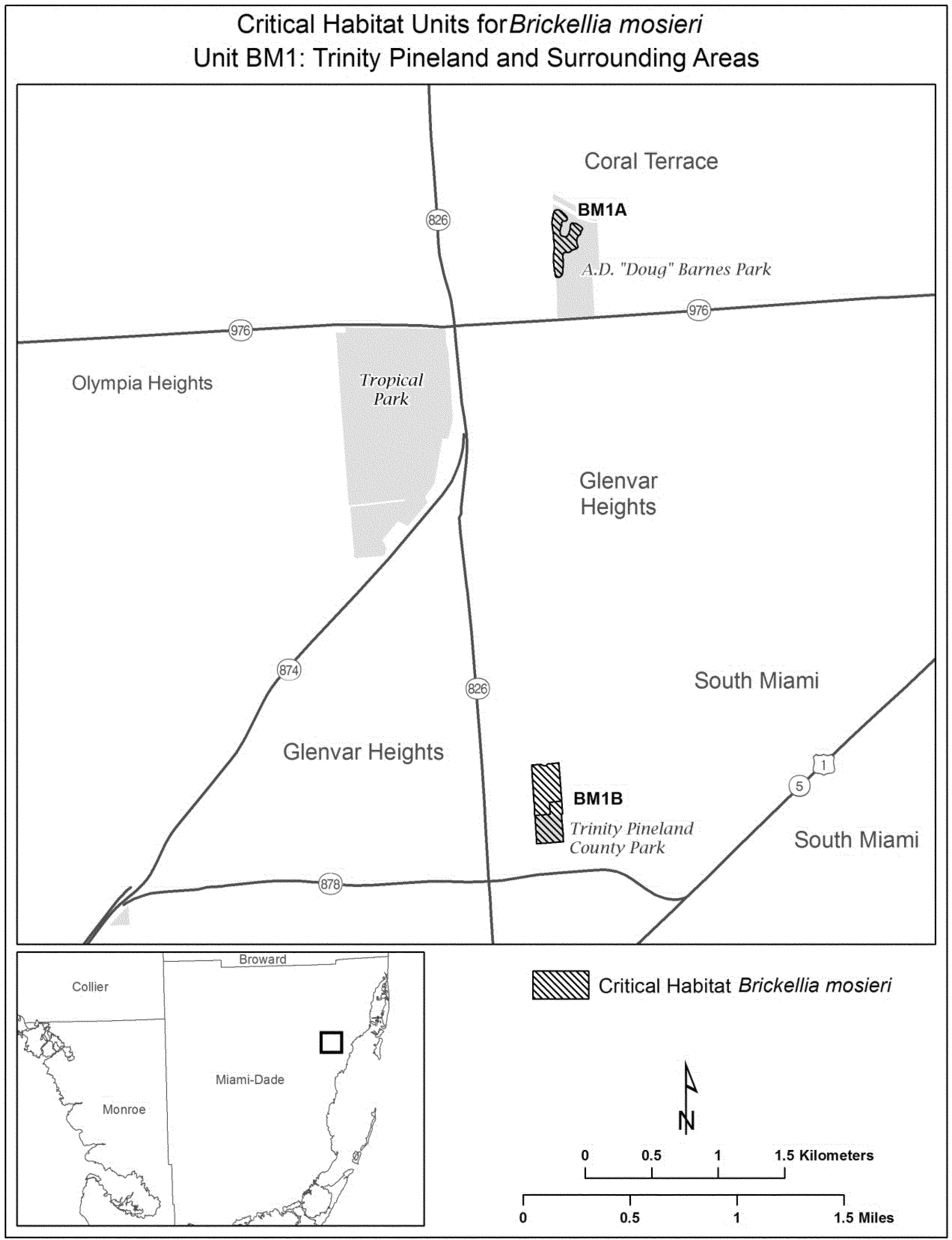 (6) Unit BM1: Trinity Pineland and surrounding areas, Miami-Dade County, Florida. Map of Unit BM1 follows: