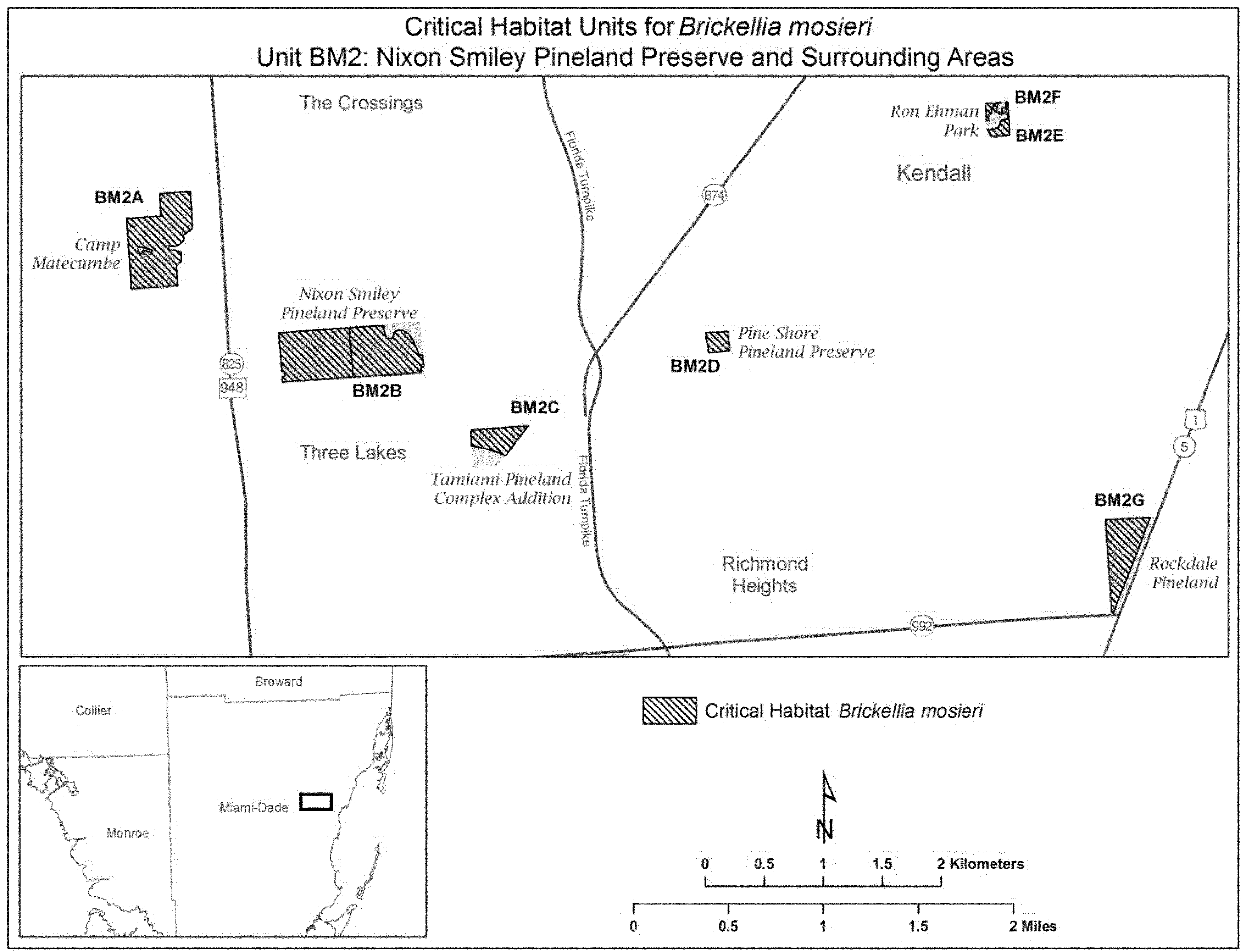 (7) Unit BM2: Nixon Smiley Pineland Preserve and surrounding areas, Miami-Dade County, Florida. Map of Unit BM2 follows: