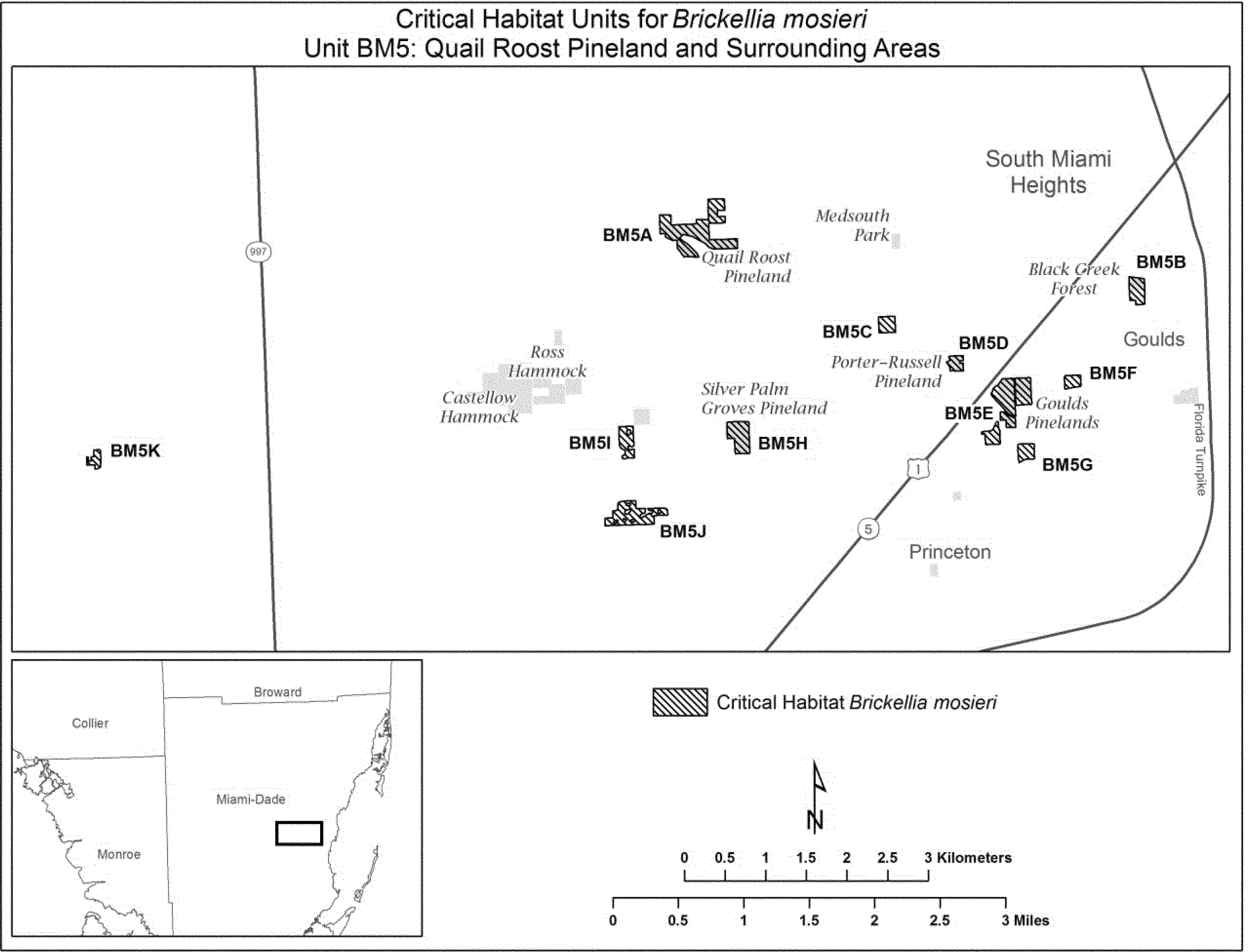 (10) Unit BM5: Quail Roost Pineland and surrounding areas, Miami-Dade County, Florida. Map of Unit BM5 follows: