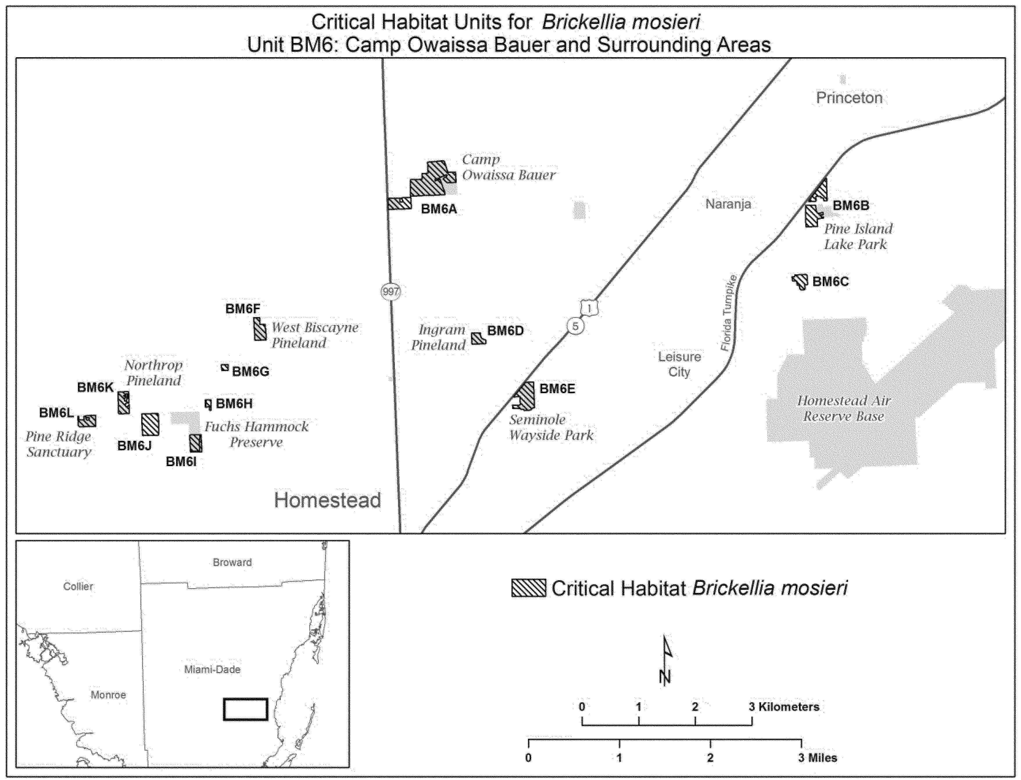 (11) Unit BM6: Camp Owaissa Bauer and surrounding areas, Miami-Dade County, Florida. Map of Unit BM6 follows: