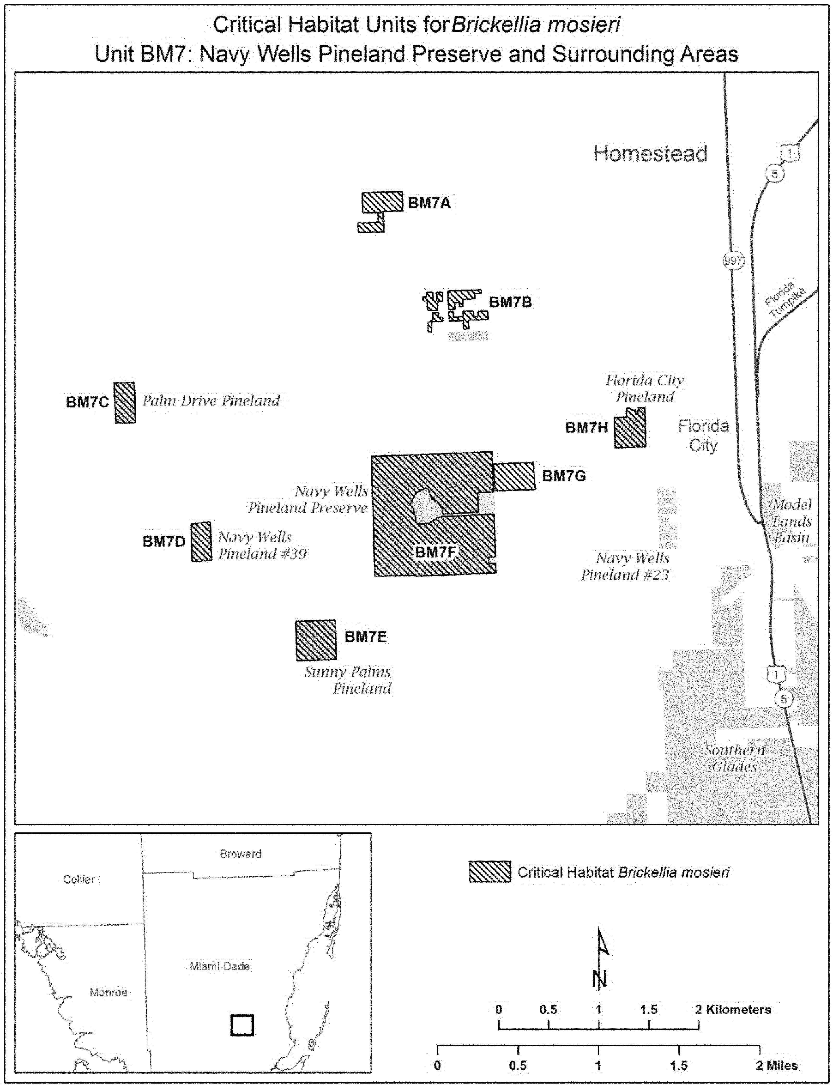 (12) Unit BM7: Navy Wells Pineland Preserve and surrounding areas, Miami-Dade County, Florida. Map of Unit BM7 follows: