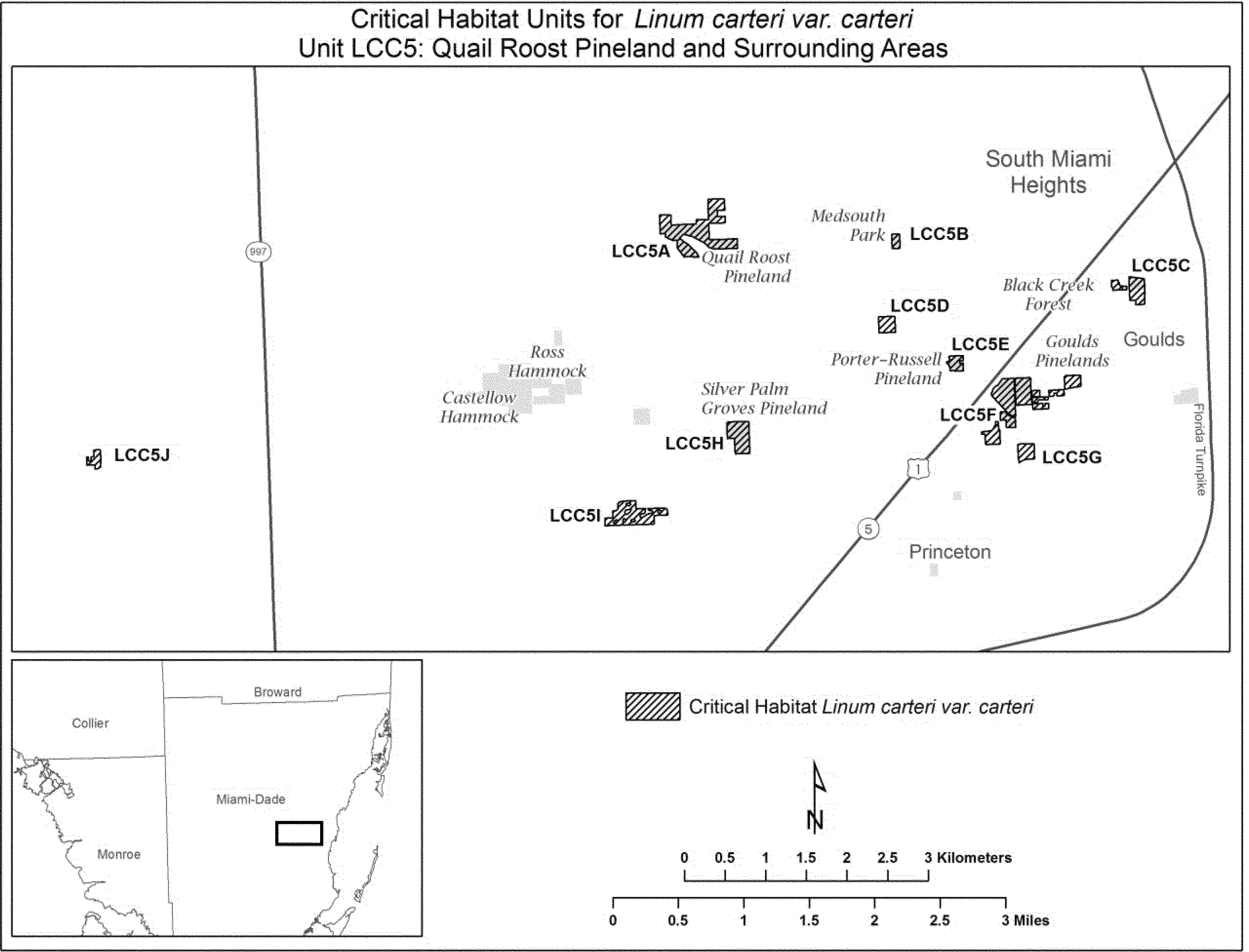 (10) Unit LCC5: Quail Roost Pineland and surrounding areas, Miami-Dade County, Florida. Map of Unit LCC5 follows: