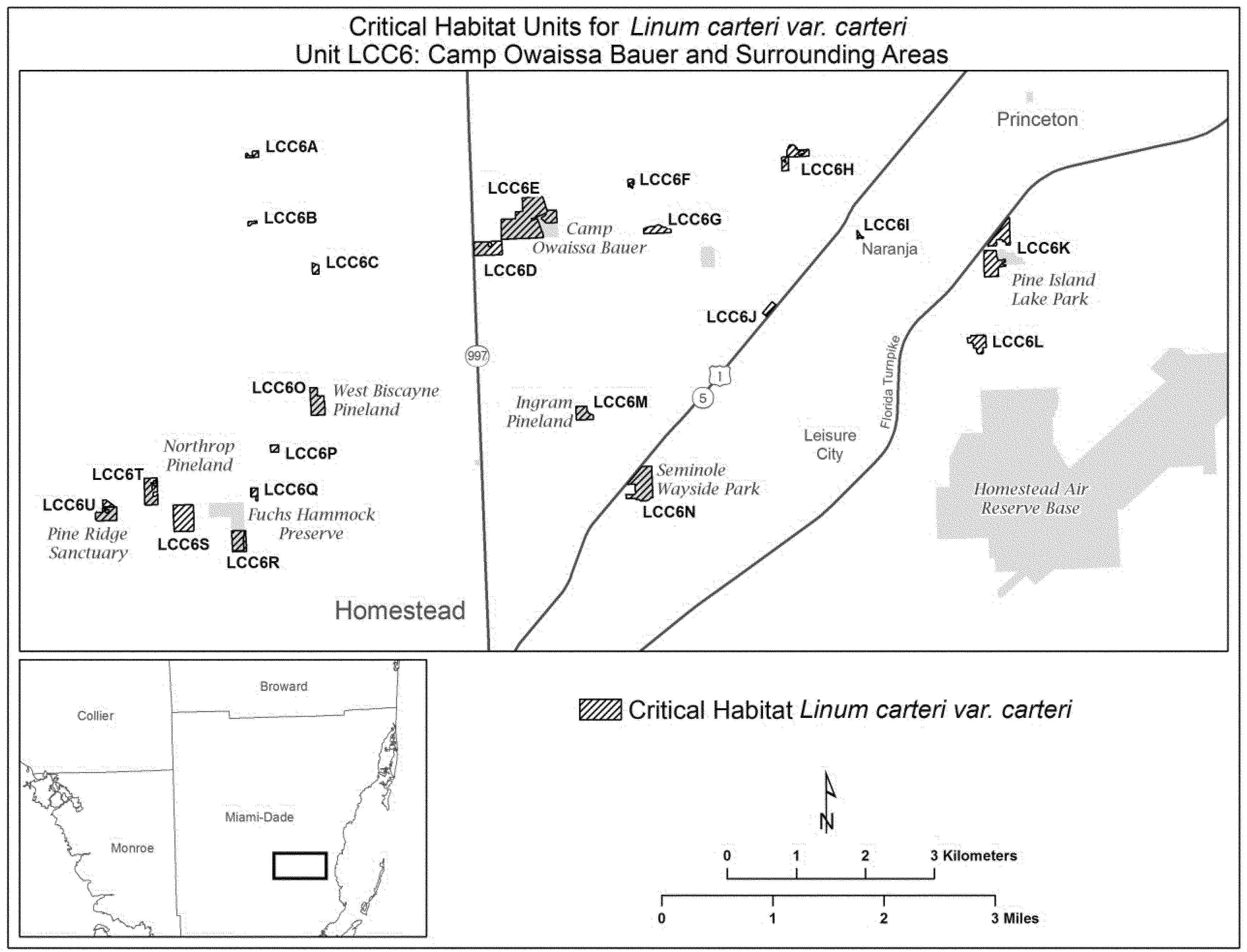 (11) Unit LCC6: Camp Owaissa Bauer and surrounding areas, Miami-Dade County, Florida. Map of Unit LCC6 follows: