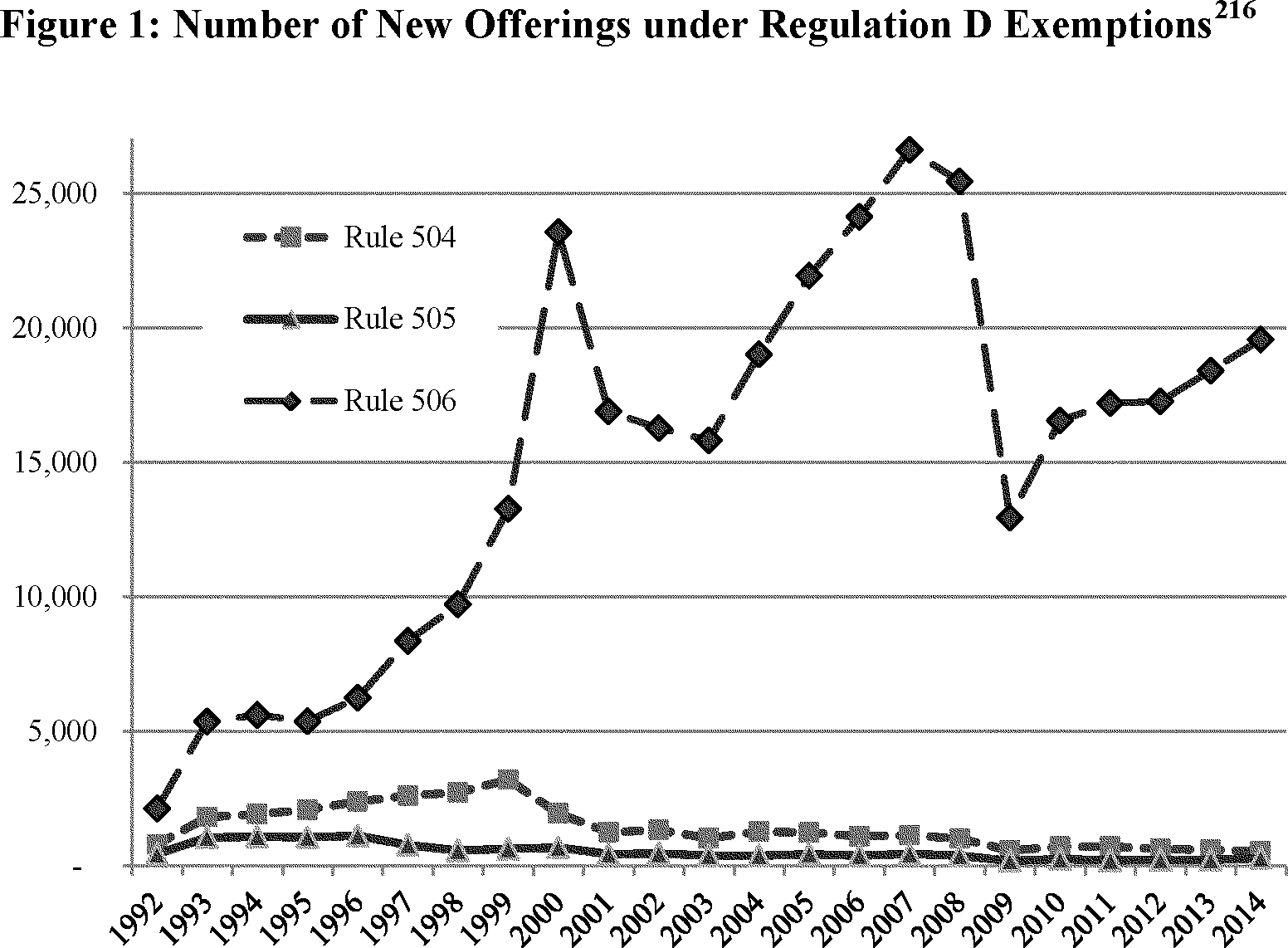 Figure 1 in Section V.1 above. For purposes of the PRA estimates, and based on the data provided for Rule 504 and Rule 505 offerings in 2014, we assume that approximately 750 issuers would file a Form D indicating reliance on Rule 504 after the effectiveness of any rule amendments proposed today. This figure includes issuers that, before the adoption of any potential amendments to Rule 504 proposed today, would have conducted offerings pursuant to Rule 505, but that after the adoption of any such amendments would likely conduct their offerings pursuant to Rule 504.