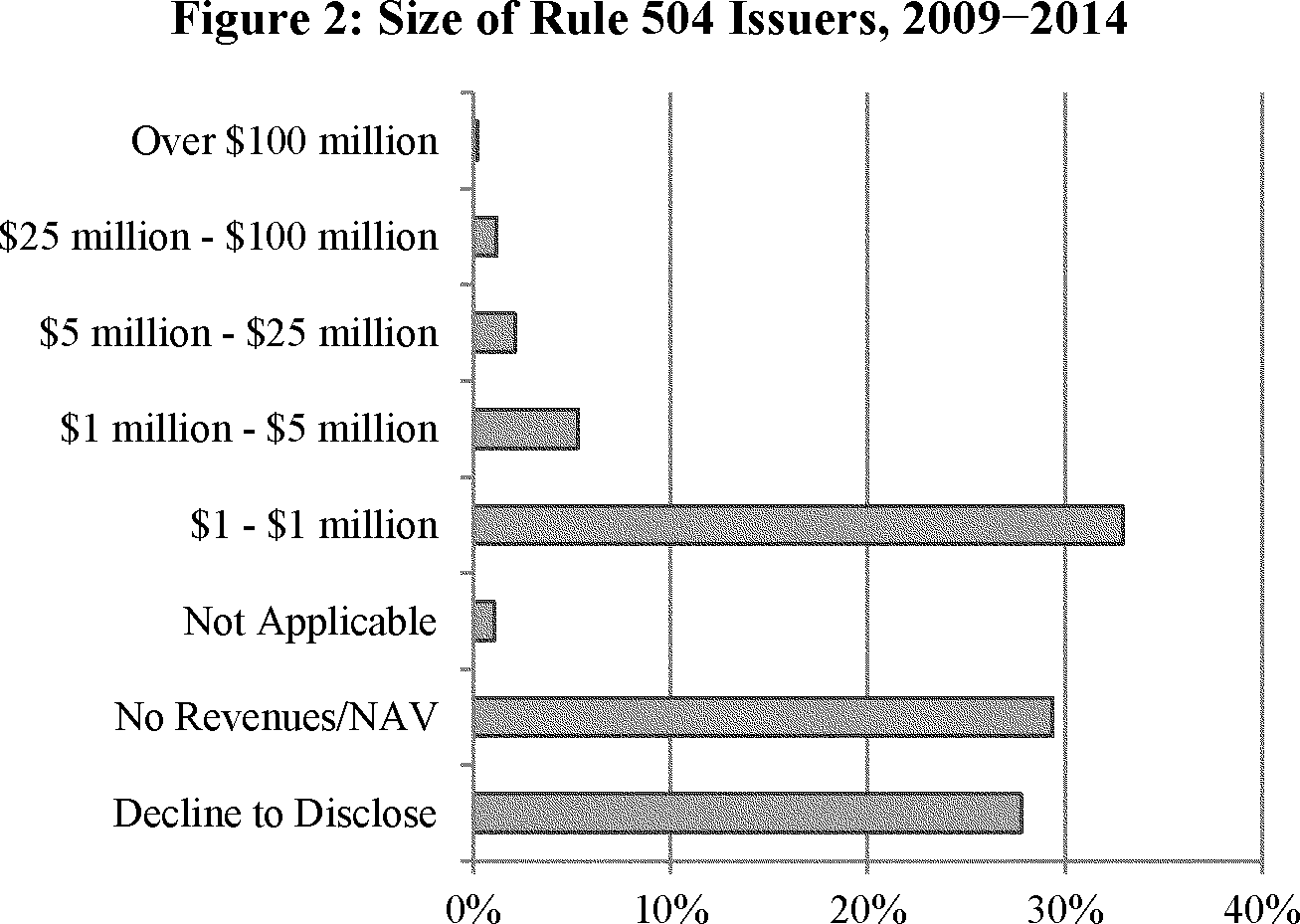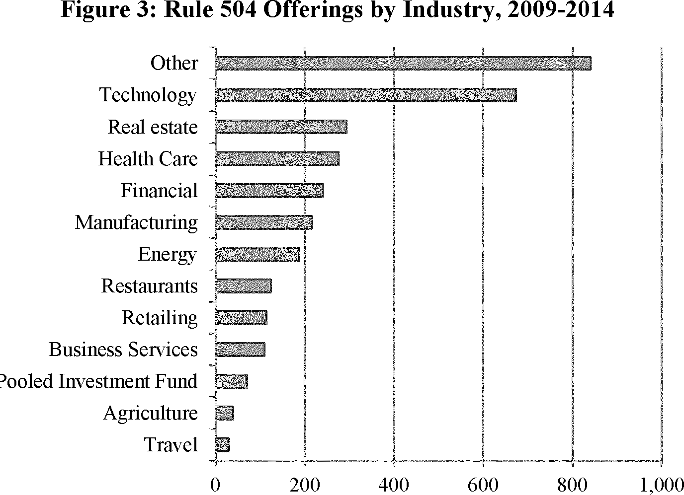 Filing data reviewed by the staff of the Commission's Division of Economic and Risk Analysis indicate that for 2014, 544 issuers claimed Rule 504 and 289 issuers claimed Rule 505 in their Form D filings with the Commission.