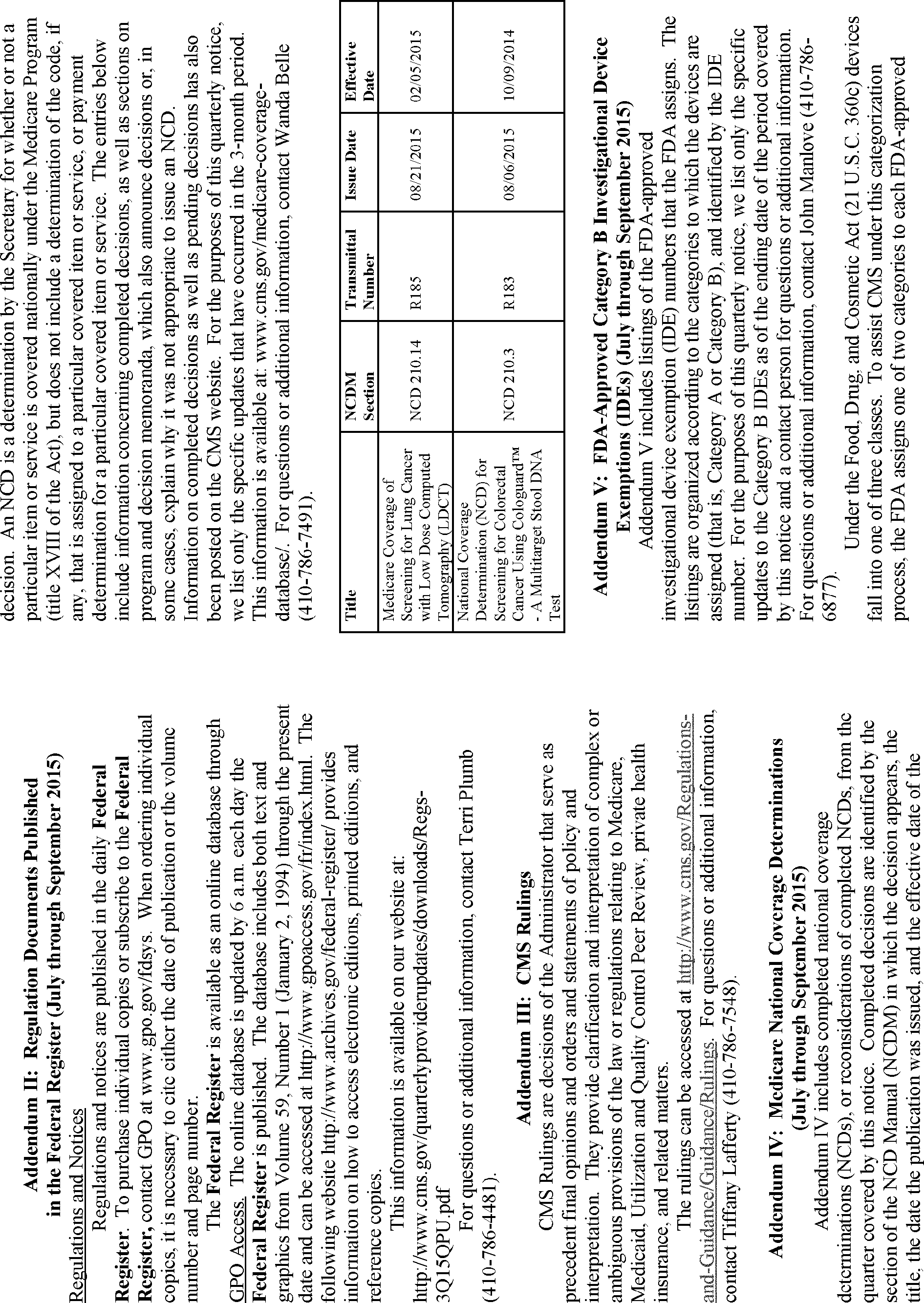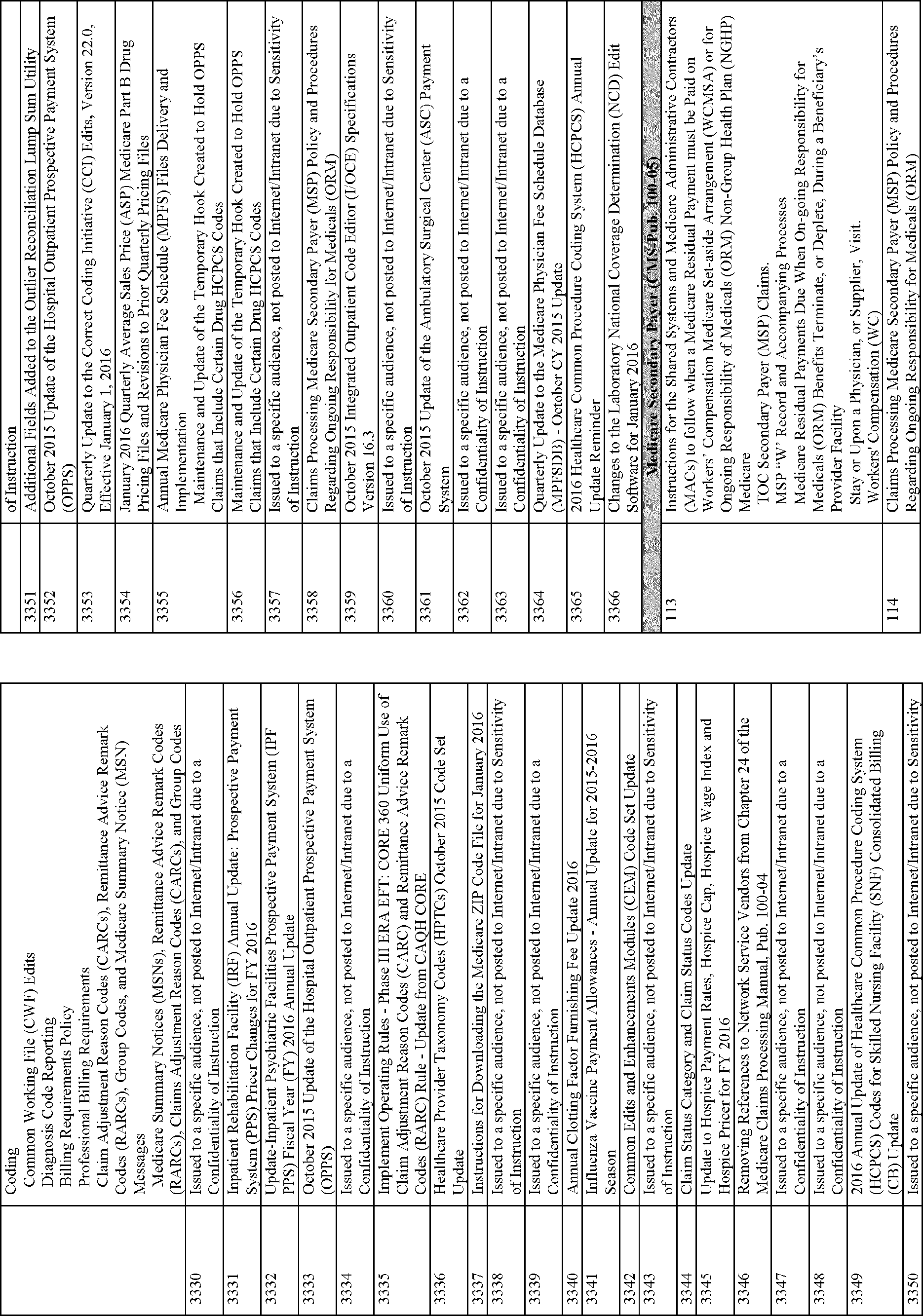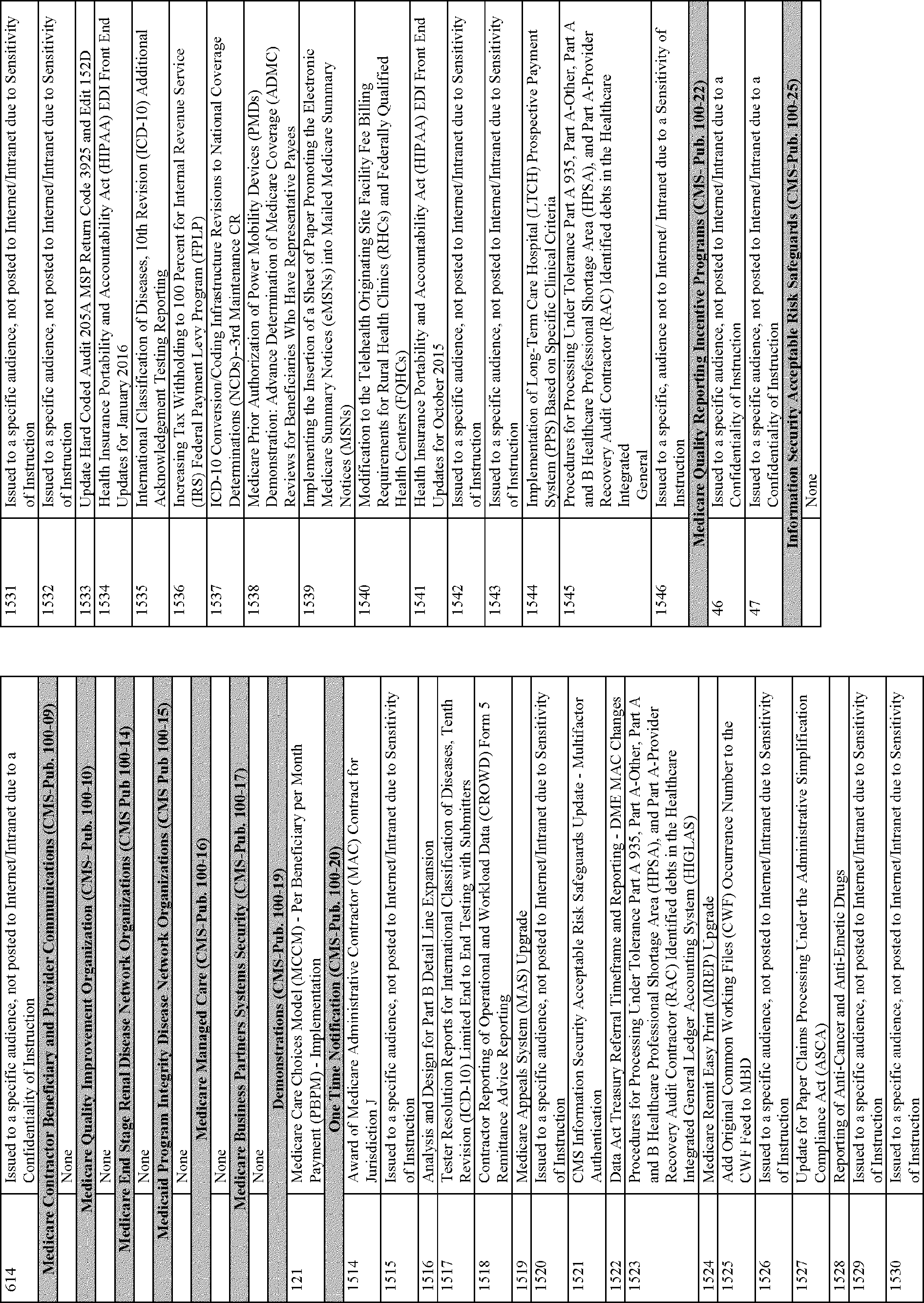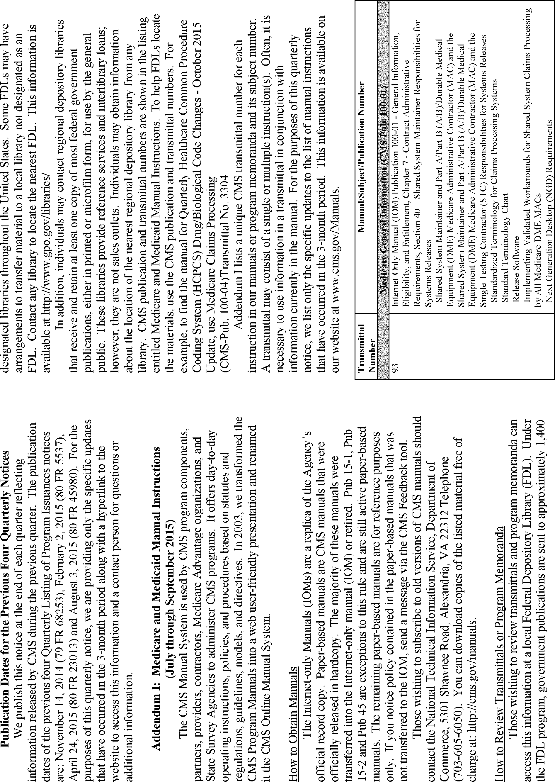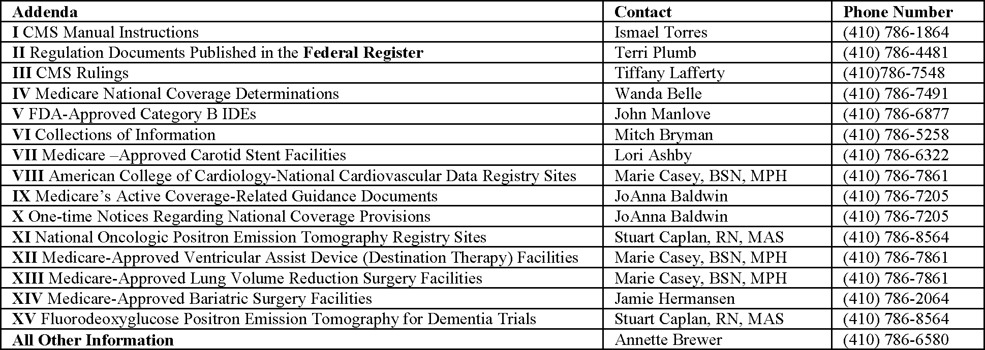 This notice is organized into 15 addenda so that a reader may access the subjects published during the quarter covered by the notice to determine whether any are of particular interest. We expect this notice to be used in concert with previously published notices. Those unfamiliar with a description of our Medicare manuals should view the manuals at http://www.cms.gov/manuals.