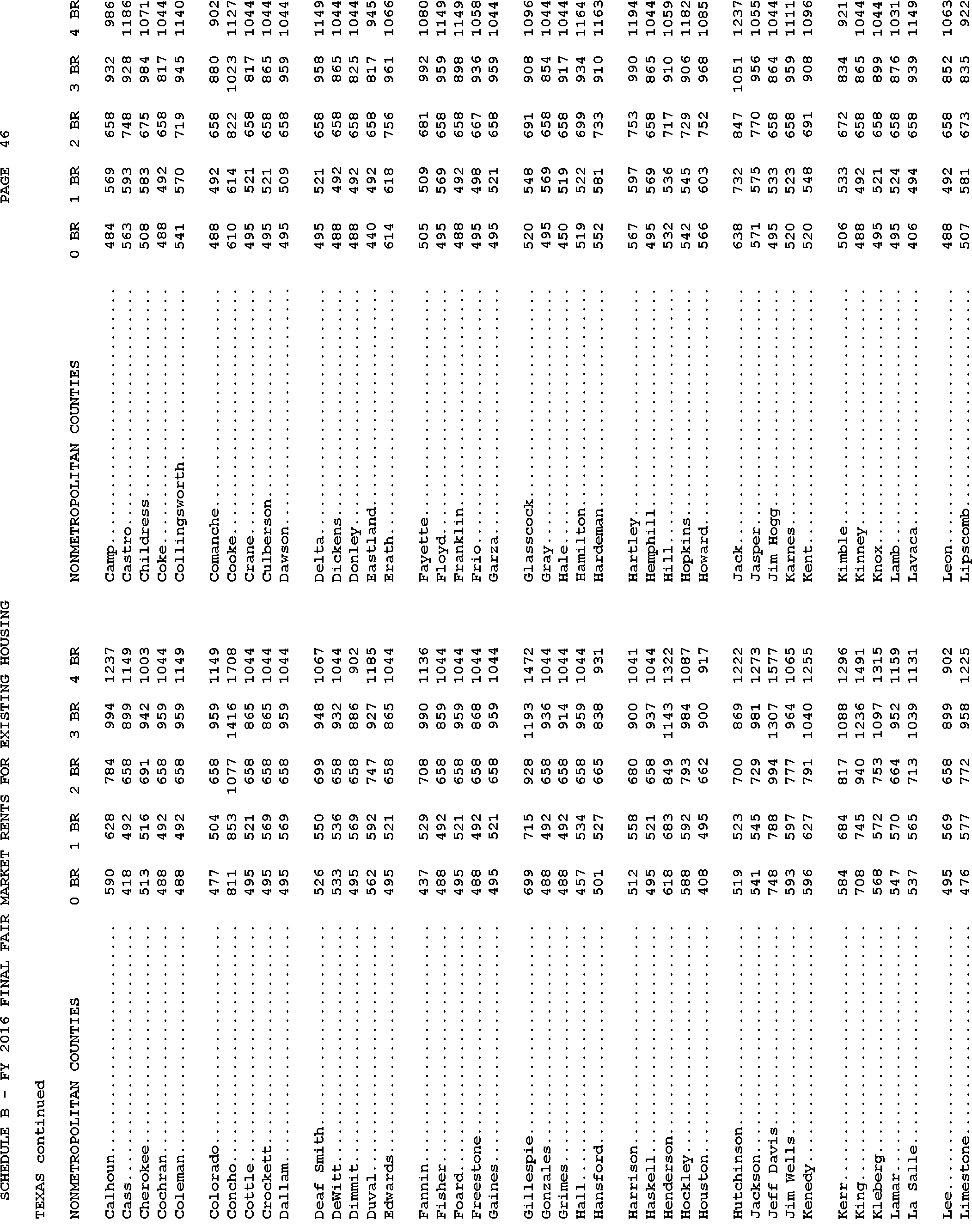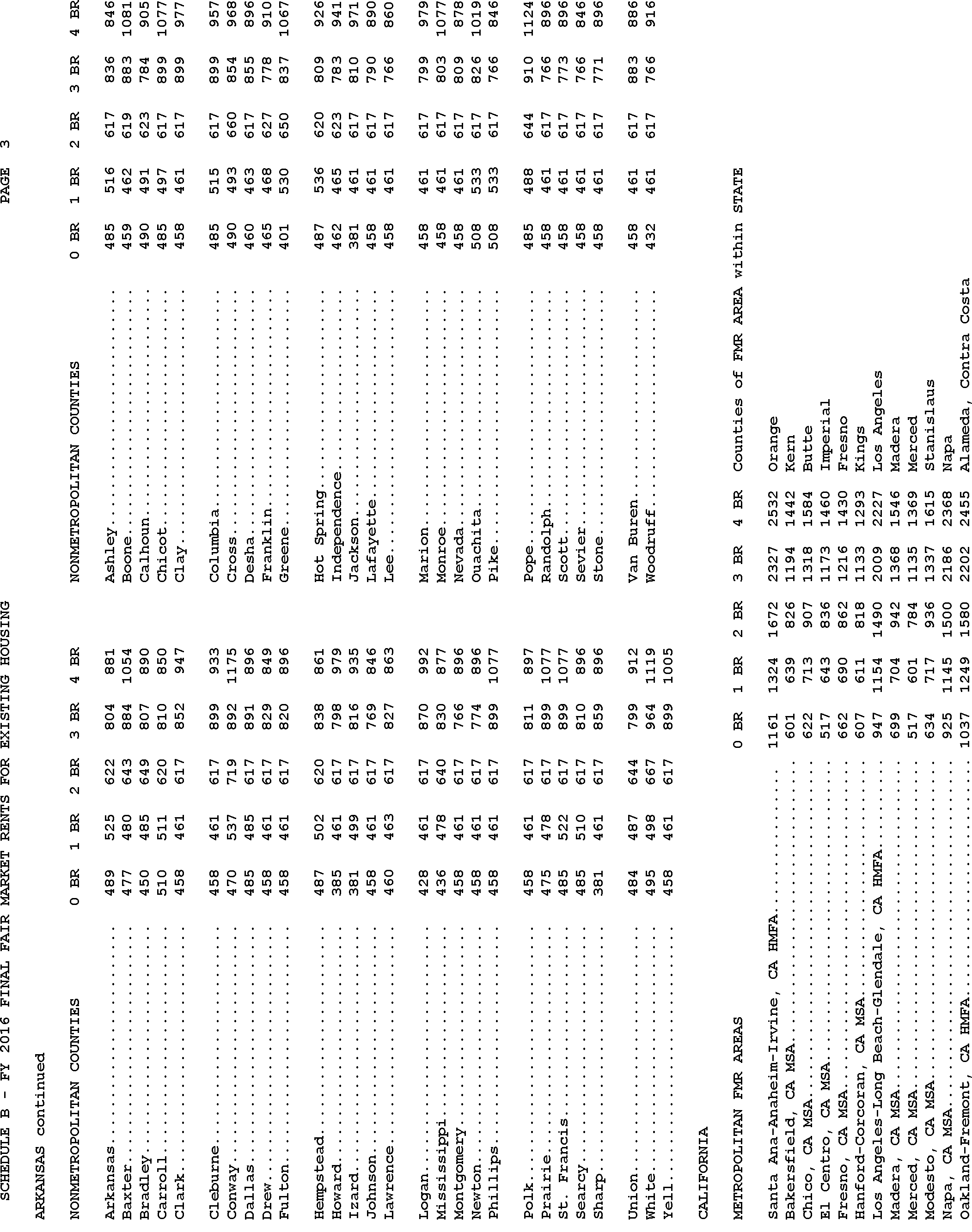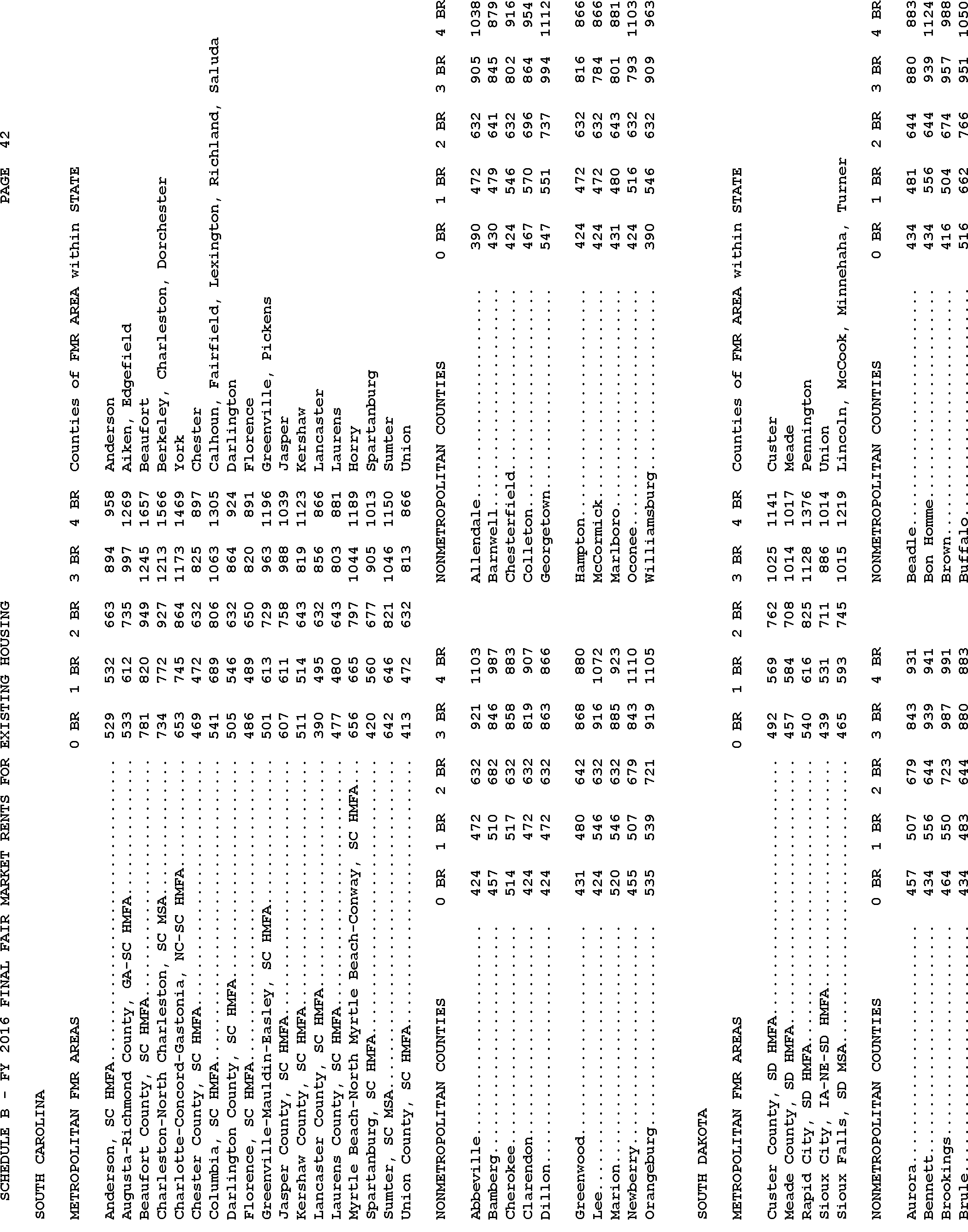 All approved exceptions to these rents based on survey data that were in effect in FY 2015 were updated to FY 2016 using the same data used to estimate the HCV program FMRs. If the result of this computation was higher than 40 percent of the new two-bedroom rent, the exception remains and is listed in Schedule D. The FMR area definitions used for the rental of manufactured home spaces are the same as the area definitions used for the other FMRs. No additional exception requests were received in the comments to the FY 2016 Proposed FMRs.