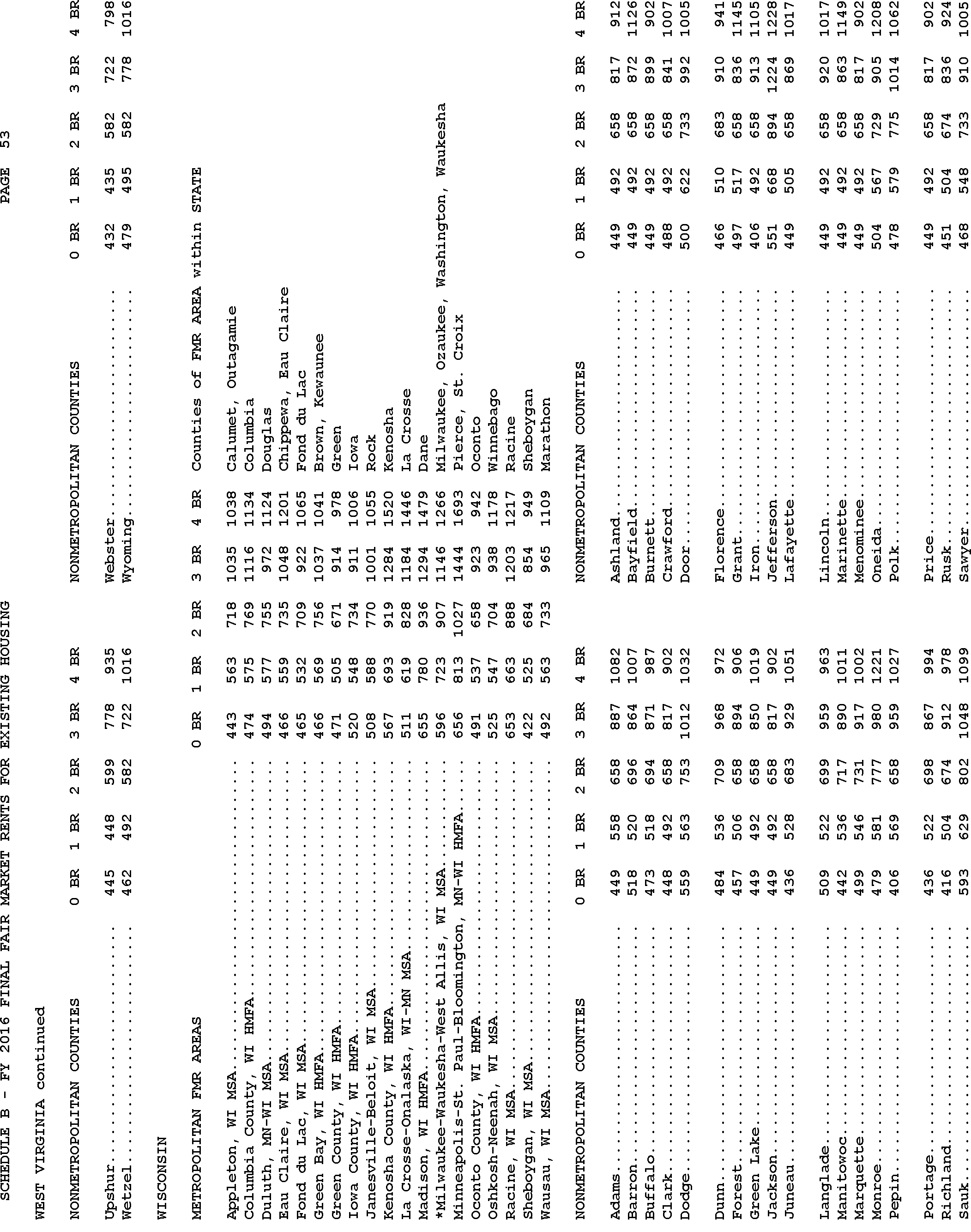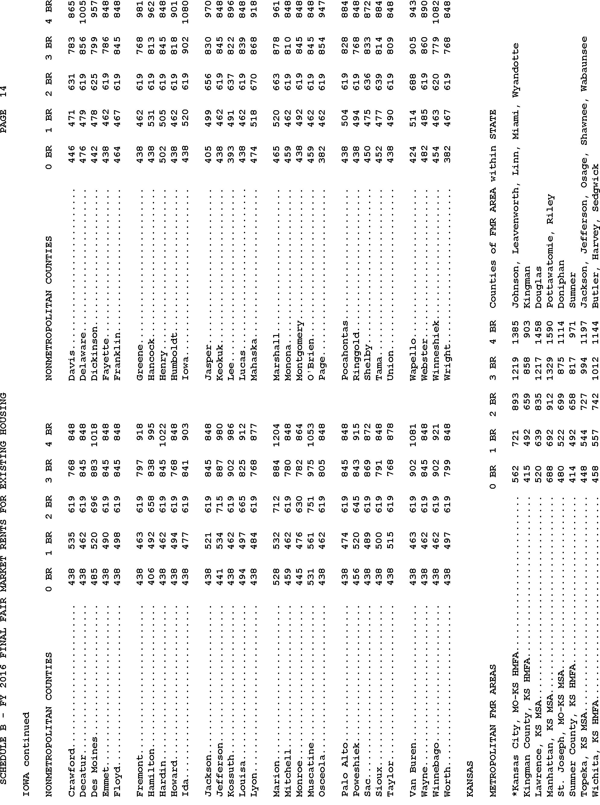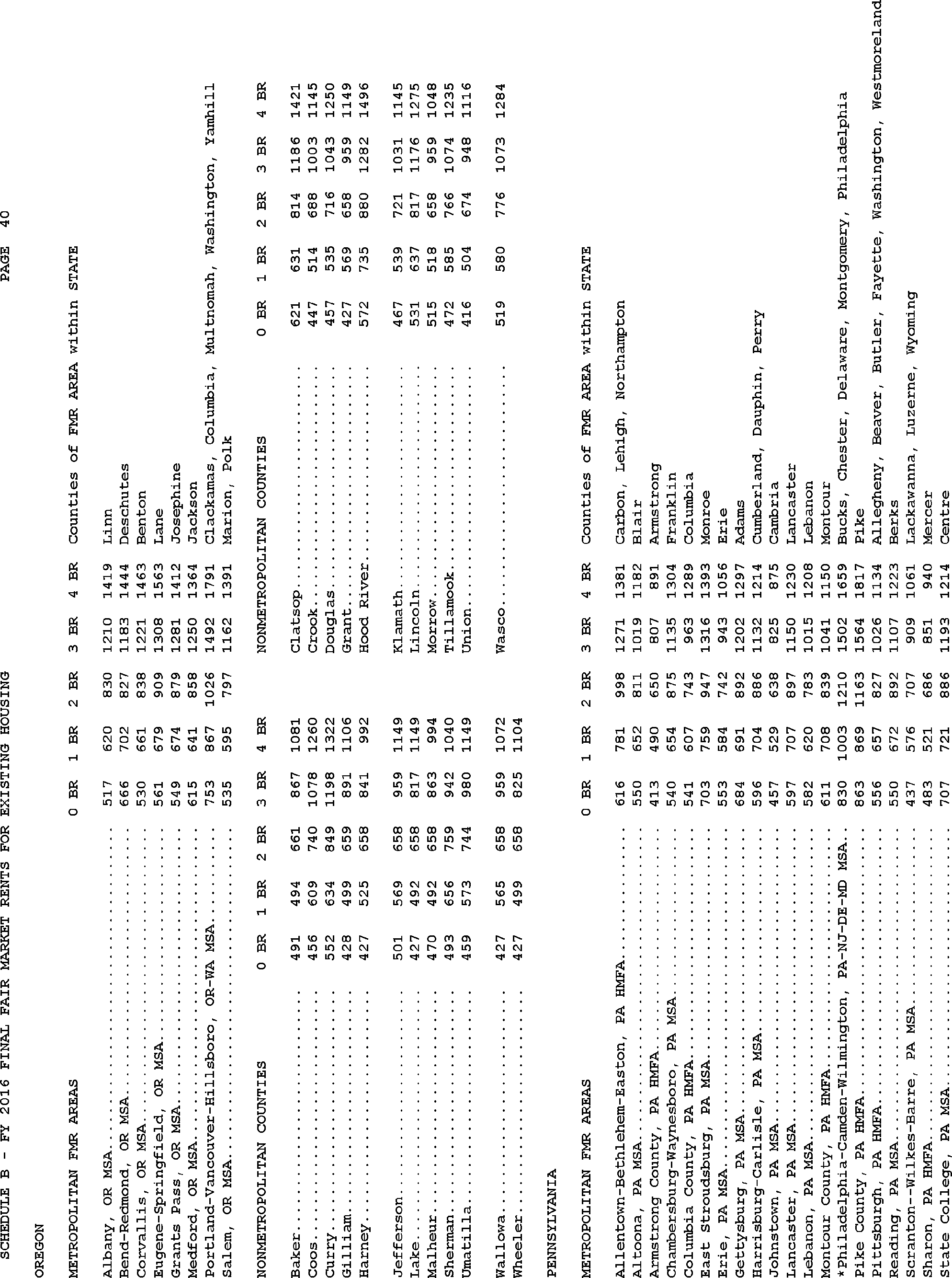 FMRs are shown at the 40th or 50th percentile in Schedule B. For informational purposes, the 40th percentile recent-mover rents for the areas with 50th percentile FMRs will be provided in the HUD FY 2016 FMR documentation system at