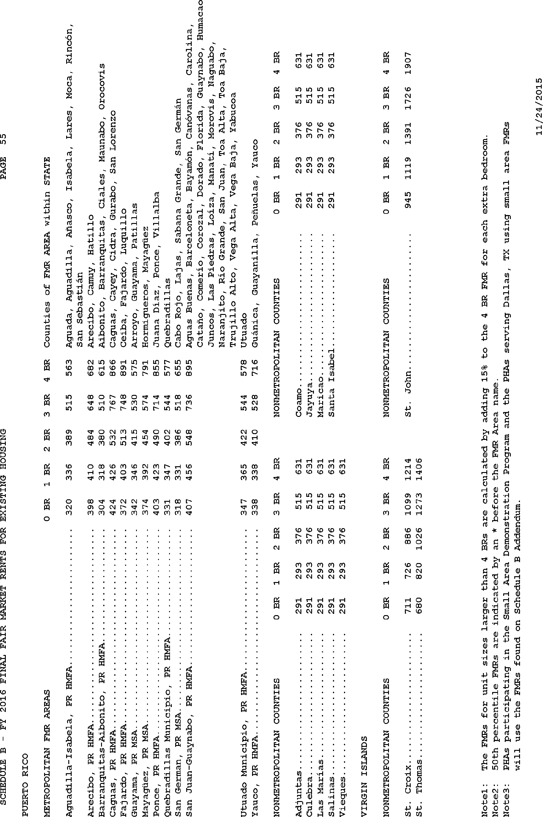HUD updates base rents for Puerto Rico FMRs using the 2009-2013 Puerto Rico Community Survey (PRCS); HUD first updated the Puerto Rico base rents in FY 2014 based on 2007-2011 PRCS data collected through the ACS program. The Bureau of the Census does not collect data annually using the ACS for the Pacific Islands (Guam, Northern Marianas and American Samoa) or the US Virgin Islands; however, as part of the 2010 Decennial Census, the Census Bureau conducted a “long-form” sample surveys for these areas. These data are incorporated in the FY 2016 FMRs. For the first time, St. John, USVI will have an FMR that is separate from St. Thomas, USVI and American Samoa and the Northern Mariana Islands will have FMRs separate from Guam.