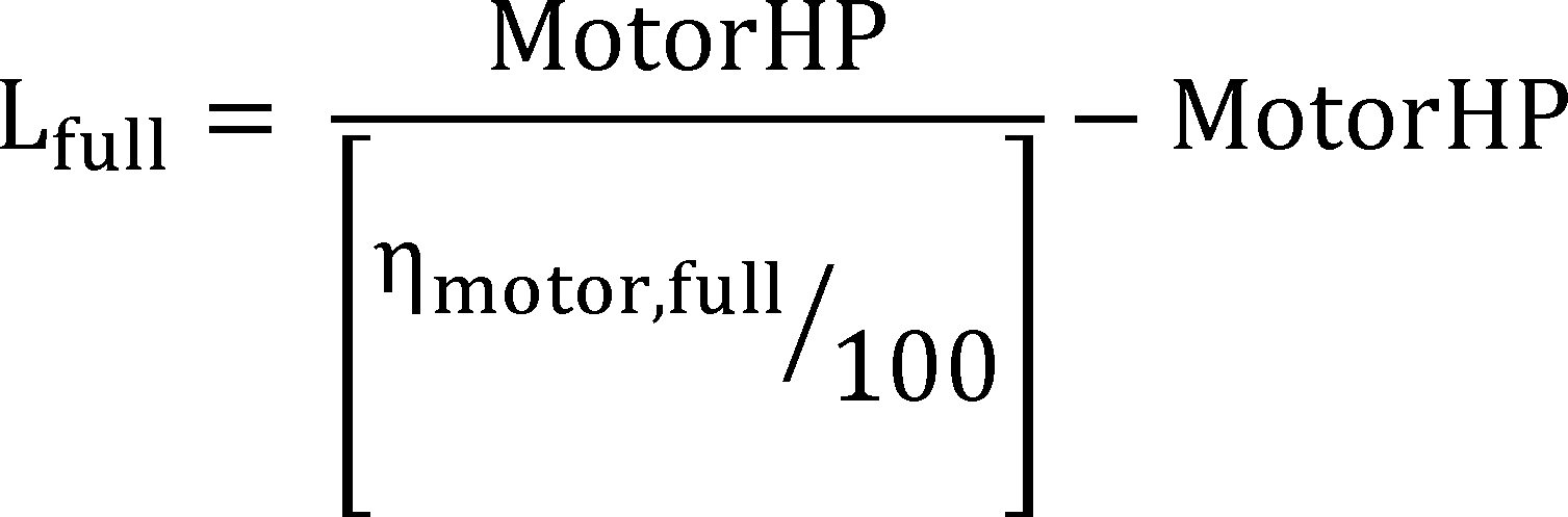 and described it as equivalent to “default motor losses at full load.” However, upon further review, DOE finds this terminology confusing because this equation applies both to pumps rated as bare pumps, for which a default nominal full load motor efficiency applies, as well as pumps rated with motors and pumps rated with motors and controls, for with the nominal full load motor efficiency with which the pump is rated applies (not a default value), depending on the context. Therefore, in this final rule, DOE is updating the terminology to use the nomenclature Lfull