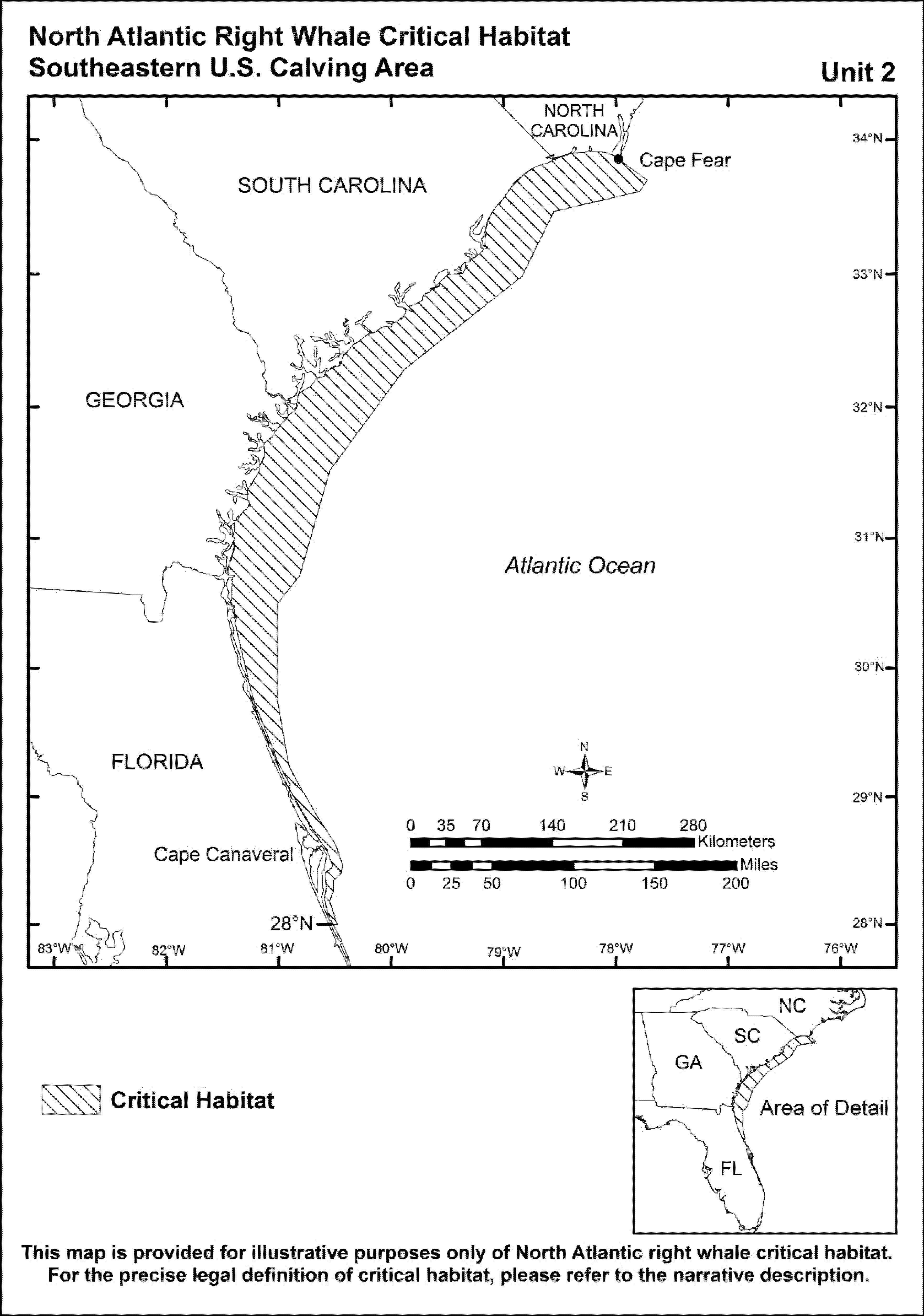 . Unit 2 now includes nearshore and offshore waters of the southeastern U.S., extending from Cape Fear, North Carolina south to approximately 27 nm below Cape Canaveral, Florida.