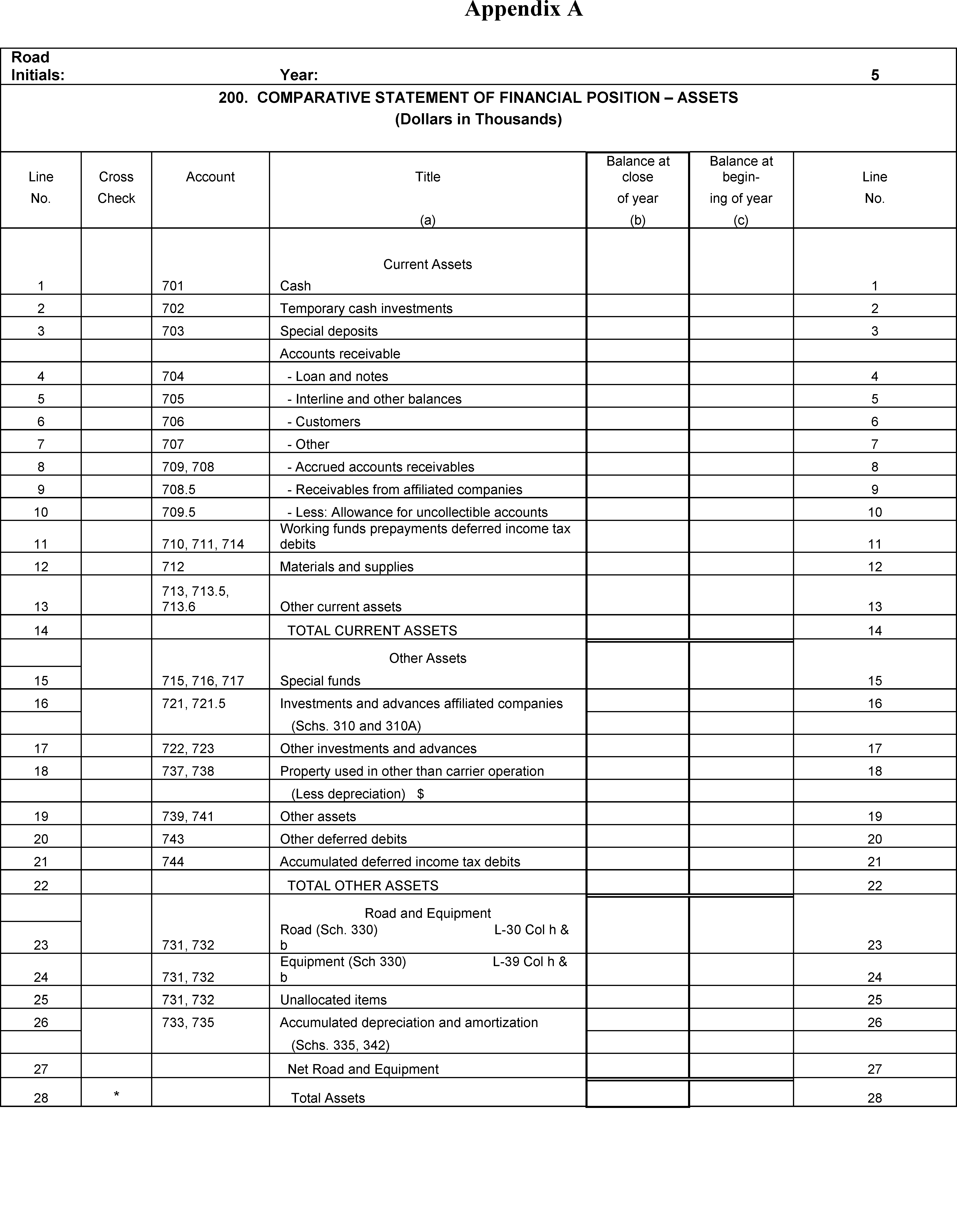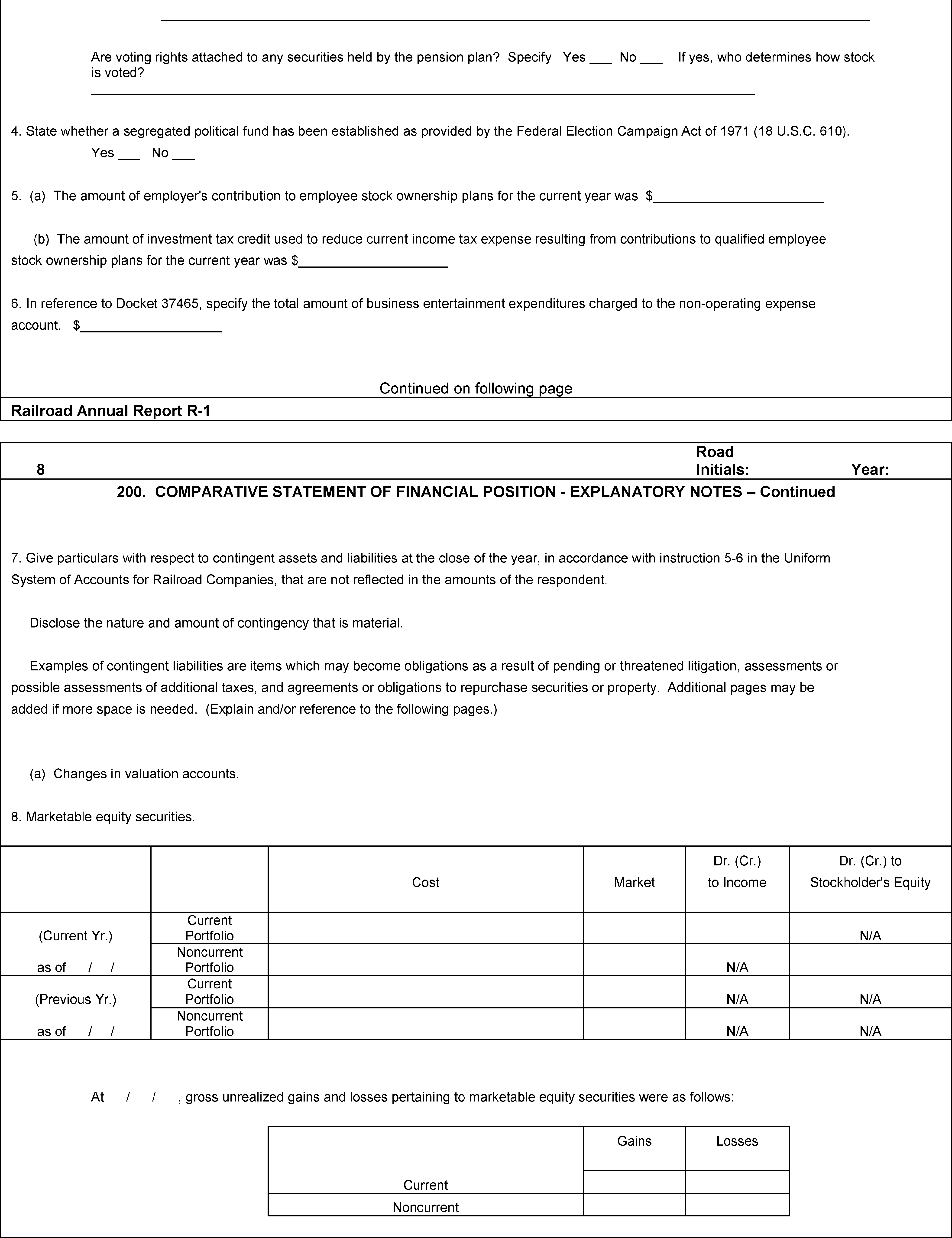 Docket No. EP 712, that the Board eliminate Schedule 220, Retained Earnings; Schedule 342, Accumulated Depreciation—Improvements to Road and Equipment Leased from Others; Schedule 501, Guarantees and Suretyships; and Schedule 502, Compensating Balances and Short-Term Borrowing Arrangements. AAR further requests that the Board eliminate Schedule 310, Investments and Advances Affiliated Companies and Schedule 310A, Investments in Common Stocks of Affiliated Companies. According to AAR, these schedules are unnecessary because they capture data that is neither used nor usable to support the Board's regulatory objectives.