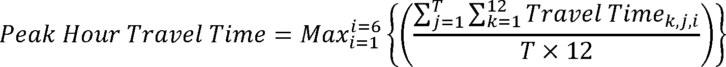 Peak hour travel time measure: Urbanized area with a population greater than 1 million;