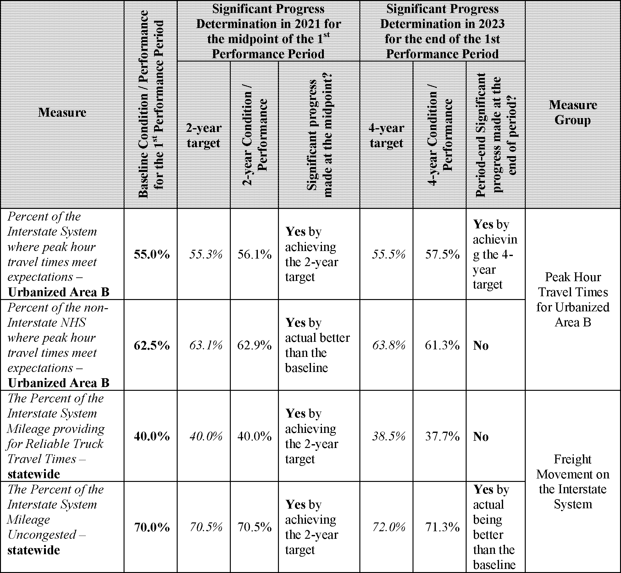 Peak hour travel time measure: Urbanized area with a population greater than 1 million; Traffic congestion measure: Urbanized area with a population greater than 1 million and also any part of the urbanized area is designated as nonattainment or maintenance for any of the criteria pollutants applicable under the CMAQ Program.