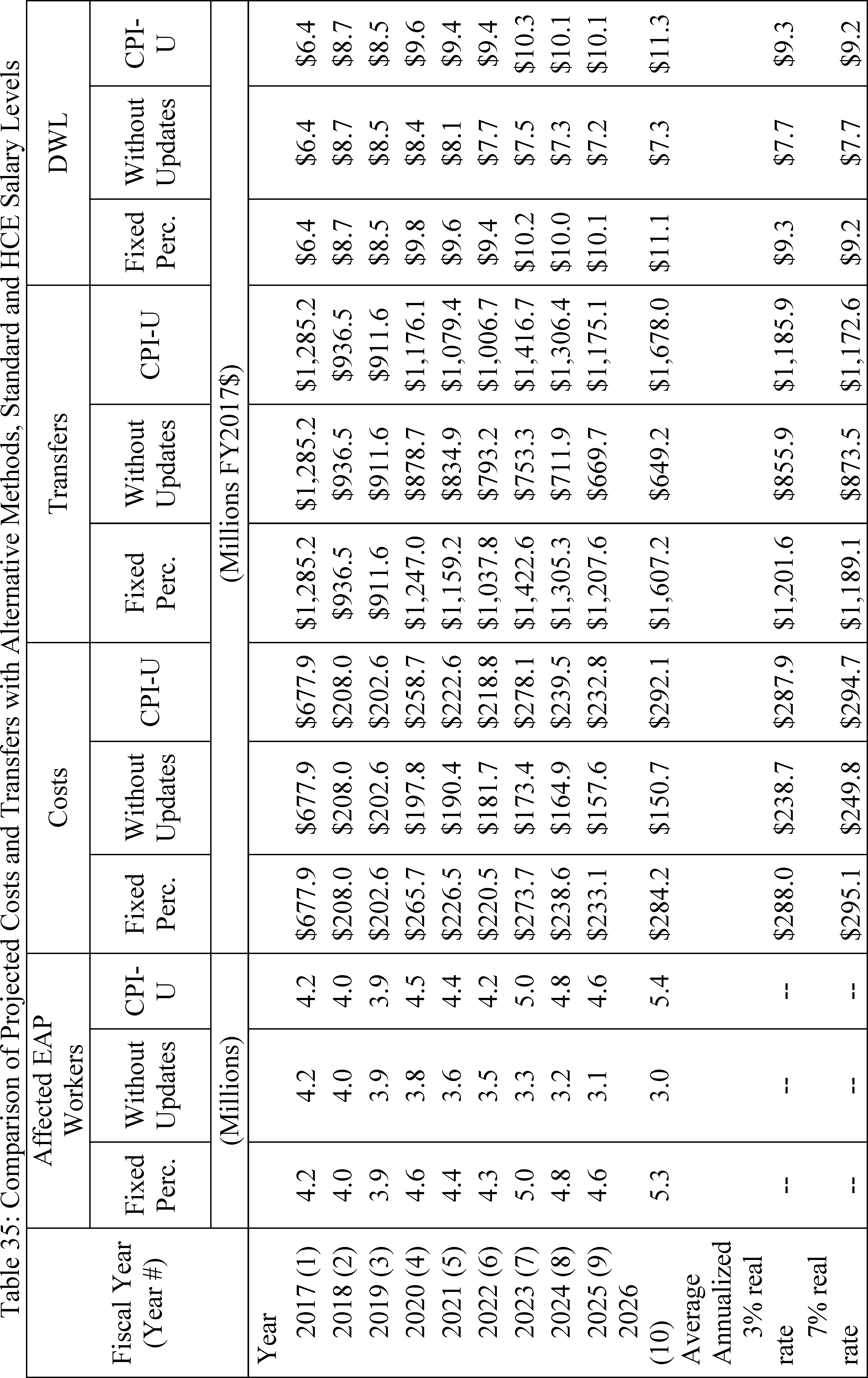 The Department quantified three direct costs to employers in this Final Rule: (1) Regulatory familiarization costs; (2) adjustment costs; and (3) managerial costs. Assuming a 7 percent discount rate, the Department estimates that average annualized direct employer costs will total $295.1 million per year (Table ES1). In addition to the direct costs, this Final Rule will also transfer income from employers to employees in the form of higher earnings. We estimate average annualized transfers to be $1,189.1 million. The Department also projects average annualized deadweight loss of $9.2 million, and notes that the projected deadweight loss is small in comparison to the amount of estimated costs.