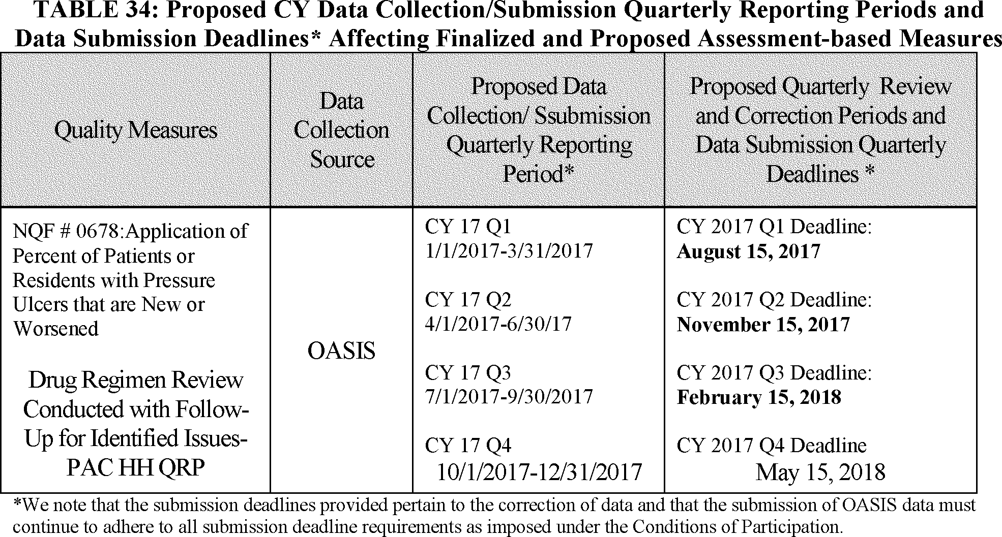 4. Proposed Timeline and Data Submission Mechanisms for Measures Proposed for the CY 2018 Payment Determination and Subsequent Years