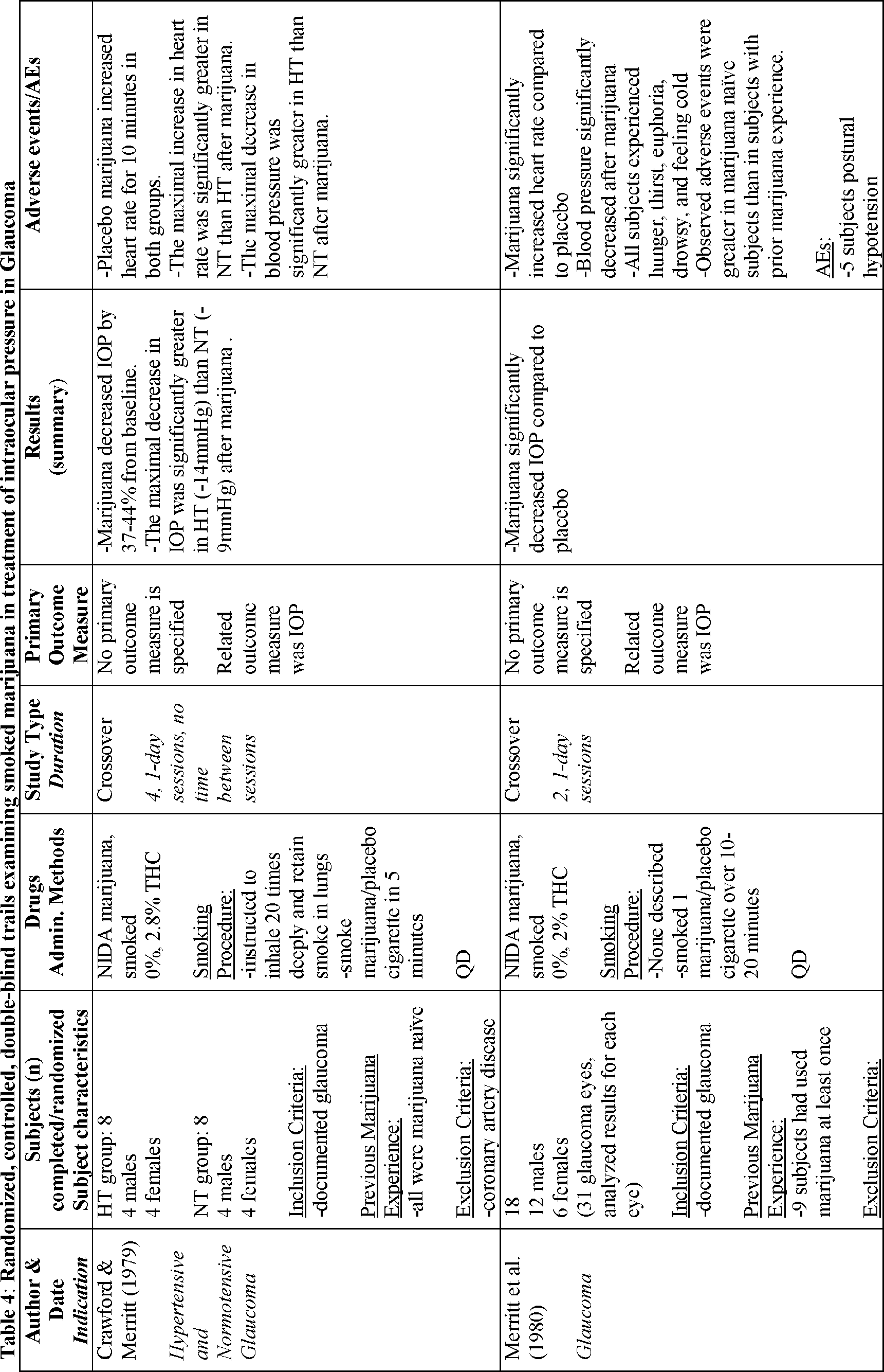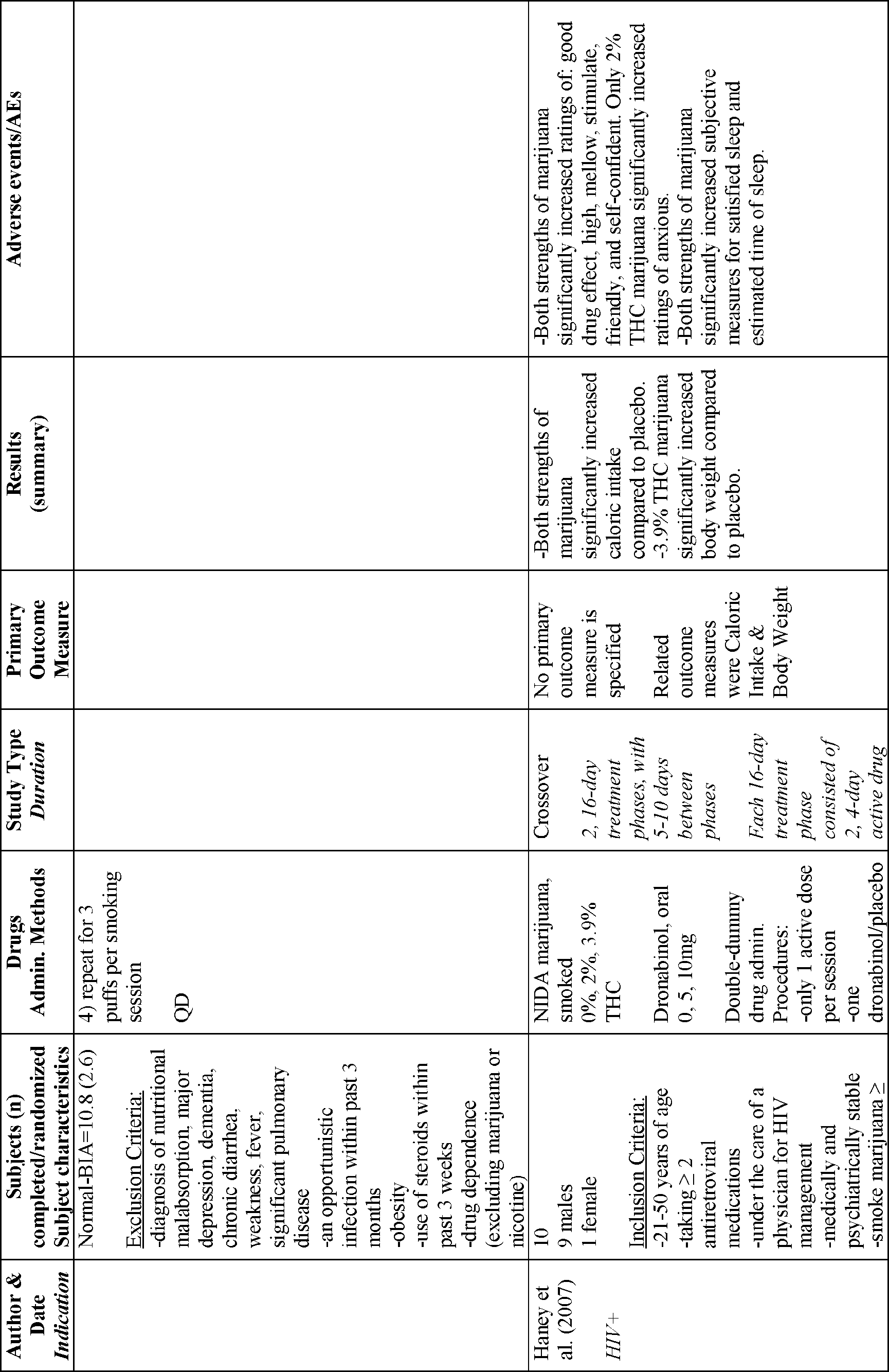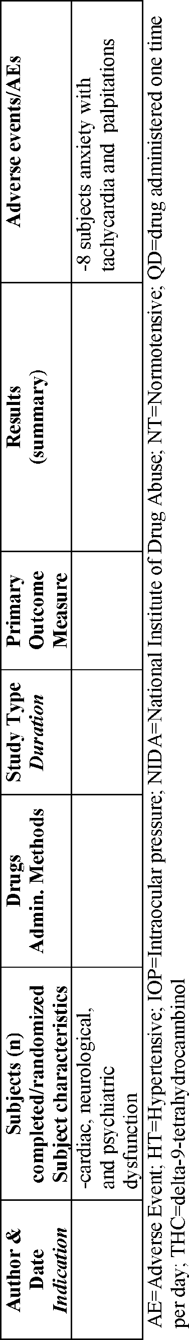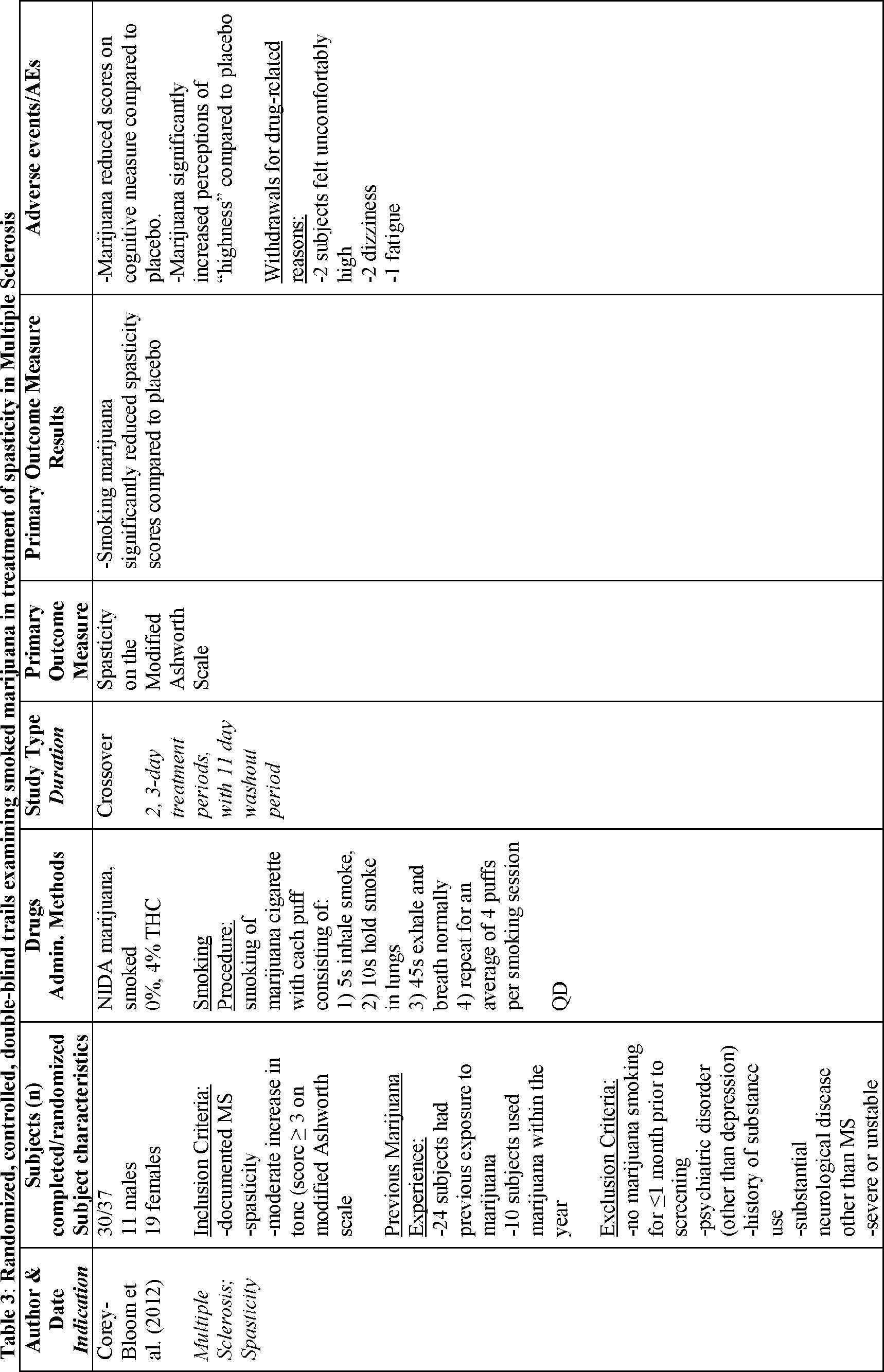 While not a systematic review, we have followed the recent published literature on marijuana use for possible therapeutic purposes and, as of January 2015, we found only one new study that would meet our criteria (Naftali et al., 2013). This study examined the effects of smoked marijuana on Crohn's disease.