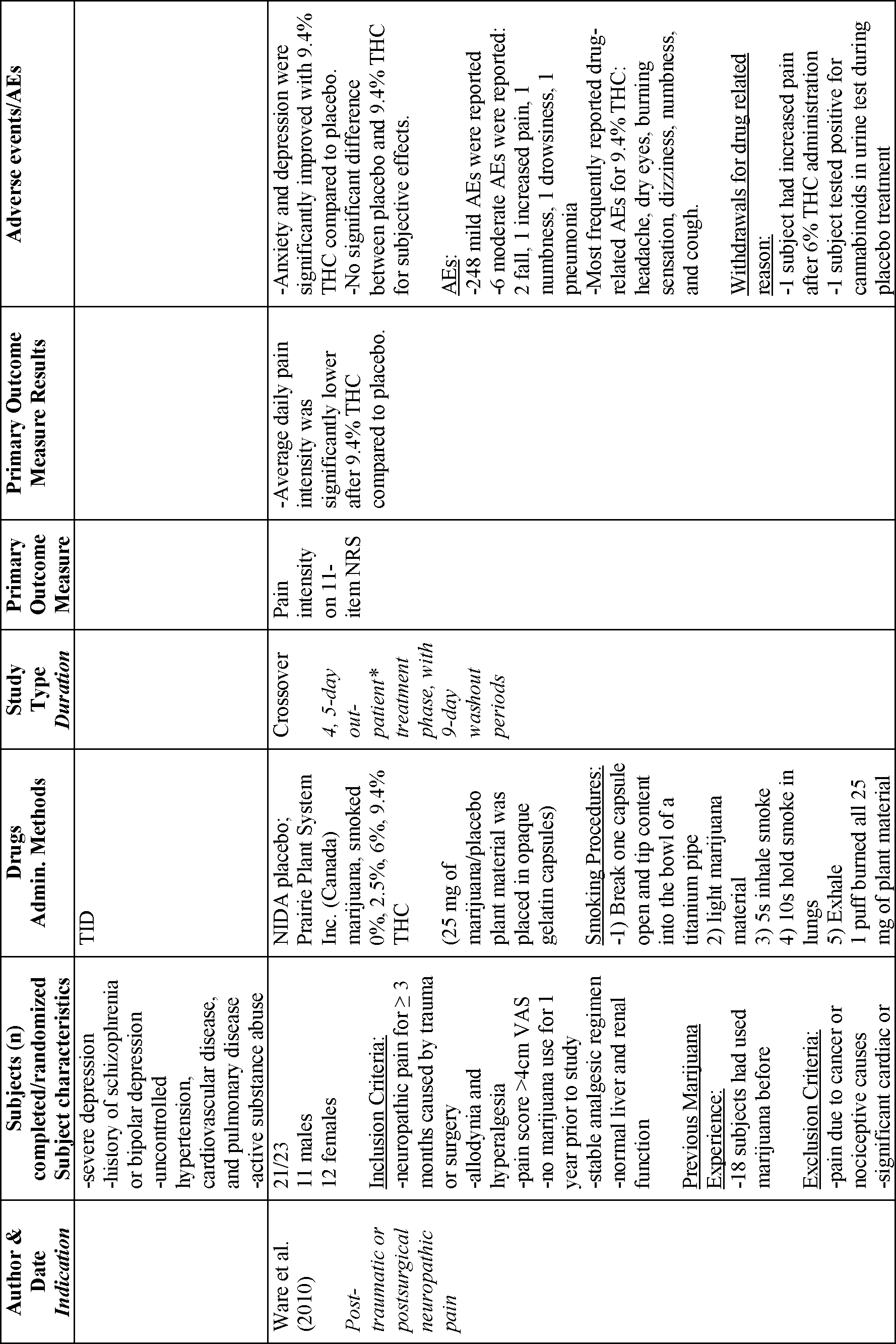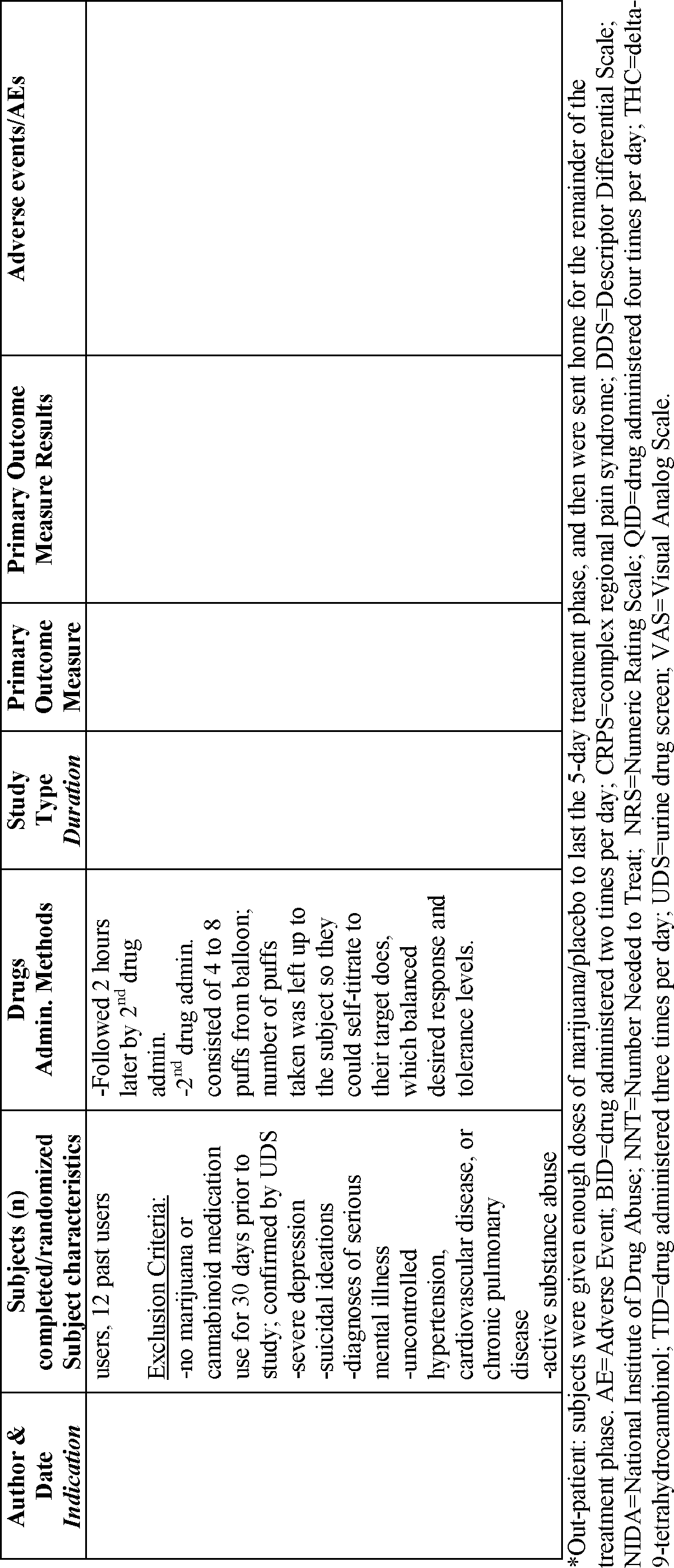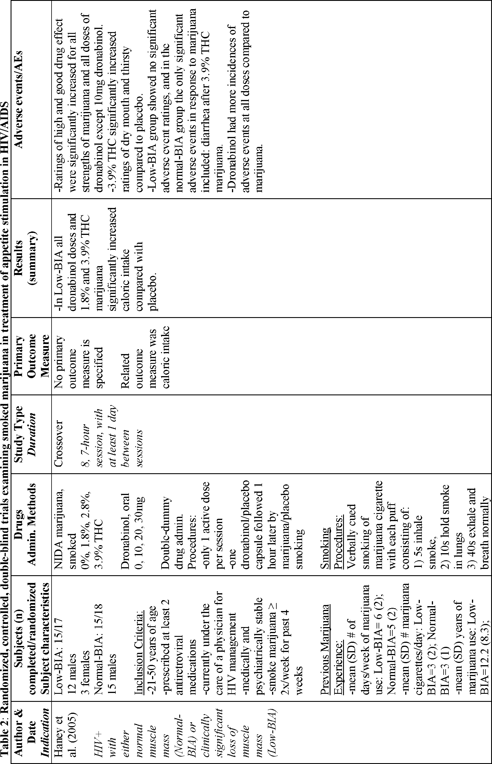 While not a systematic review, we have followed the recent published literature on marijuana use for possible therapeutic purposes and, as of January 2015, we found only one new study that would meet our criteria (Naftali et al., 2013). This study examined the effects of smoked marijuana on Crohn's disease.