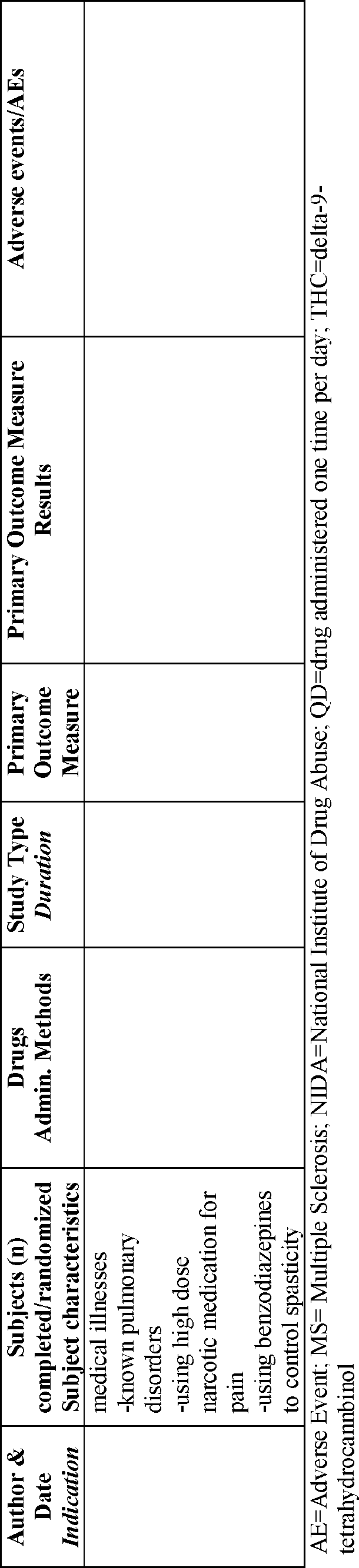 The following search strategy was used, “(cannabis OR marijuana) AND (therapeutic use OR therapy) AND (RCT OR randomized controlled trial OR “systematic review” OR clinical trial OR clinical trials) NOT (“marijuana abuse”[Mesh] OR addictive behavior OR substance related disorders).”