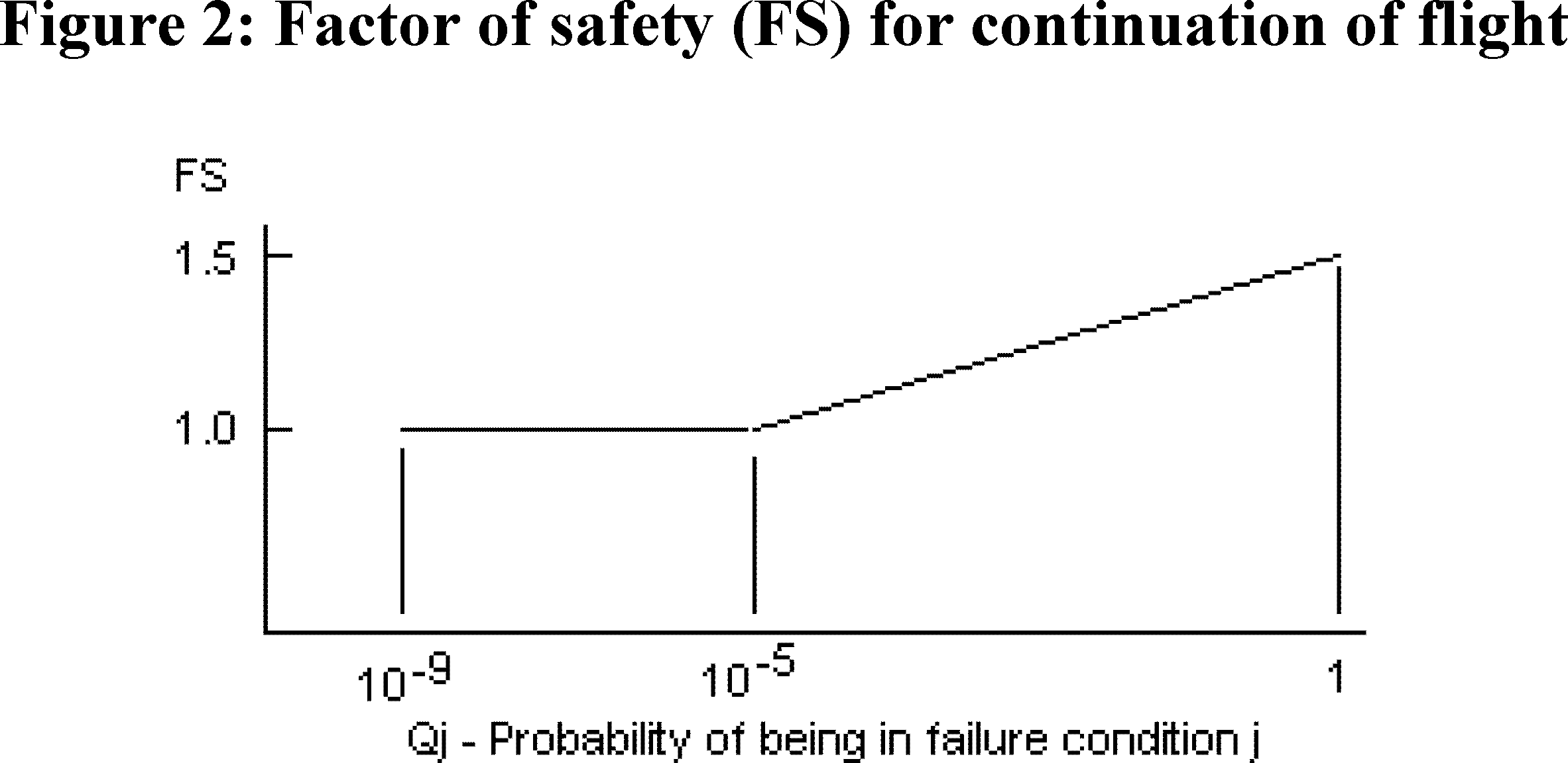 as the probability of failure occurrence for determining the safety margin in Figure 1. Flight limitations and expected operational limitations may be taken into account in establishing Qj