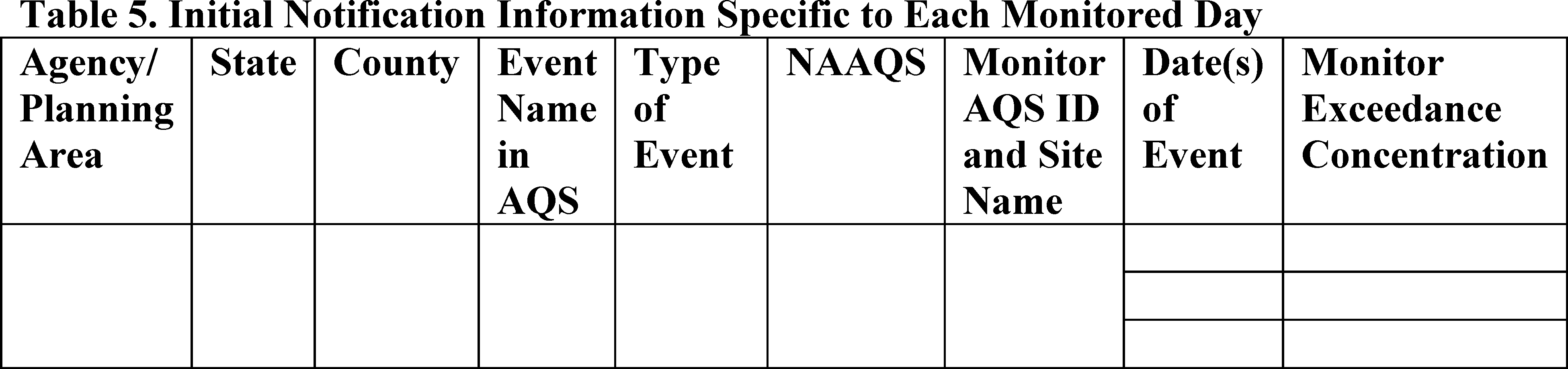 1-hour, 8-hour or 24-hour standards) but may need additional time for an annual average standard. An air agency could also submit an annual Initial Notification if annual submittal makes sense for resource planning or for recurring seasonal events.