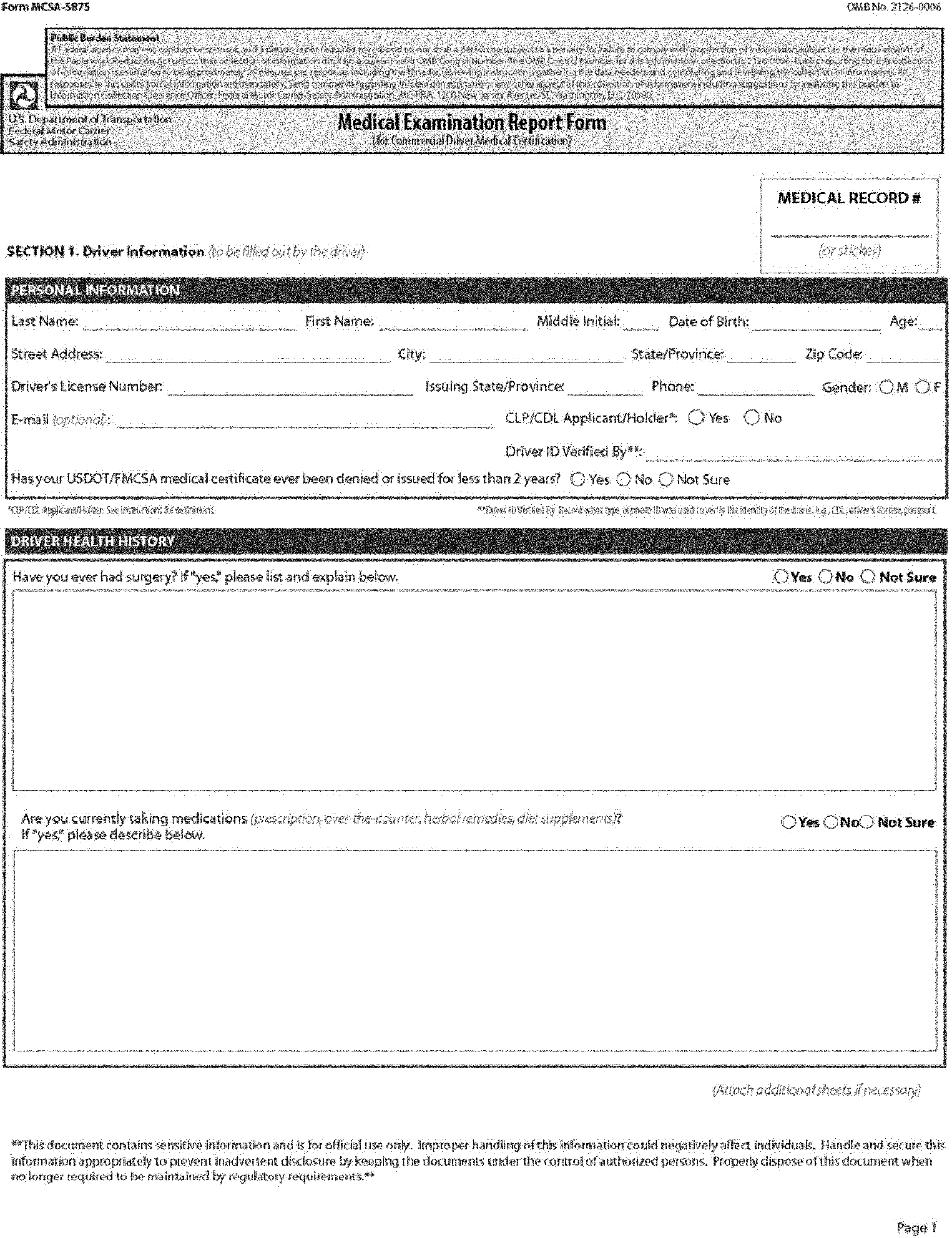 (f) The medical examination shall be performed, and its results shall be recorded on the Medical Examination Report Form, MCSA-5875, set out below: