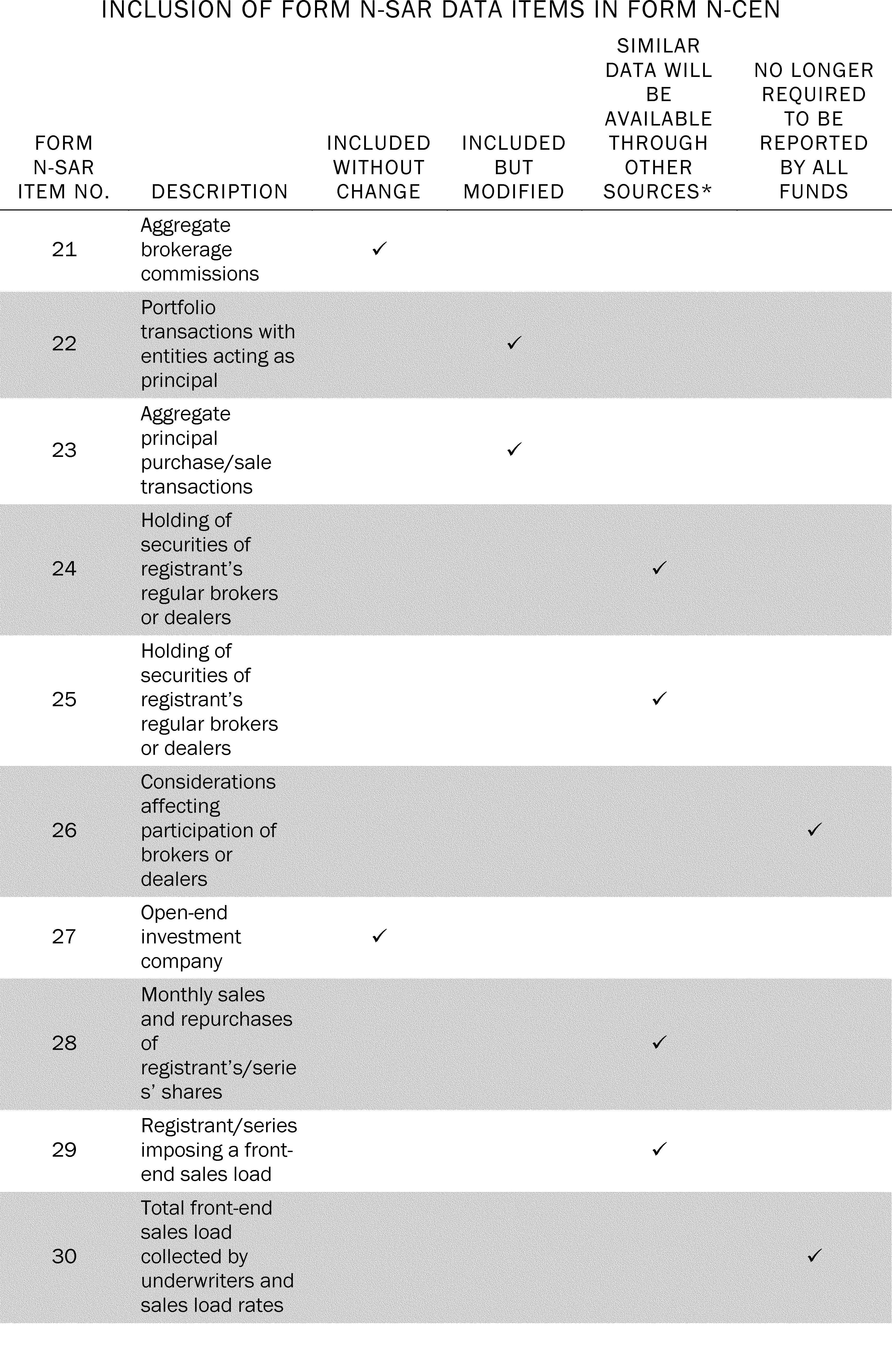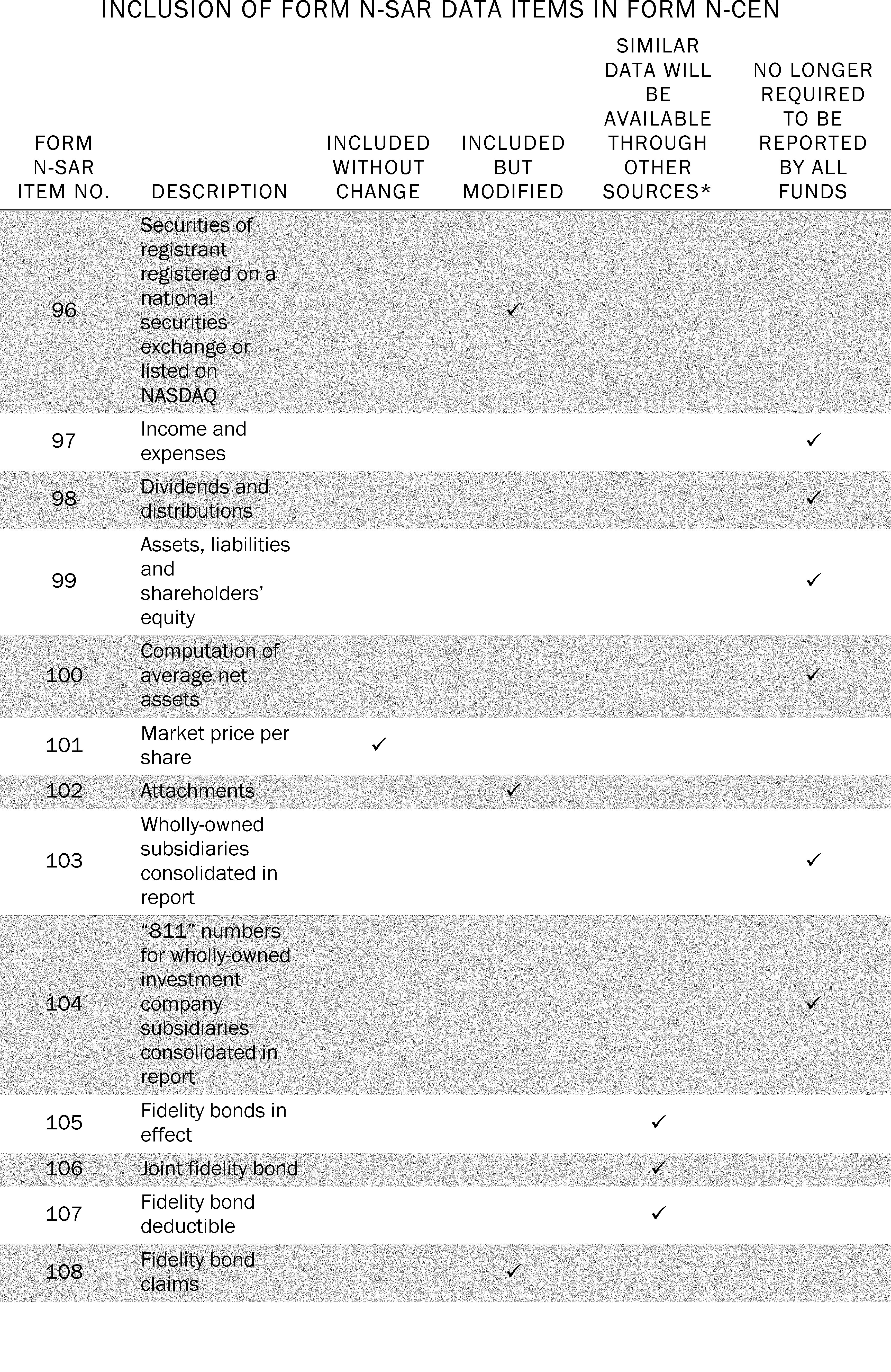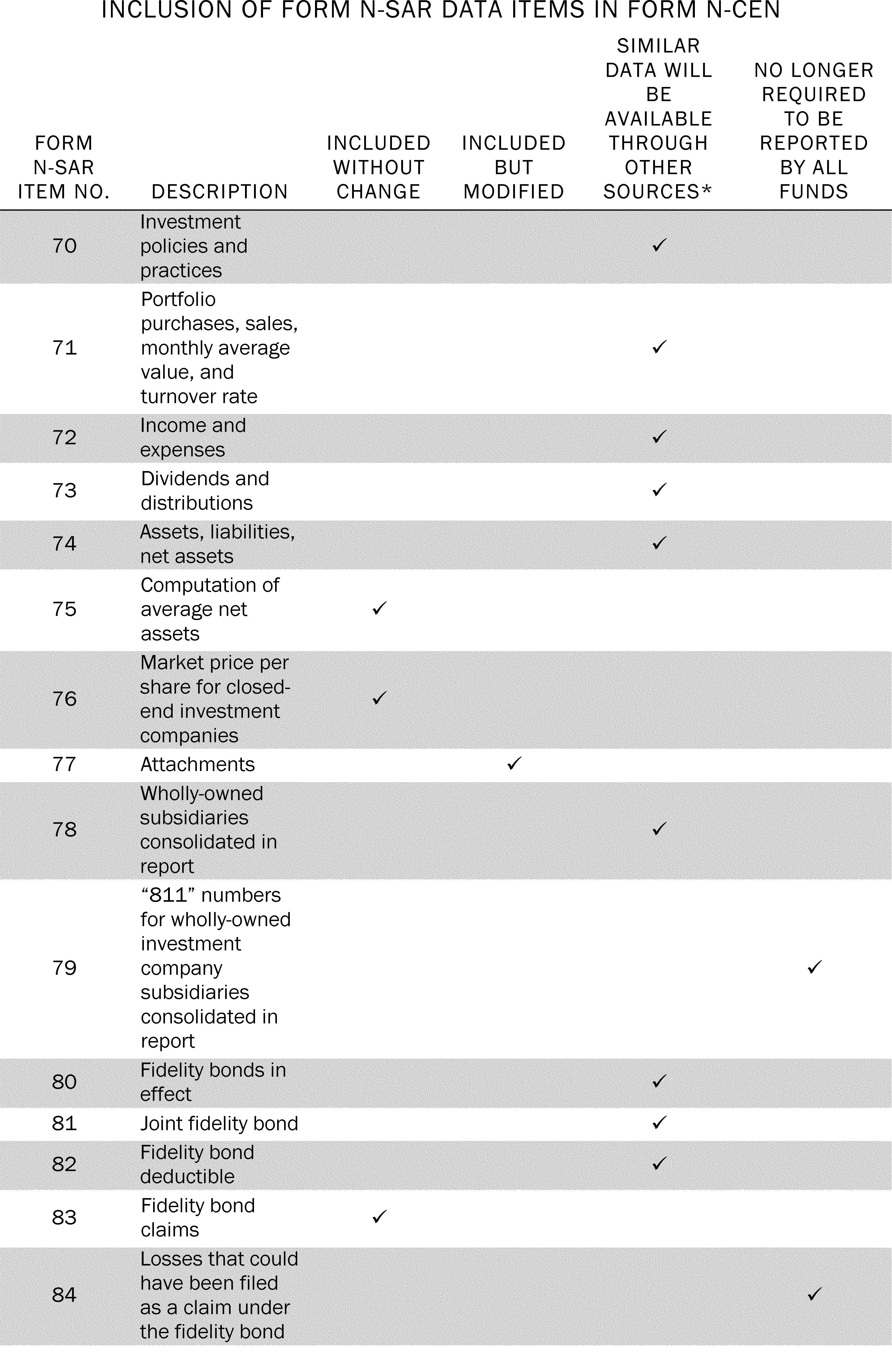 5. Items Required by Form N-SAR That Will be Eliminated by Form N-CEN