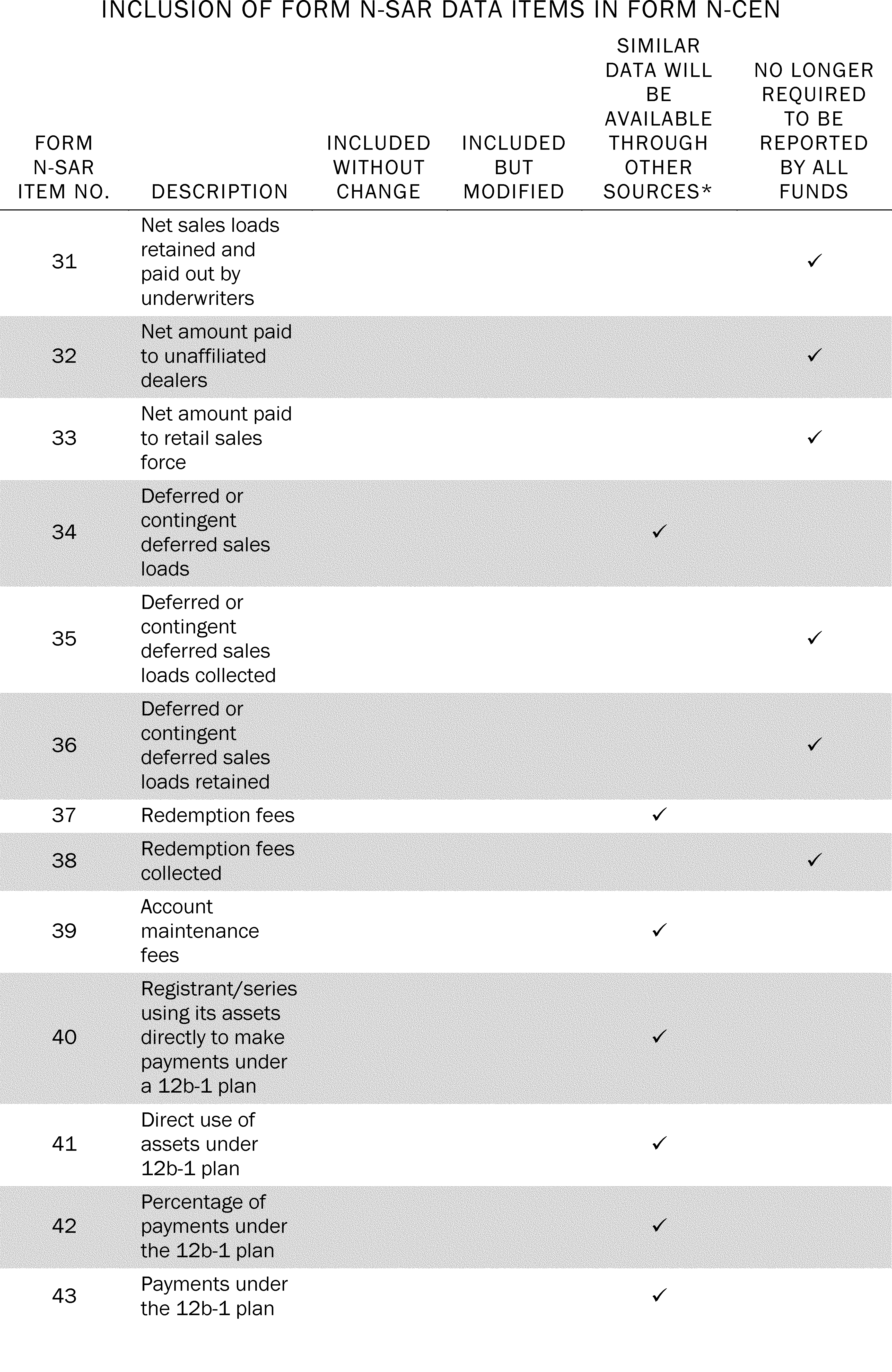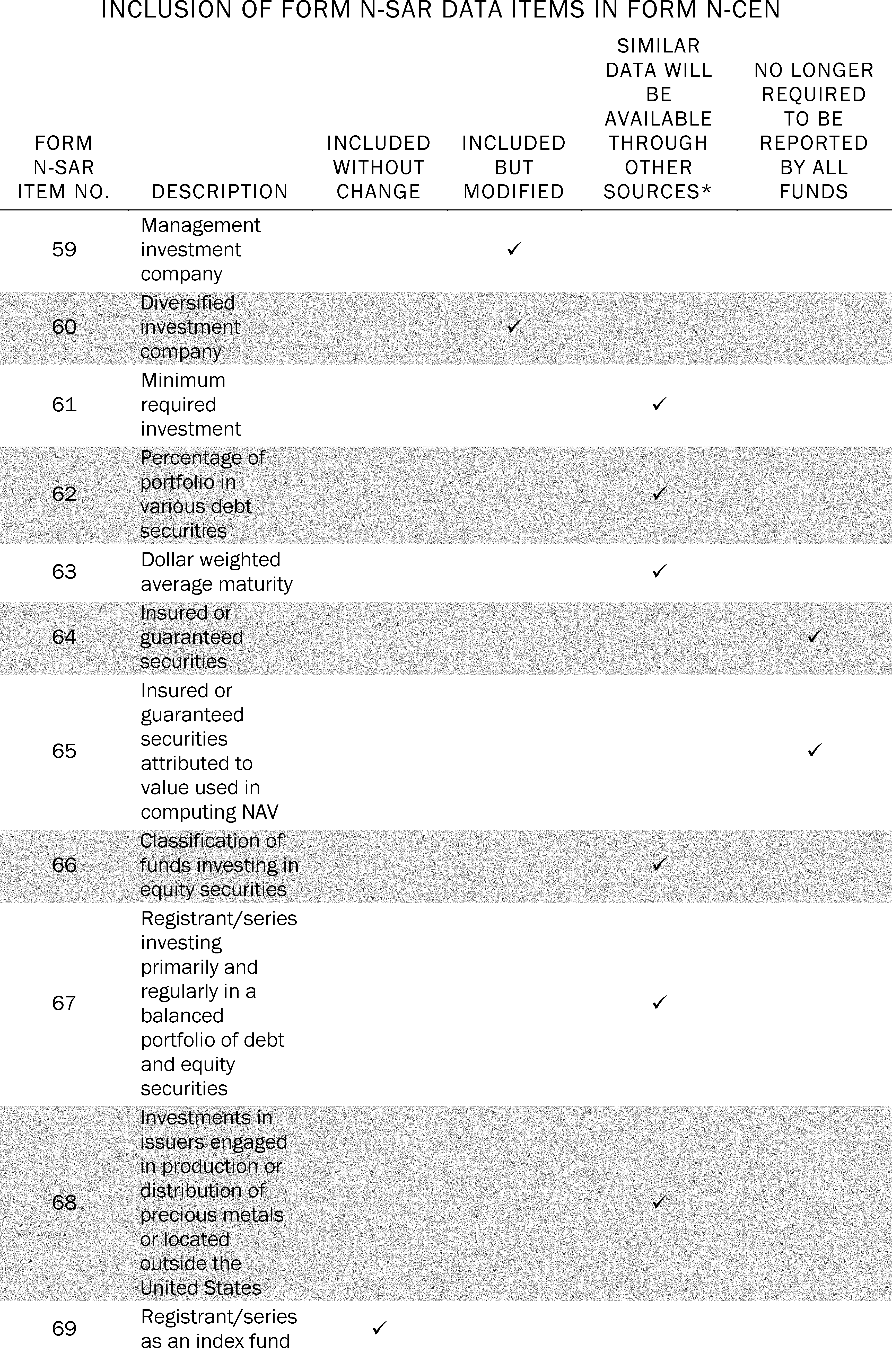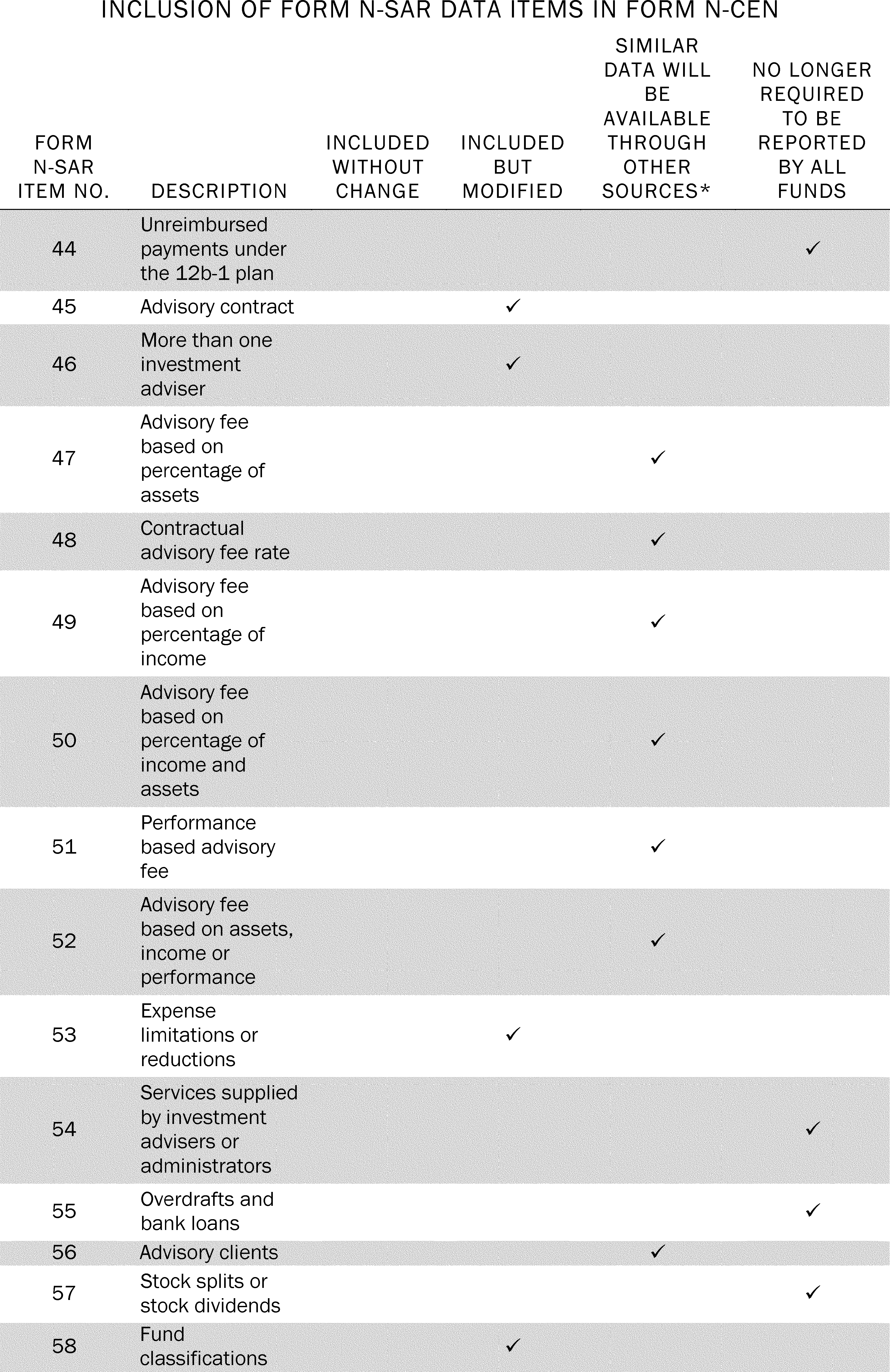 5. Items Required by Form N-SAR That Will be Eliminated by Form N-CEN