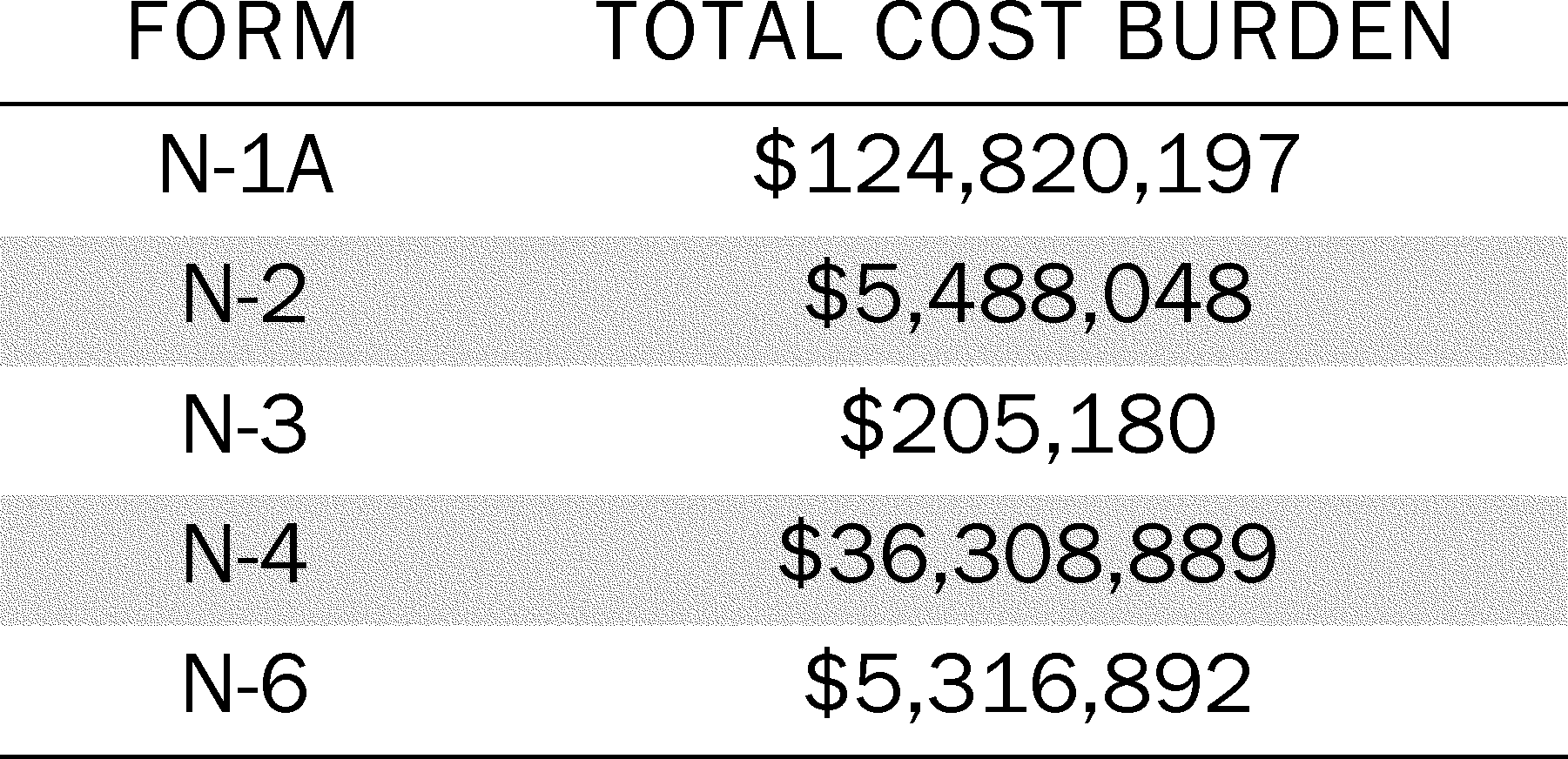 We estimate that the external costs associated with Form N-CSR will not include the external costs associated with the shareholder report. The external costs associated with the shareholder report are accounted for under the collections of information related to rules 30e-1 and 30e-2 under the Investment Company Act.