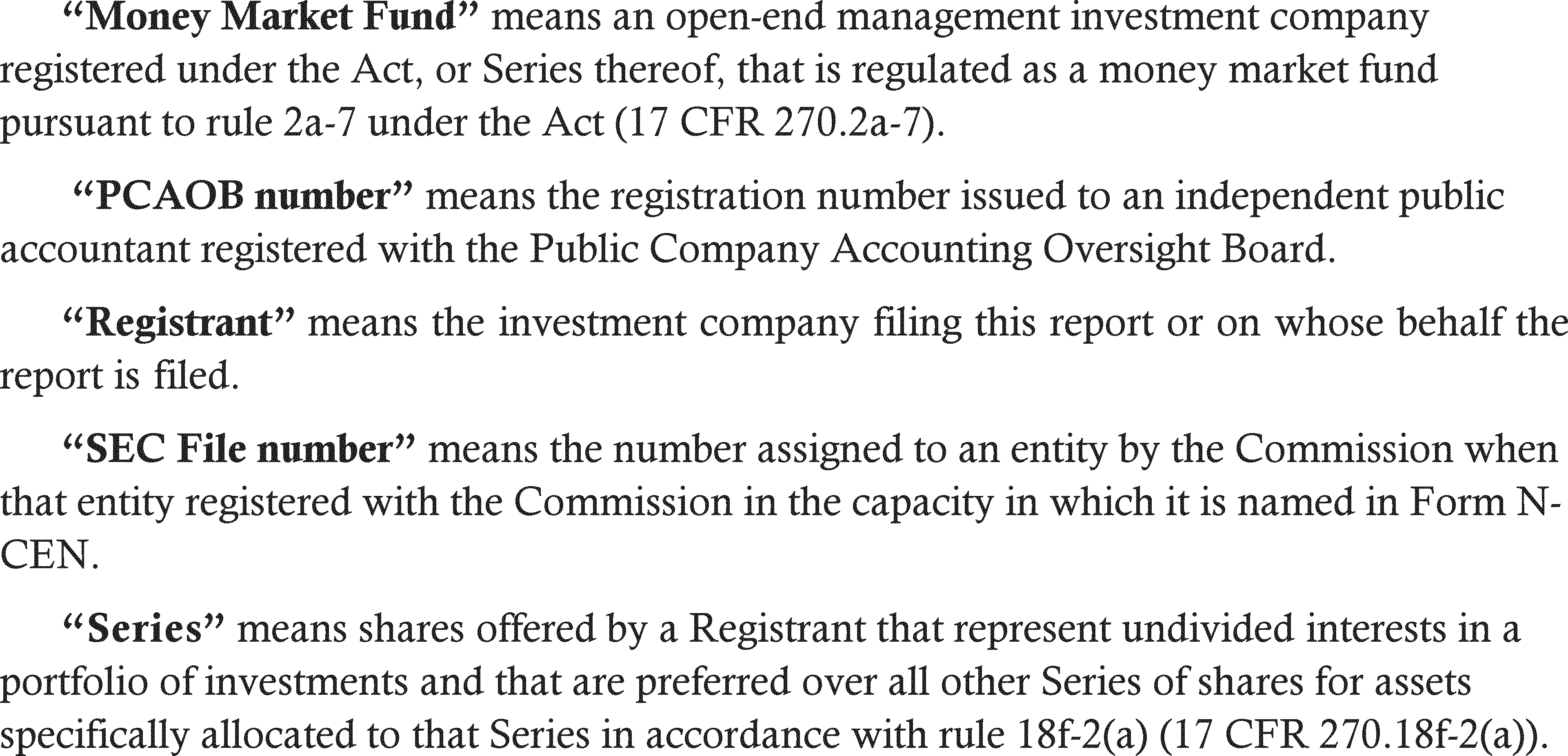 The Securities and Exchange Commission is adopting new rules and forms as well as amendments to its rules and forms to modernize the reporting and disclosure of information by registered investment companies. The Commission is adopting new Form N-PORT, which will require certain registered investment companies to report information about their monthly portfolio holdings to the Commission in a structured data format. In addition, the Commission is adopting amendments to Regulation S-X, which will require standardized, enhanced disclosure about derivatives in investment company financial statements, as well as other amendments. The Commission is adopting new Form N-CEN, which will require registered investment companies, other than face-amount certificate companies, to annually report certain census-type information to the Commission in a structured data format. The Commission is adopting amendments to Forms N-1A, N-3, and N-CSR to require certain disclosures regarding securities lending activities. Finally, the Commission is rescinding current Forms N-Q and N-SAR and amending certain other rules and forms. Collectively, these amendments will, among other things, improve the information that the Commission receives from investment companies and assist the Commission, in its role as primary regulator of investment companies, to better fulfill its mission of protecting investors, maintaining fair, orderly and efficient markets, and facilitating capital formation. Investors and other potential users can also utilize this information to help investors make more informed investment decisions.