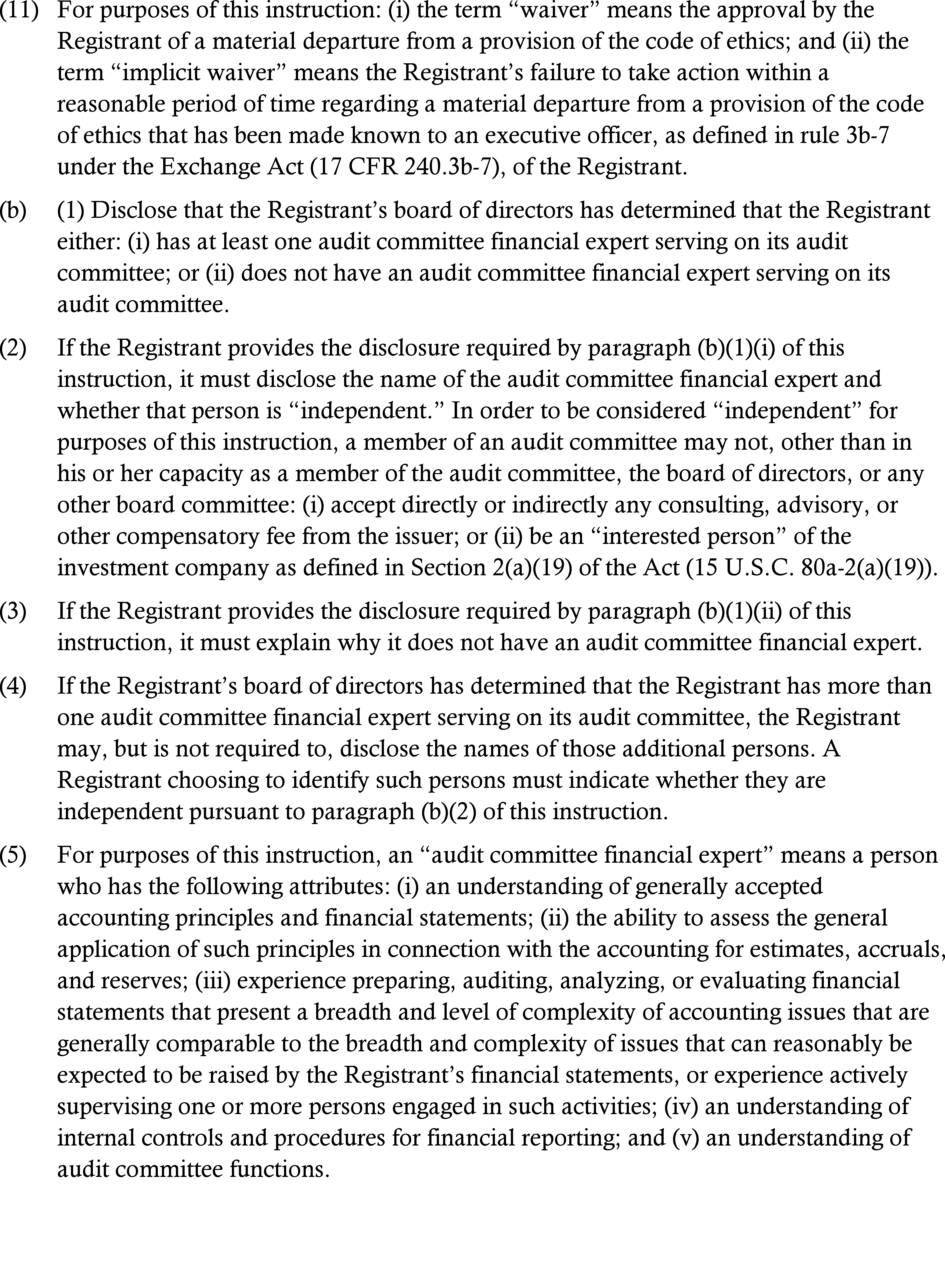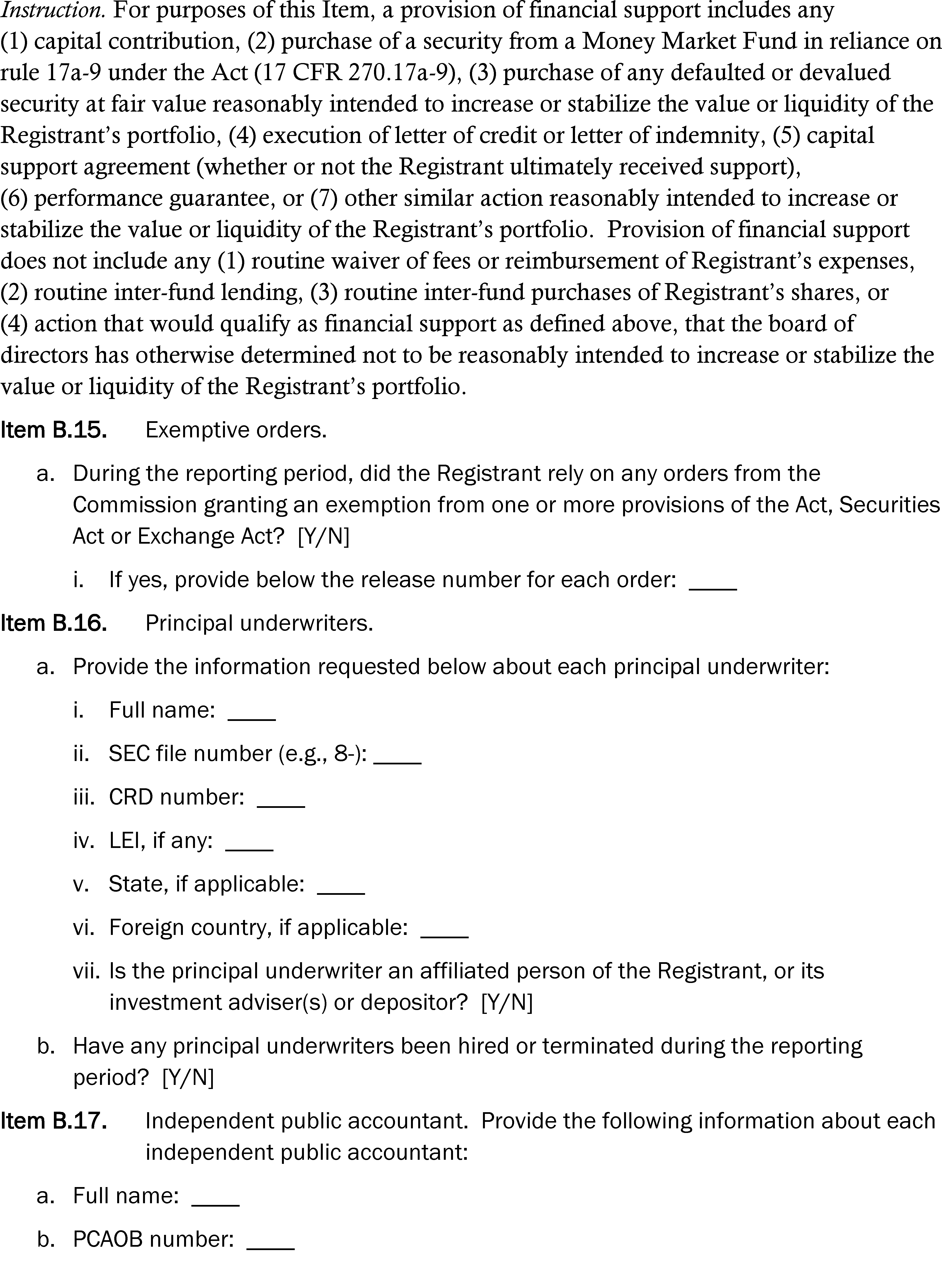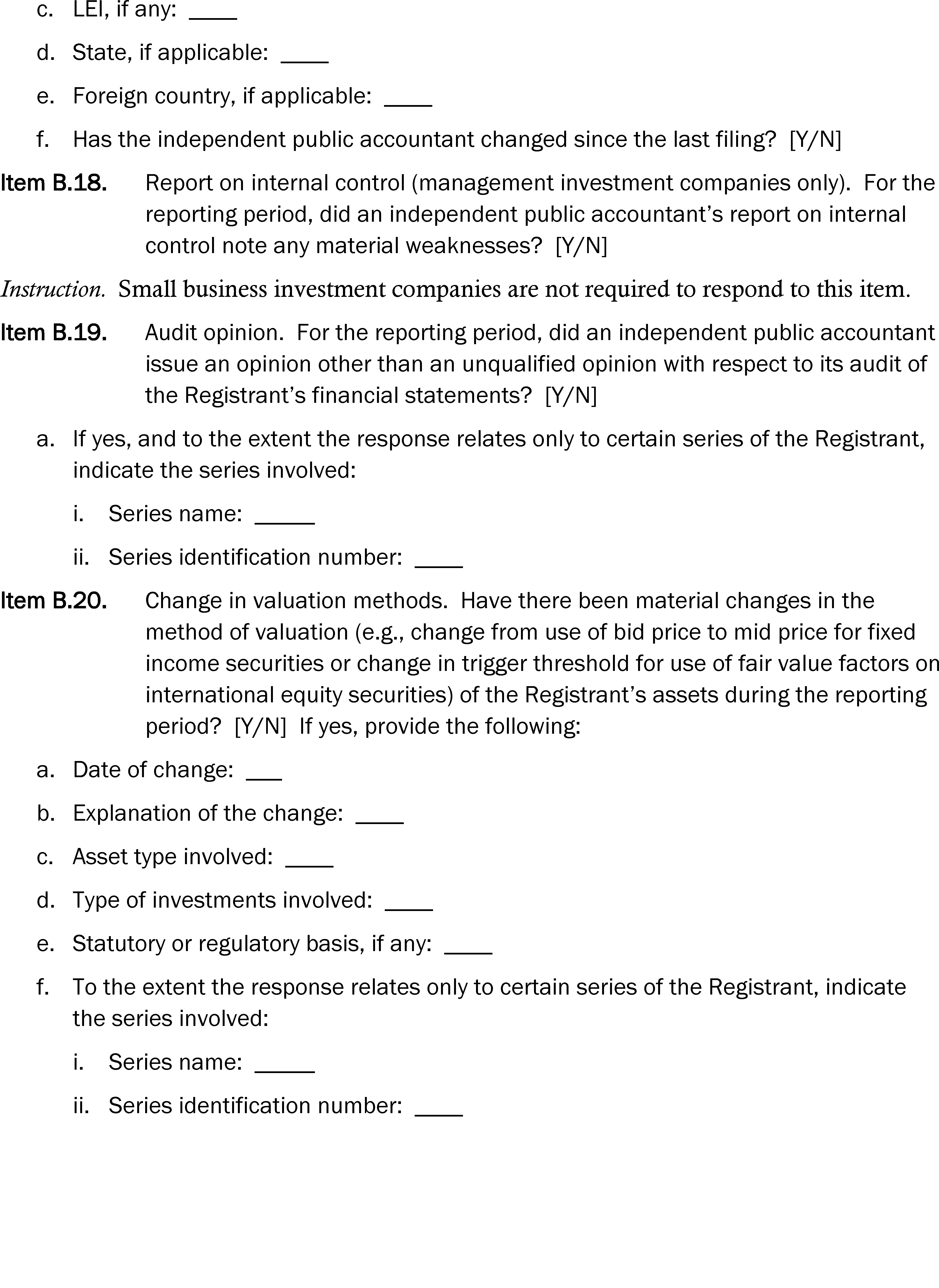 Item 19(i) of Form N-1A; Item 21(j) of Form N-3;