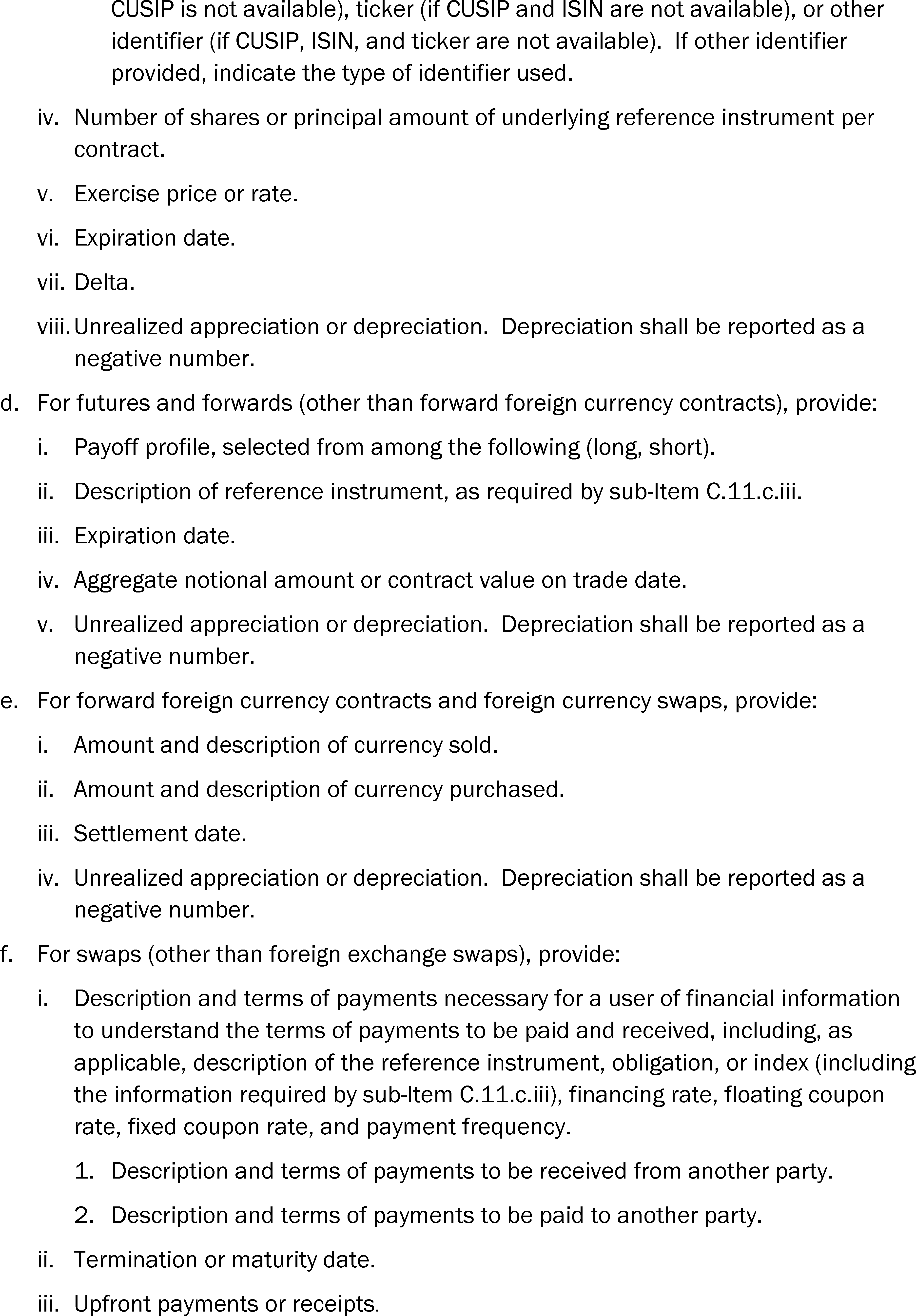 As discussed above, the amendments will: (1) Require new, standardized disclosures regarding fund holdings in open futures contracts, open forward foreign currency contracts, and open swap contracts, and additional disclosures regarding fund holdings of written and purchased options contracts; (2) update the disclosures for other investments and investments in and advances to affiliates, as well as reorganize the order in which some investments are presented; and (3) amend the rules regarding the general form and content of fund financial statements. In addition, our amendments will also require prominent placement of disclosures regarding investments in derivatives in a fund's financial statements, rather than allowing such schedules to be placed in the notes to the financial statements.