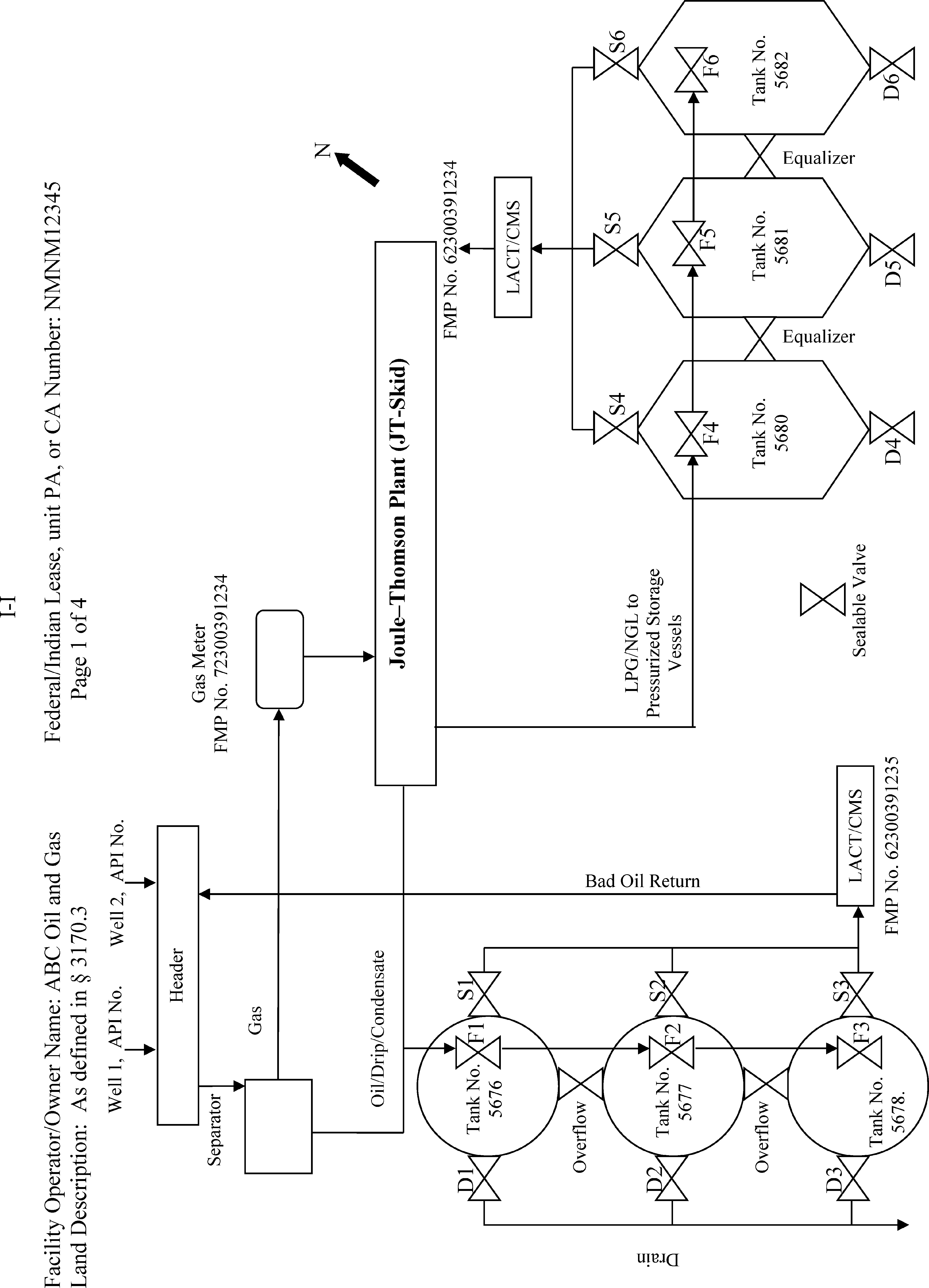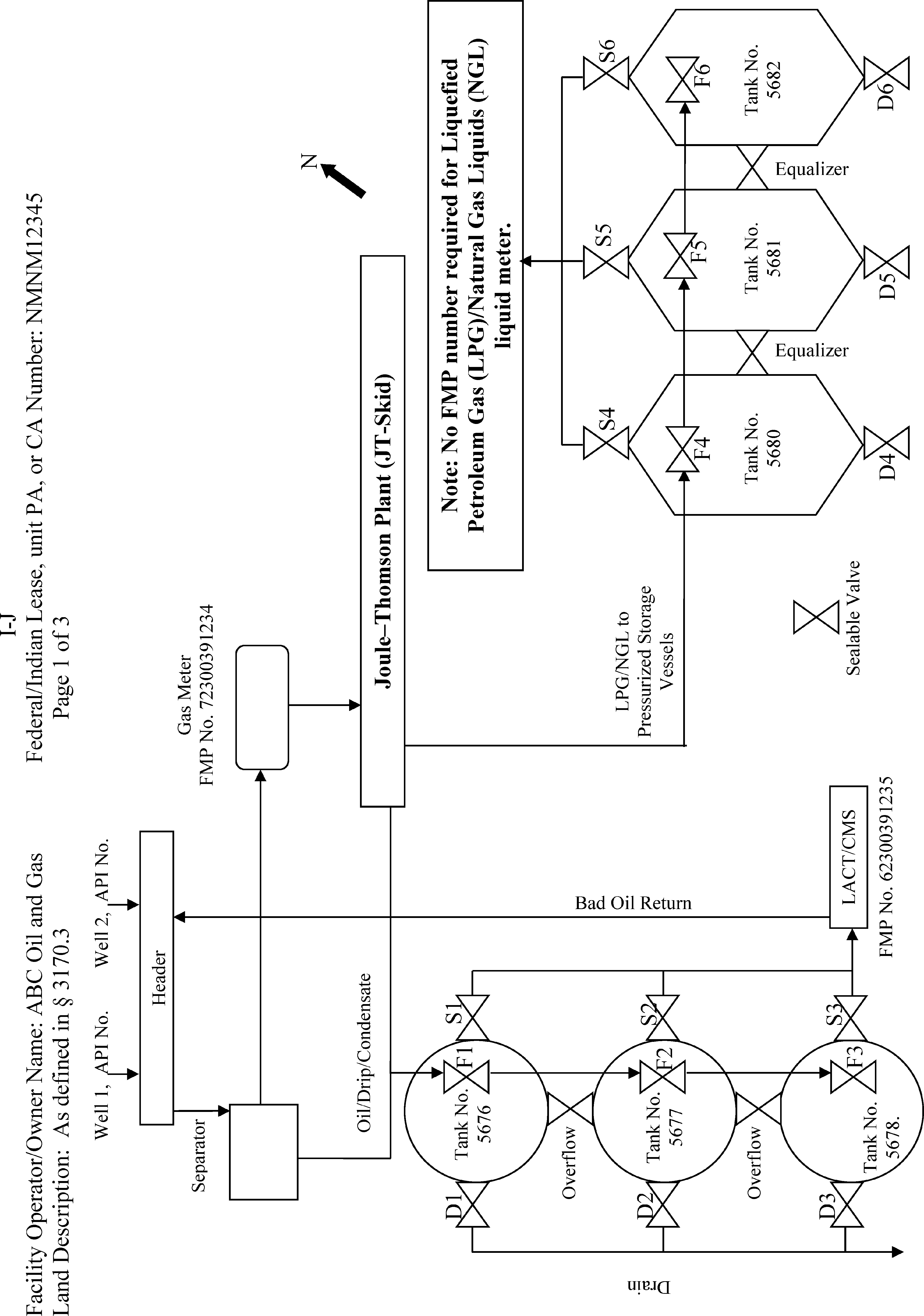 On-lease with gas measurement after the Joule-Thomson Plant (JT-Skid), oil sales by liquid meter, Liquefied Petroleum Gas (LPG)/Natural Gas Liquids (NGL) sales by liquid meter.