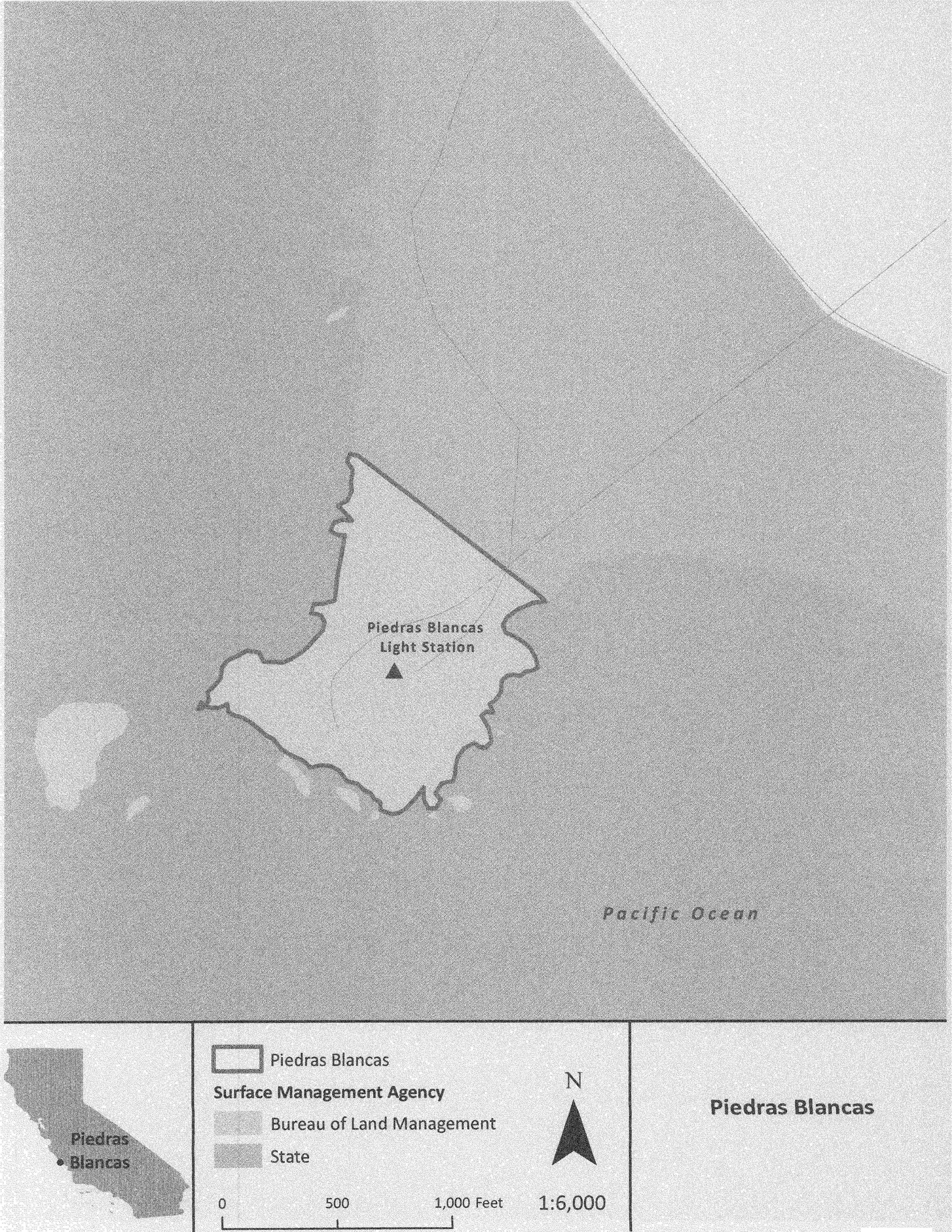 ( printed page 6134)Only 40 miles north of San Luis Obispo, the large white coastal rocks for which Piedras Blancas was named have served as a landmark for centuries to explorers and traders along the central coast of California. Sitting at a cultural interface between Northern Chumash and Playanos Salinan peoples, Piedras Blancas was and still remains important to Native Americans. The human history of the area stretches back at least 3,000 years, and archaeologists have found stone tools, debris from tool knapping, discrete quarrying locations, and shell midden deposits that help tell that history. Native peoples largely used the area as a source of raw stone and for the manufacture of stone tools.