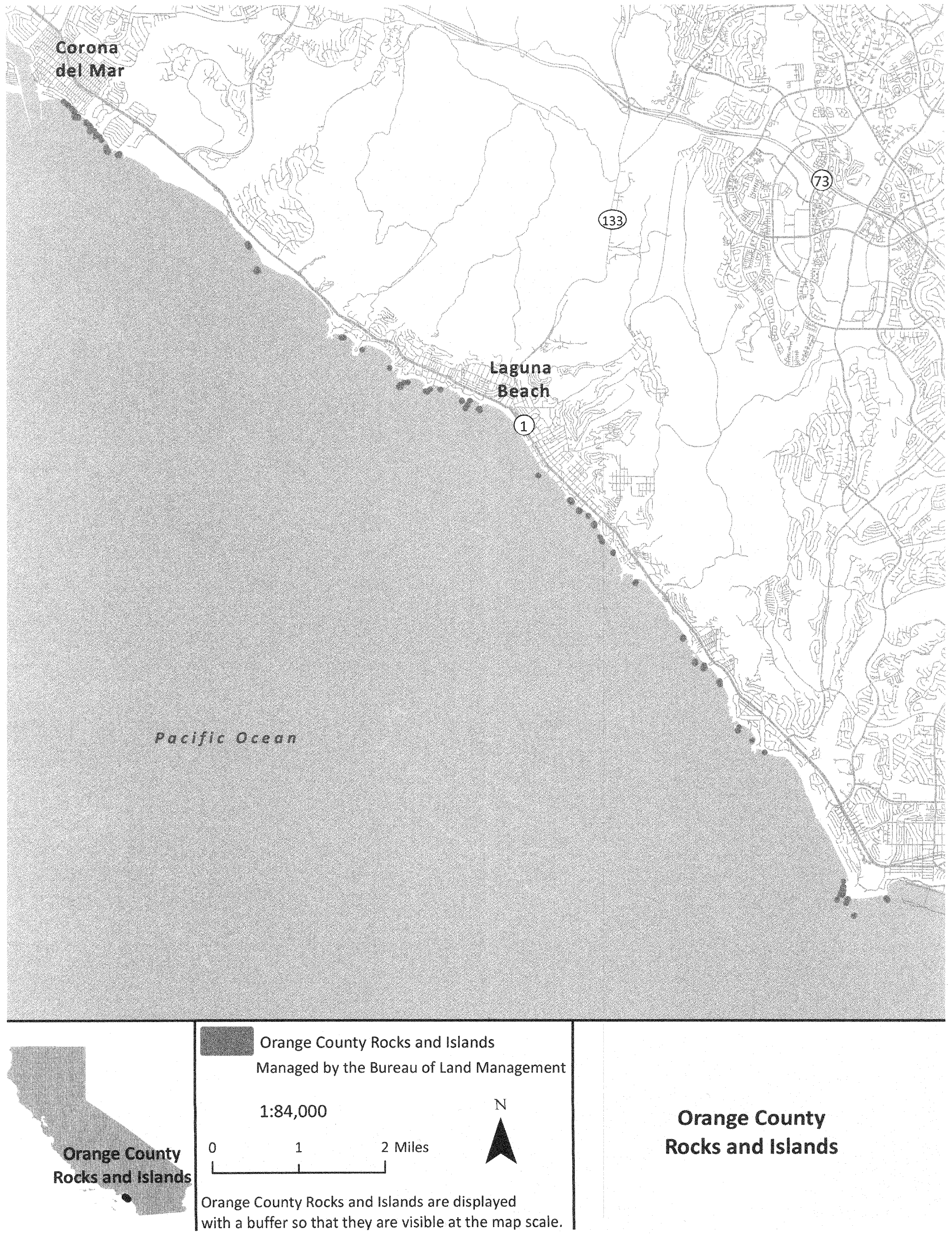 This area consists of a series of offshore rocks, pinnacles, exposed reefs, and small islands off the Orange County coastline, where visitors onshore ( printed page 6135) are treated to dramatic crashing waves, unique geology, and an abundance of marine-dependent wildlife. These rocks and islands lie within the current monument boundary but were not previously reserved as part of the monument. These offshore rocks, many in pocket coves, contribute to the rugged beauty of the Orange County coastline and themselves include objects of scientific and historic interest. The features also provide important connectivity from south to north for shore birds and sea birds, as well as for California sea lions and harbor seals.