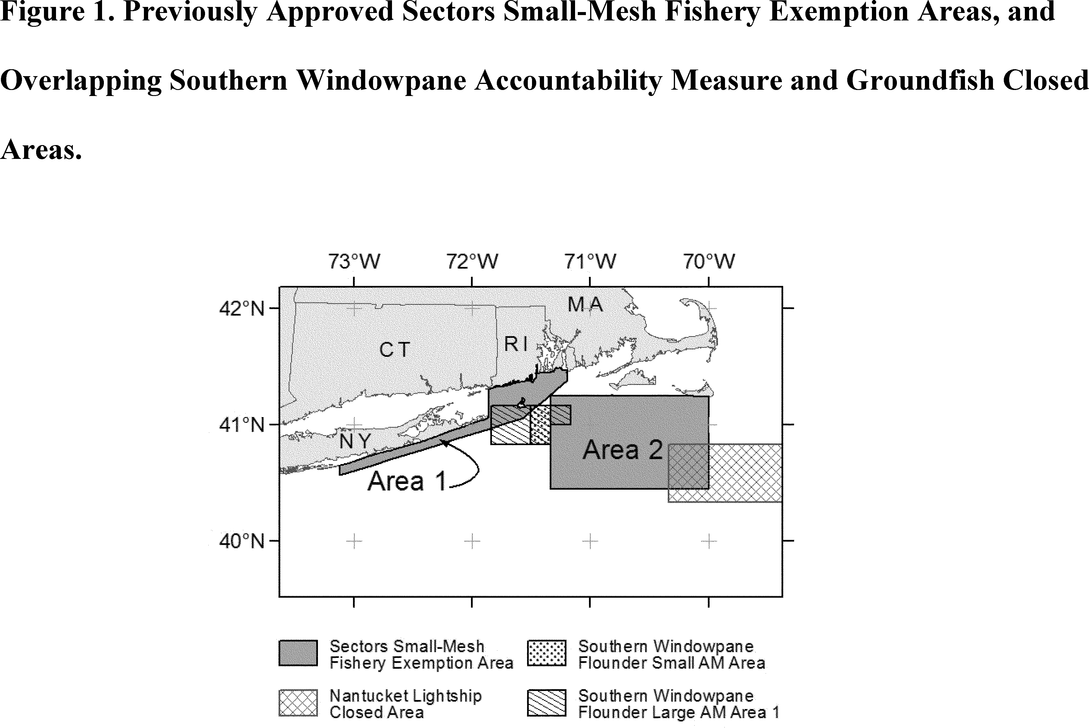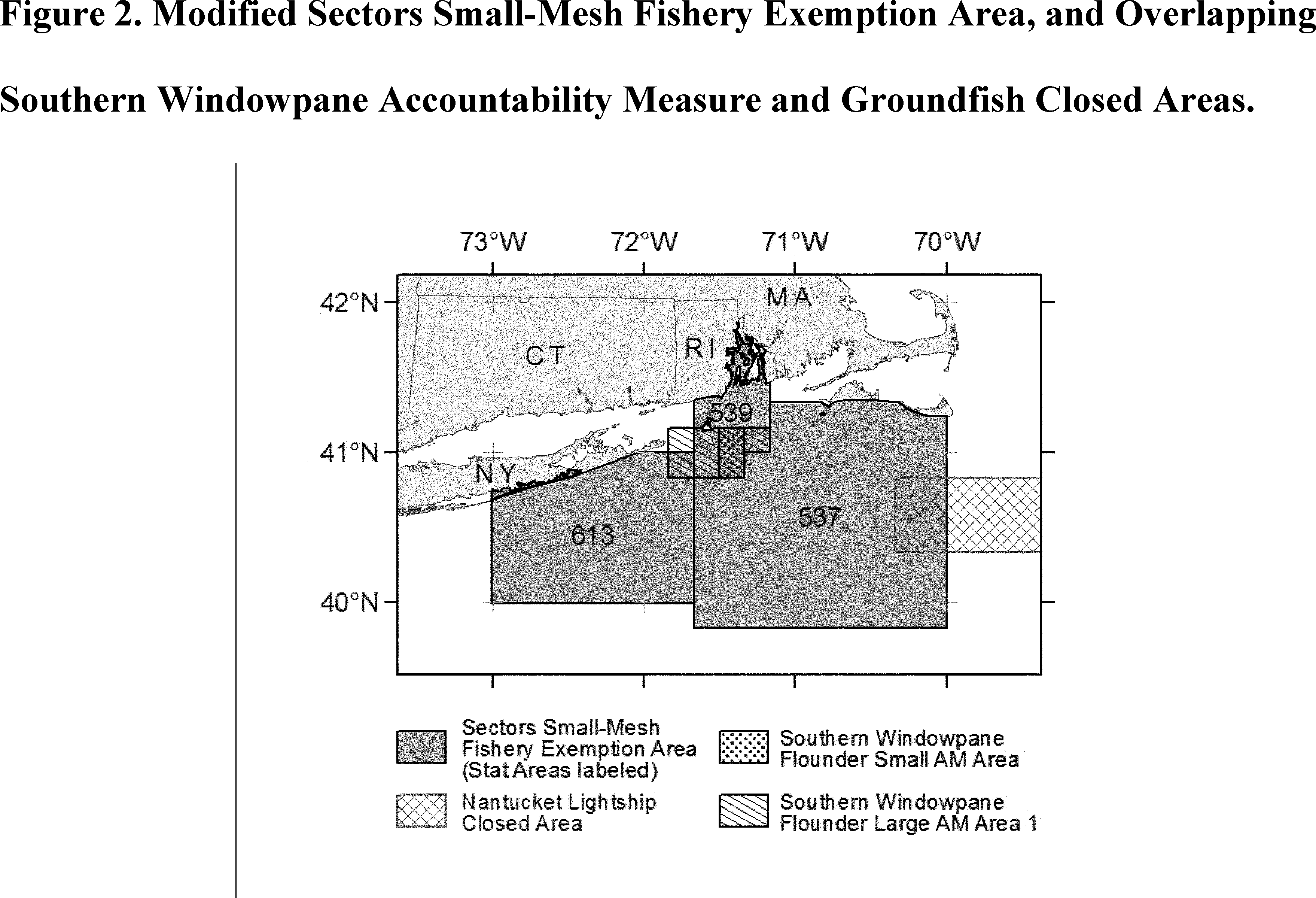 The previously approved small-mesh sector exemption area includes two discrete areas, one that parallels the southern shore of Long Island to the waters just off Narragansett Bay, and a second area south of Martha's Vineyard (Figure 1). Sectors requested to modify the area to include all of statistical areas 537, 539 and 613, which would expand the geographic footprint of the exemption area, to better reflect fishing practices in the area and increase efficiency and opportunities for sector vessels (Figure 2). We received one public comment on this proposed change to the Sectors Small-Mesh Fishery Exemption. The comment supported approval of the modification to the exemption as proposed.