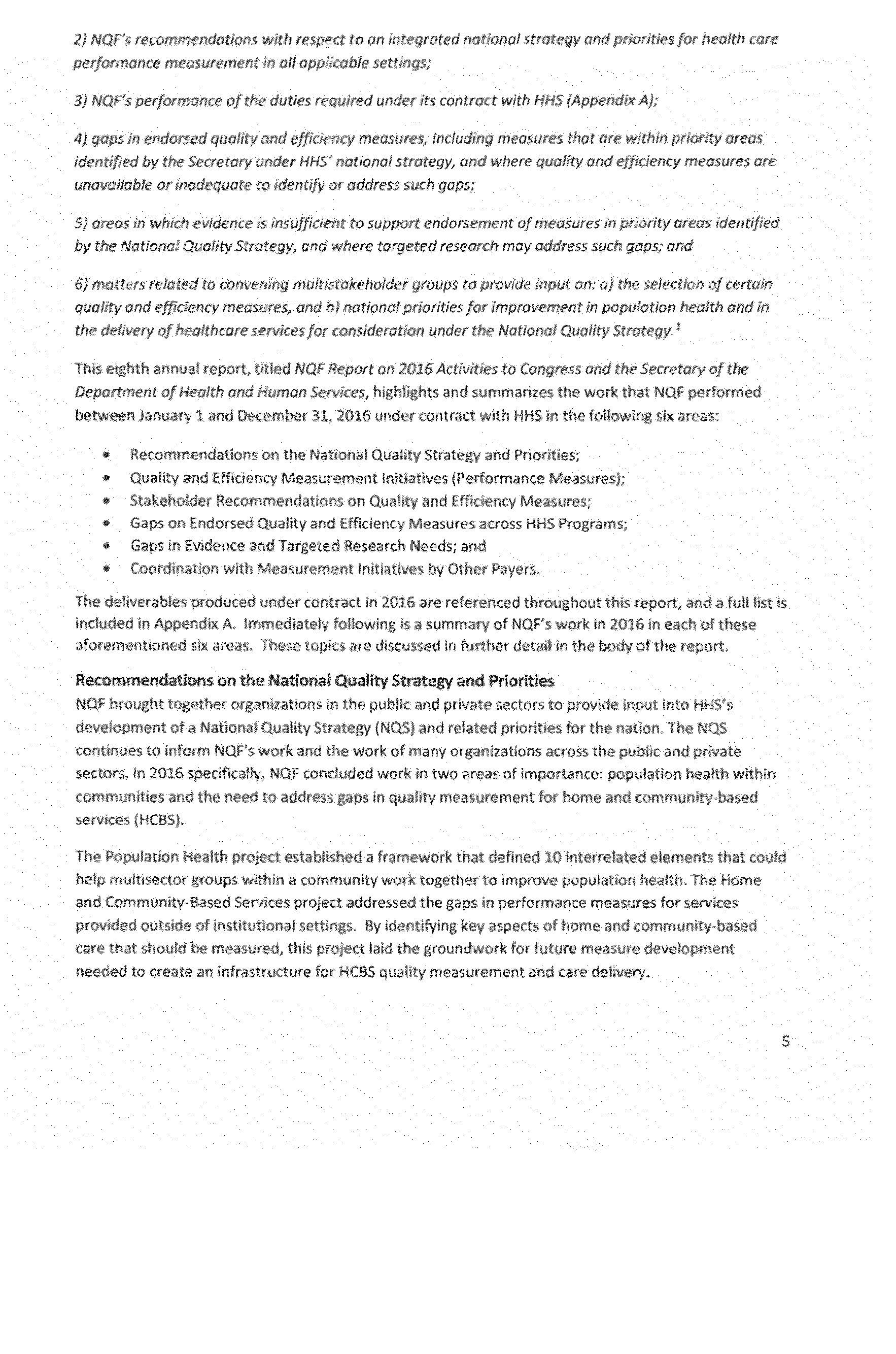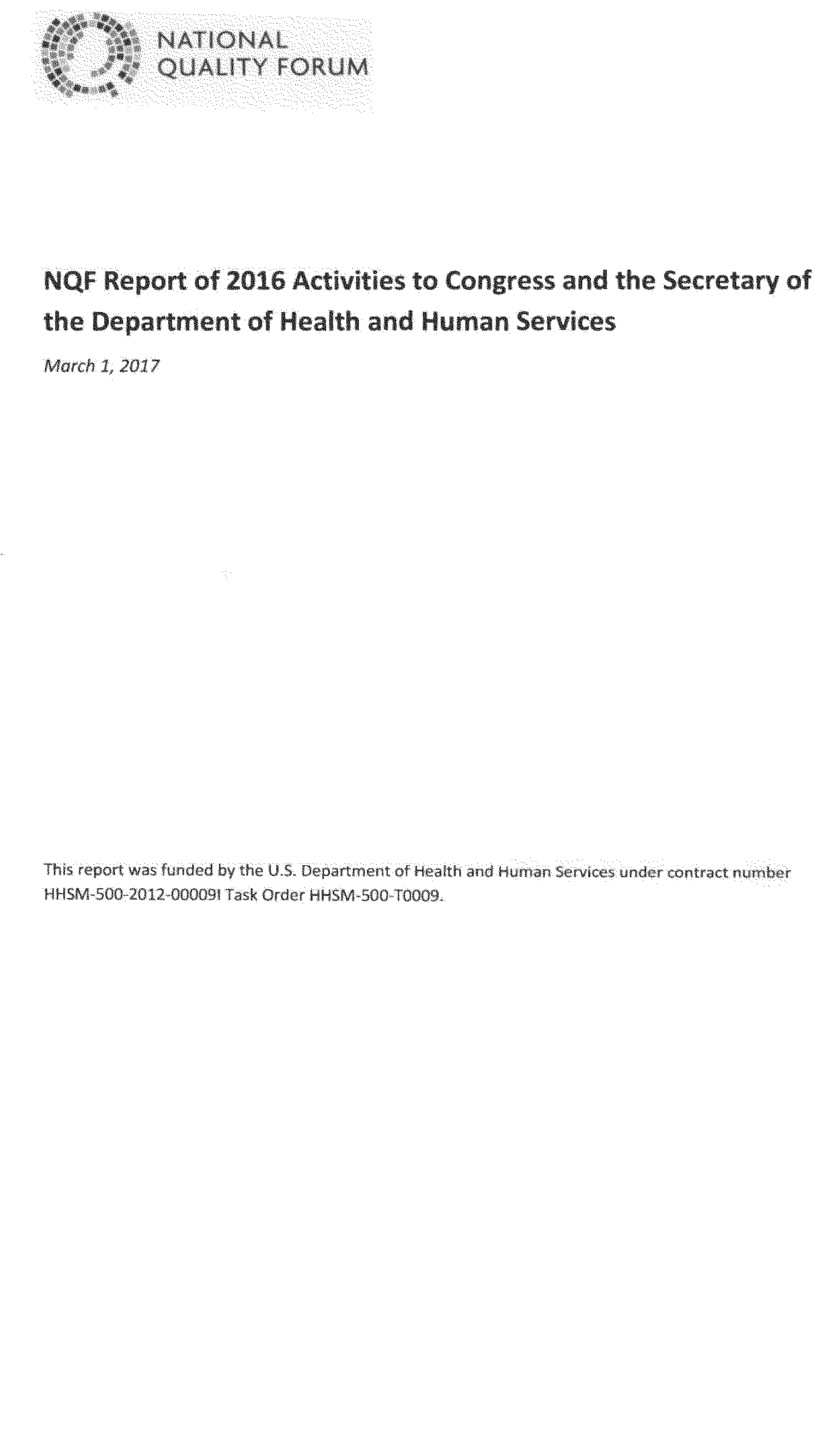 In this Addendum, we are publishing the NQF Report on 2016 Activities to Congress and the Secretary of the Department of Health and Human Services.