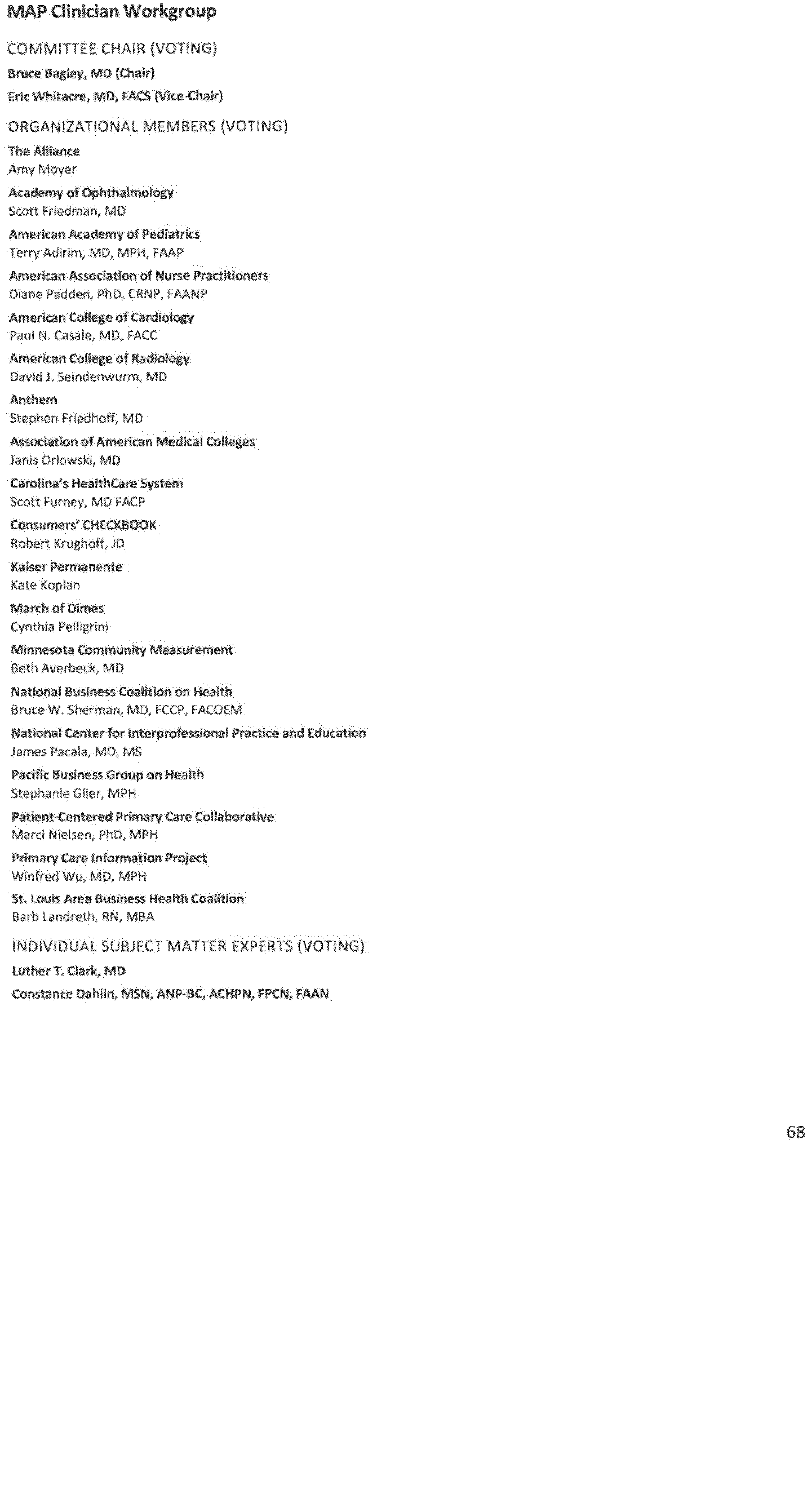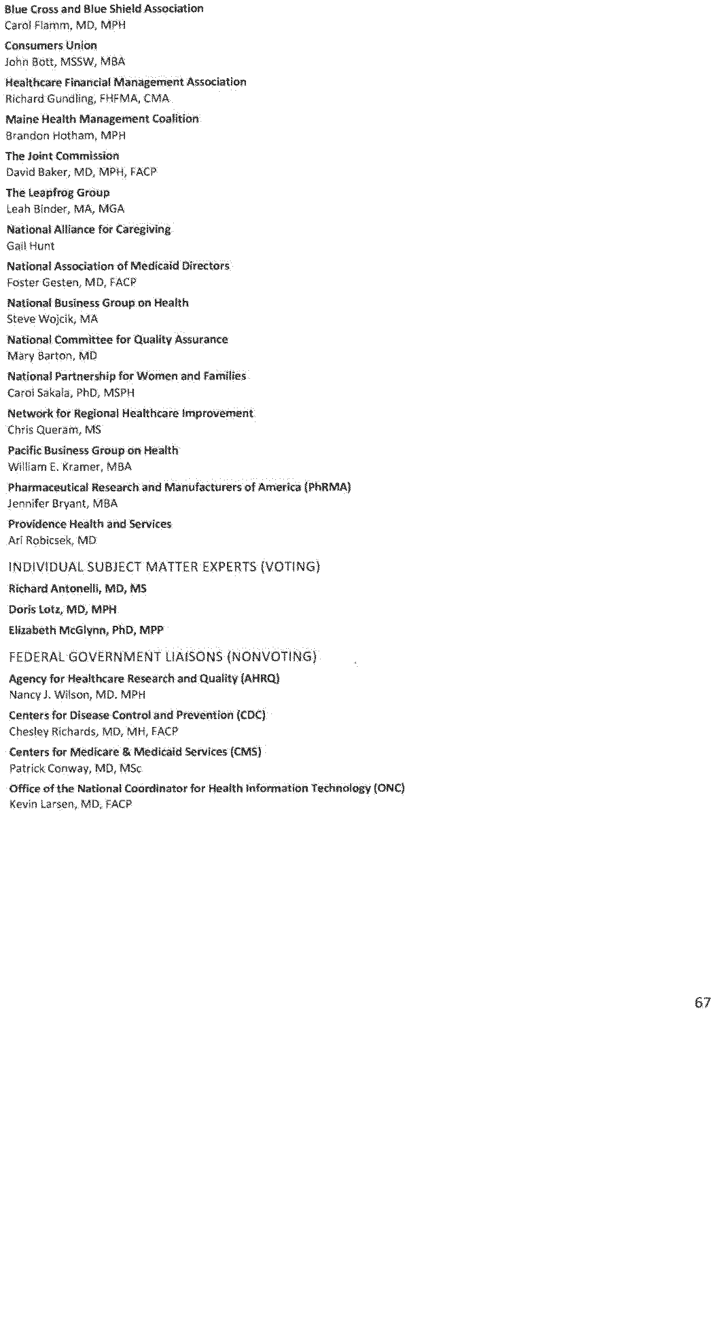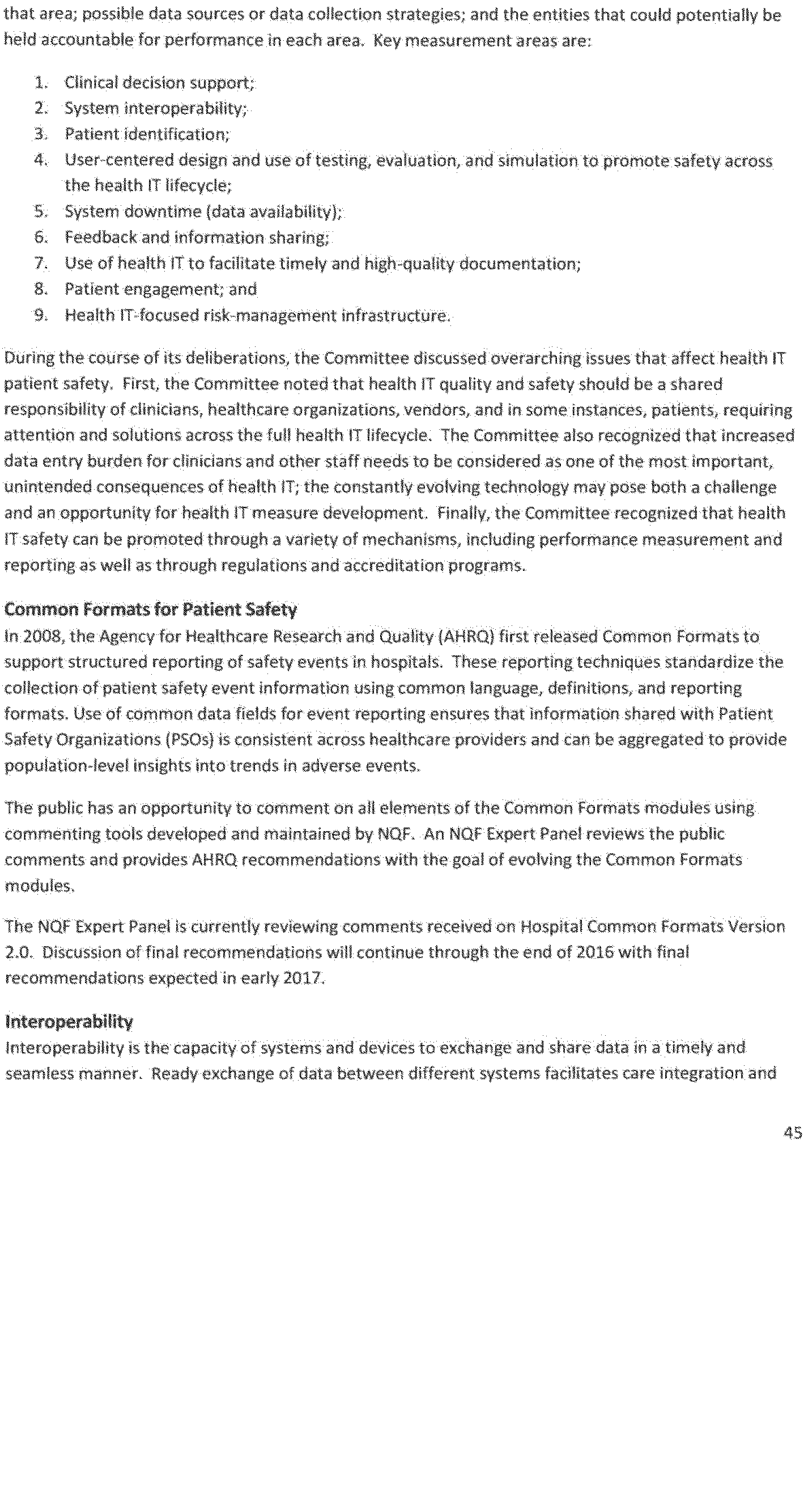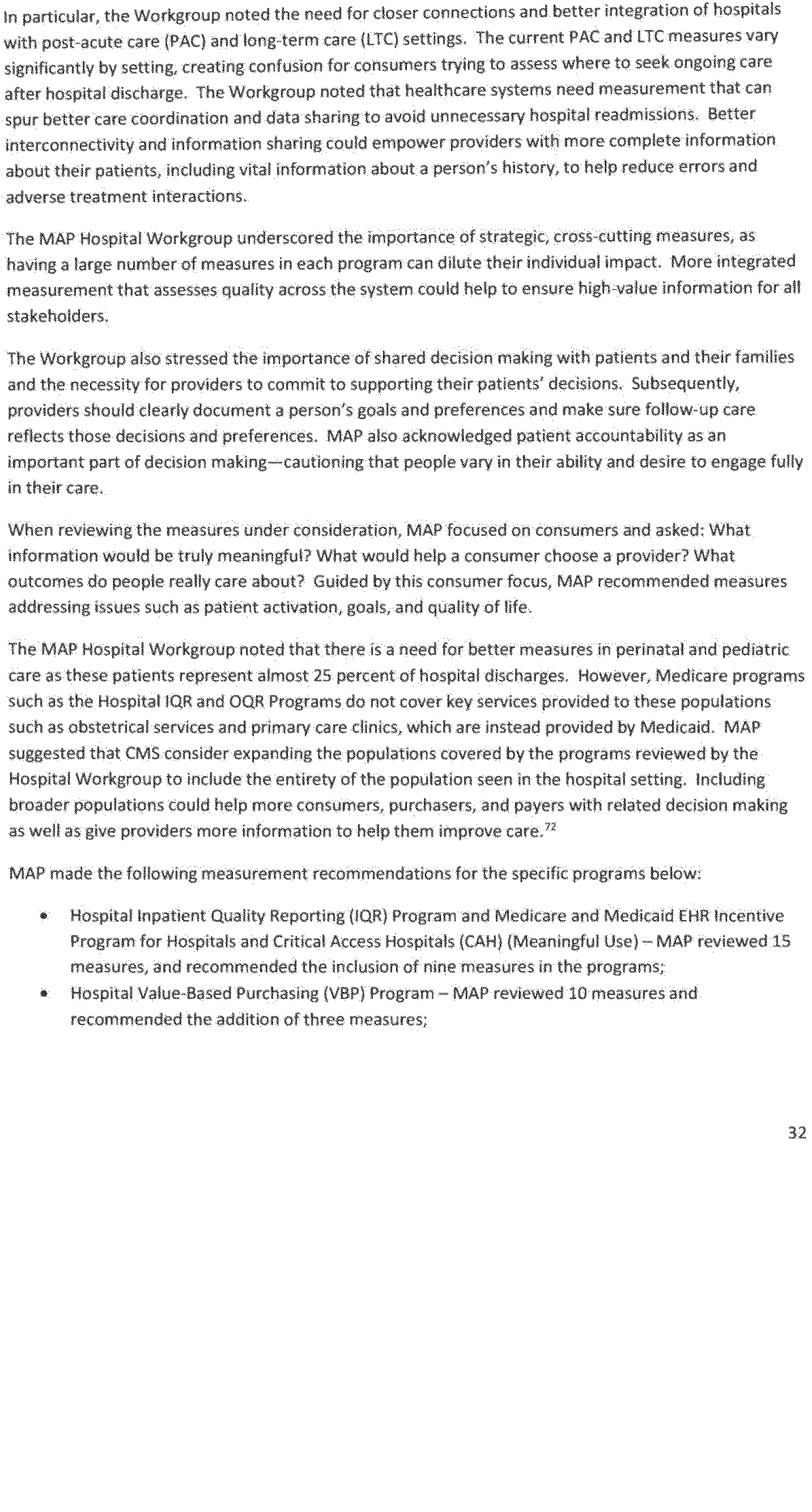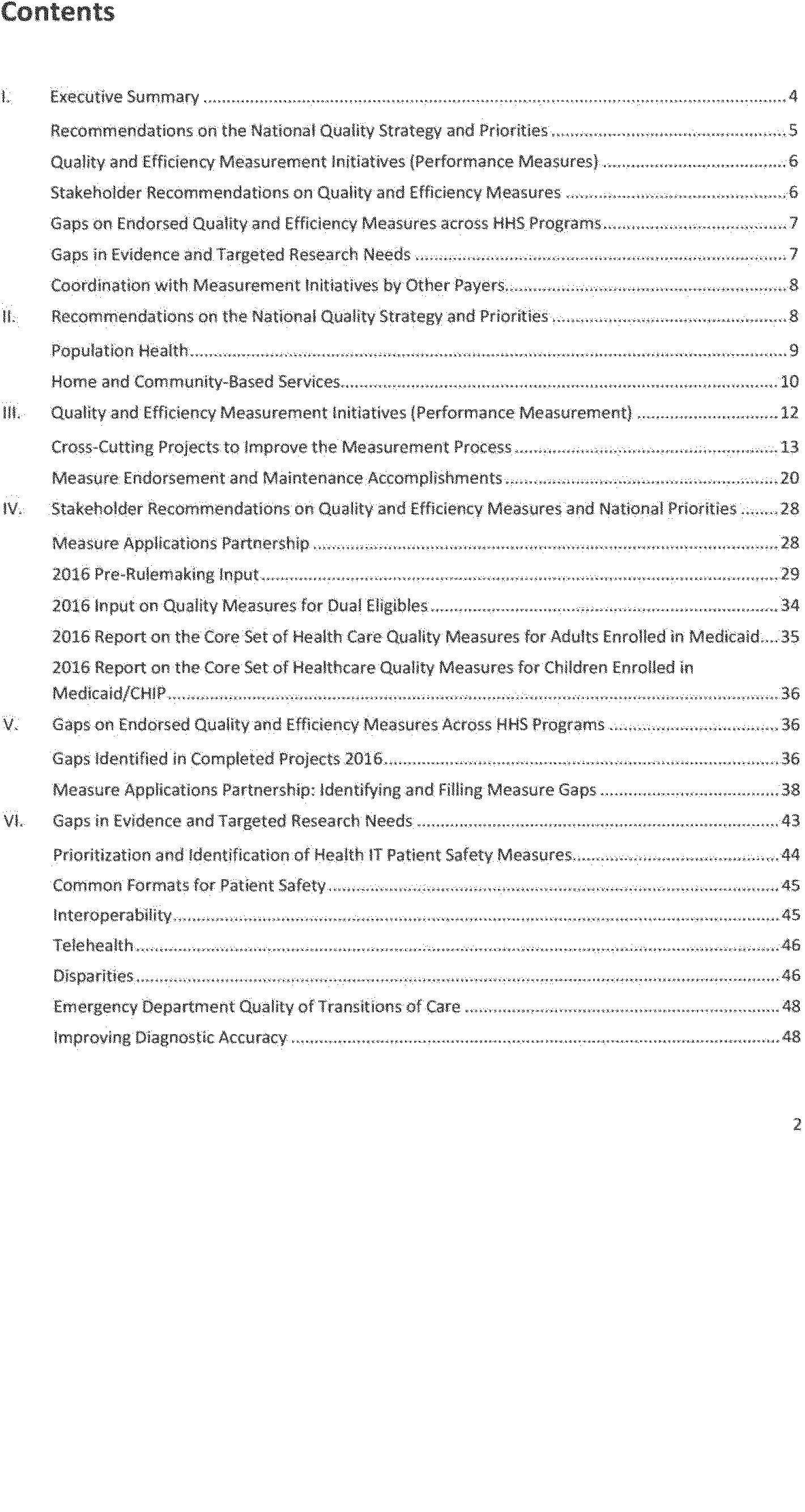 - Recommendations on an integrated national strategy and priorities for health care performance measurement;