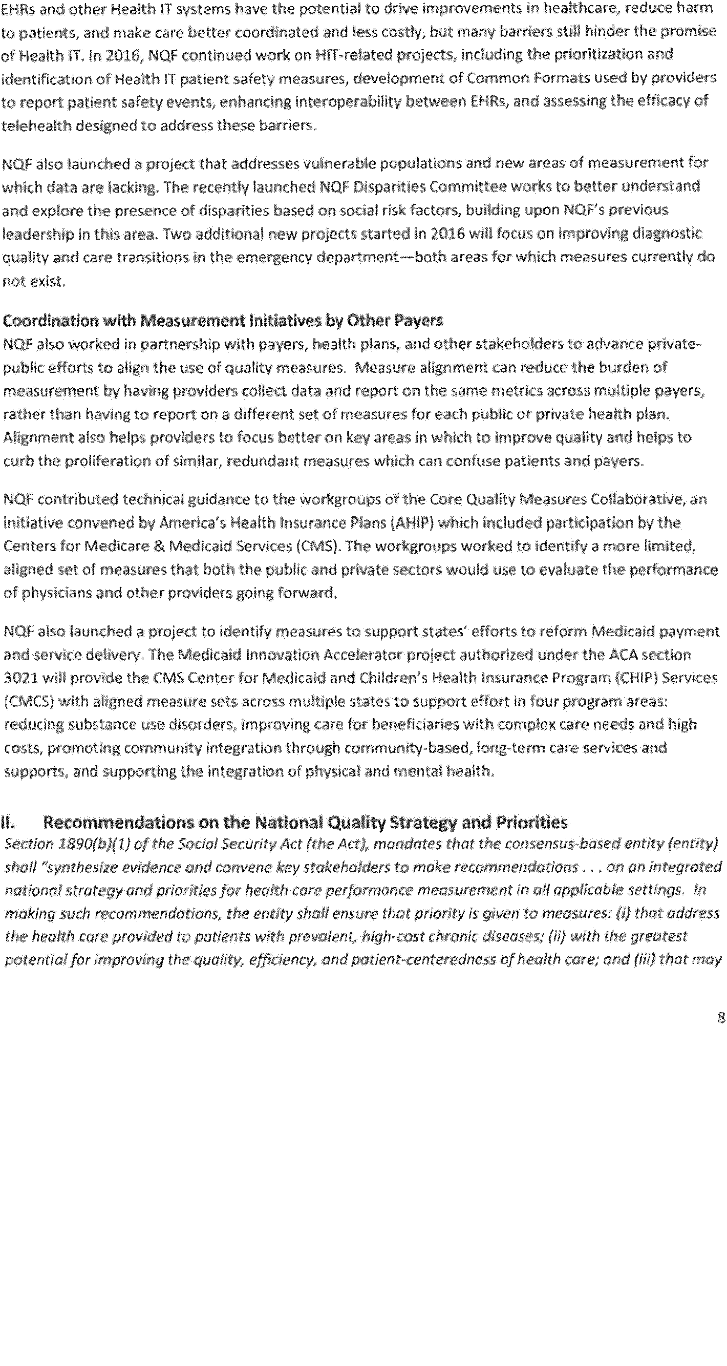 II. Secretarial Comments on the NQF Report of 2016 Activities to Congress and the Secretary of the Department of Health and Human Services