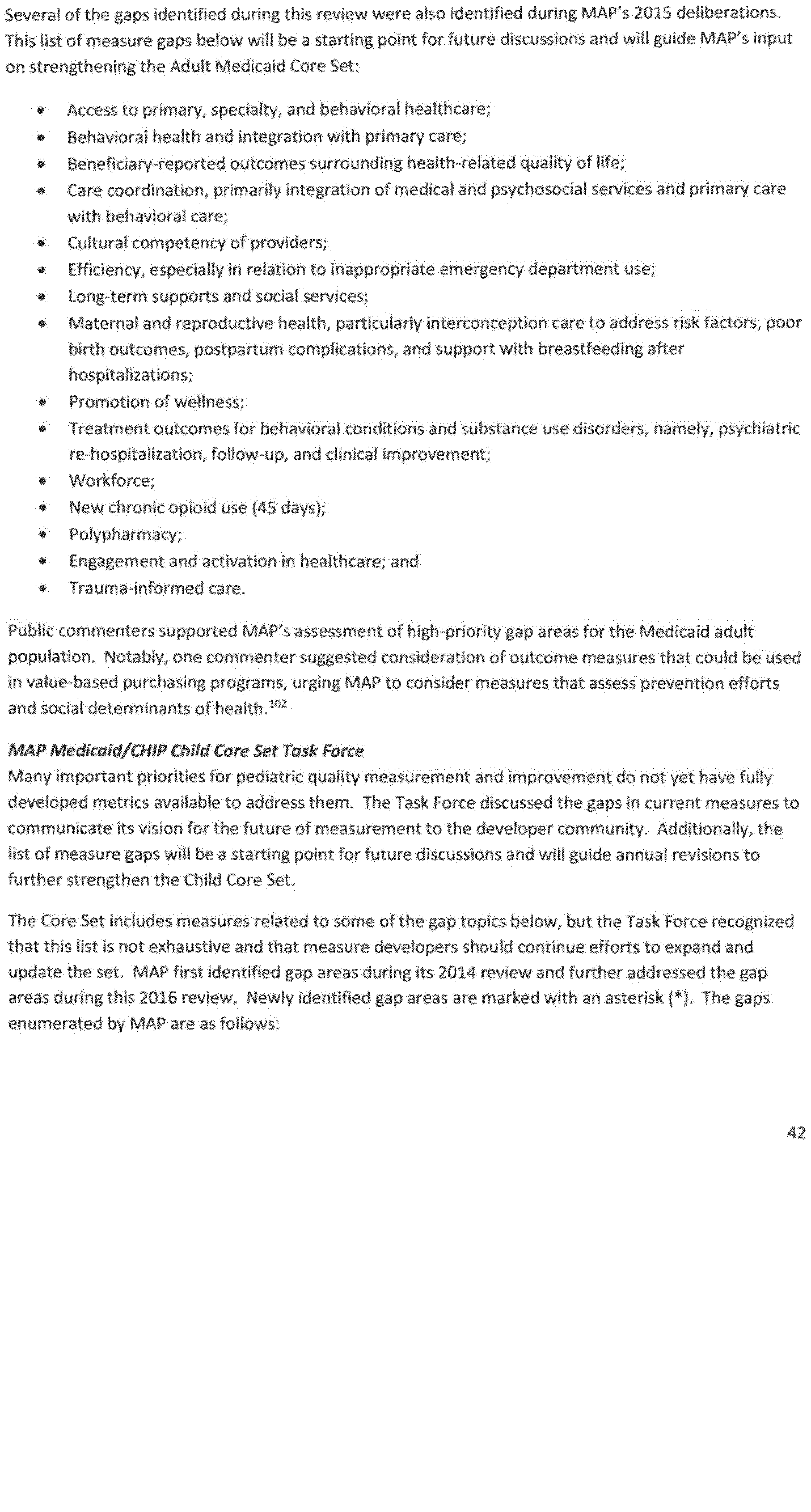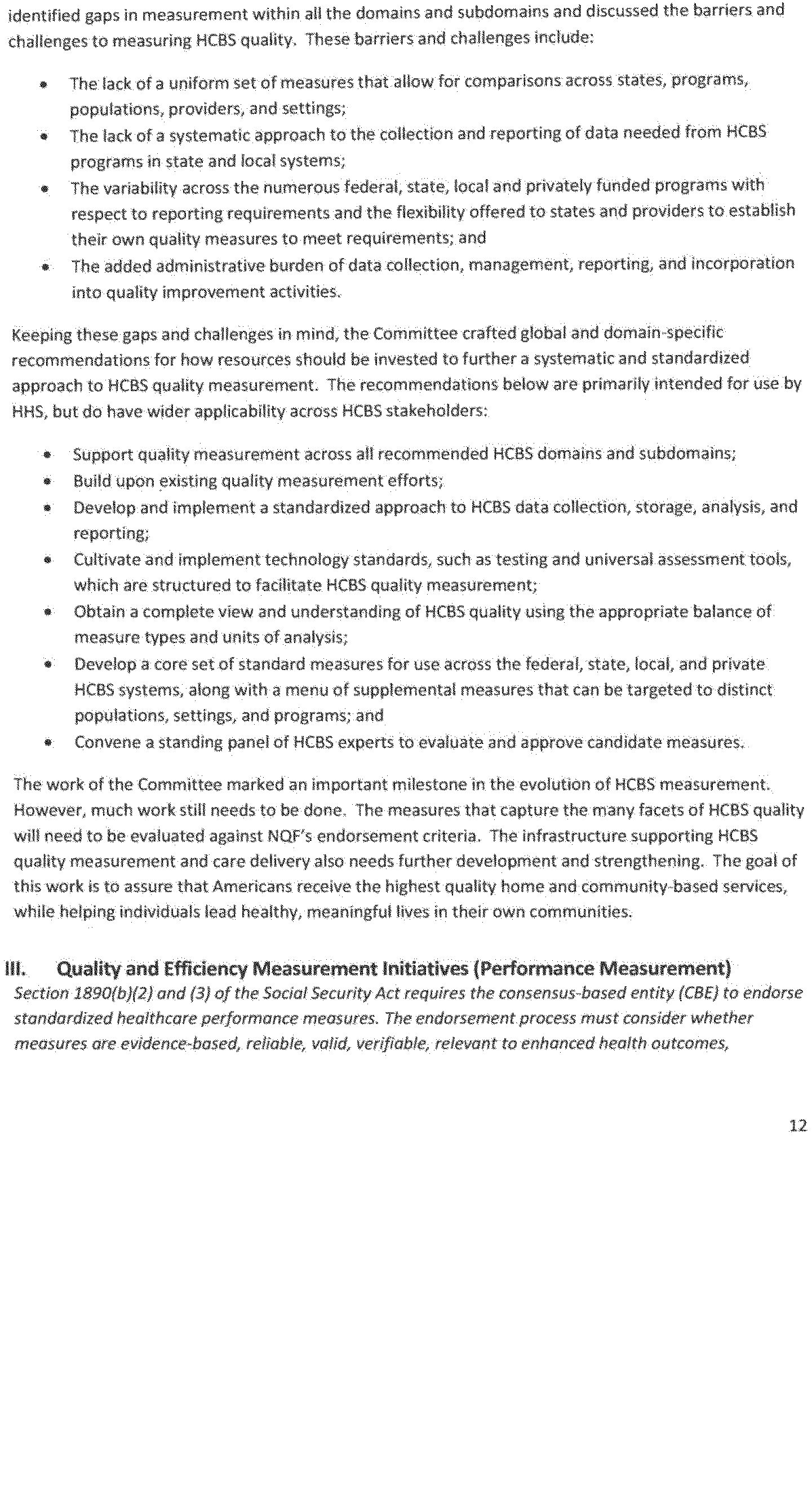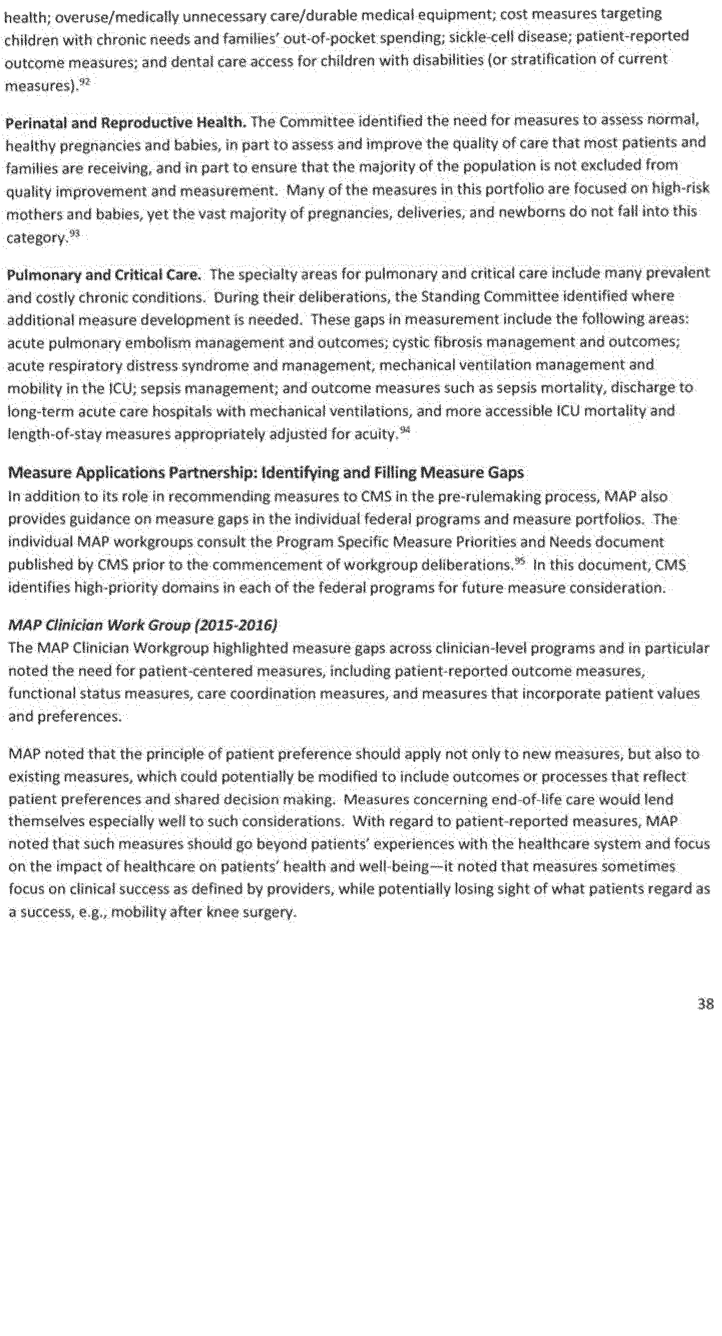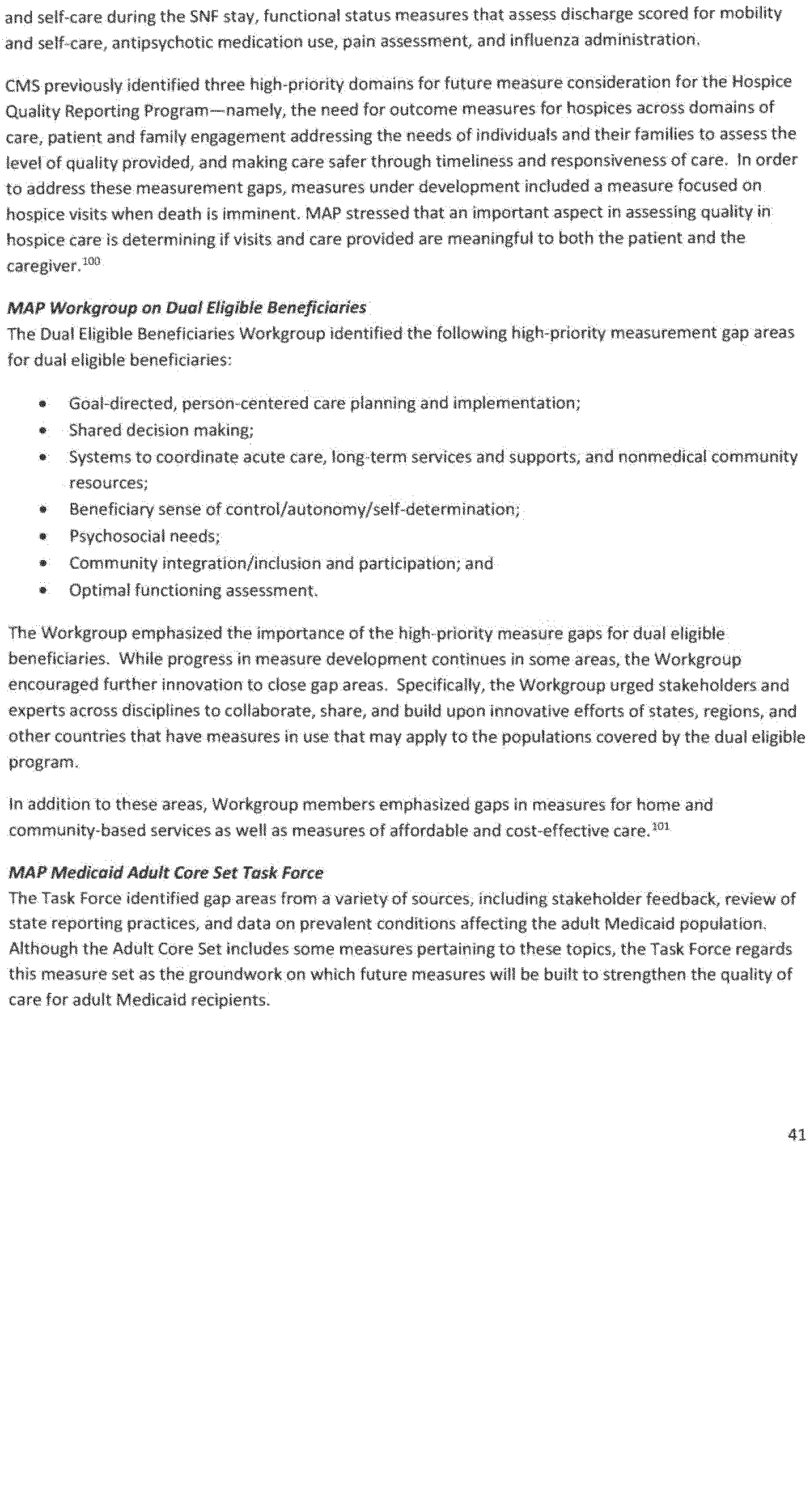 - Gaps in endorsed quality and efficiency measures, including measures that are within priority areas identified by the Secretary under the national strategy established under section 399HH of the Public Health Service Act (National Quality Strategy), and where quality and efficiency measures are unavailable or inadequate to identify or address such gaps;