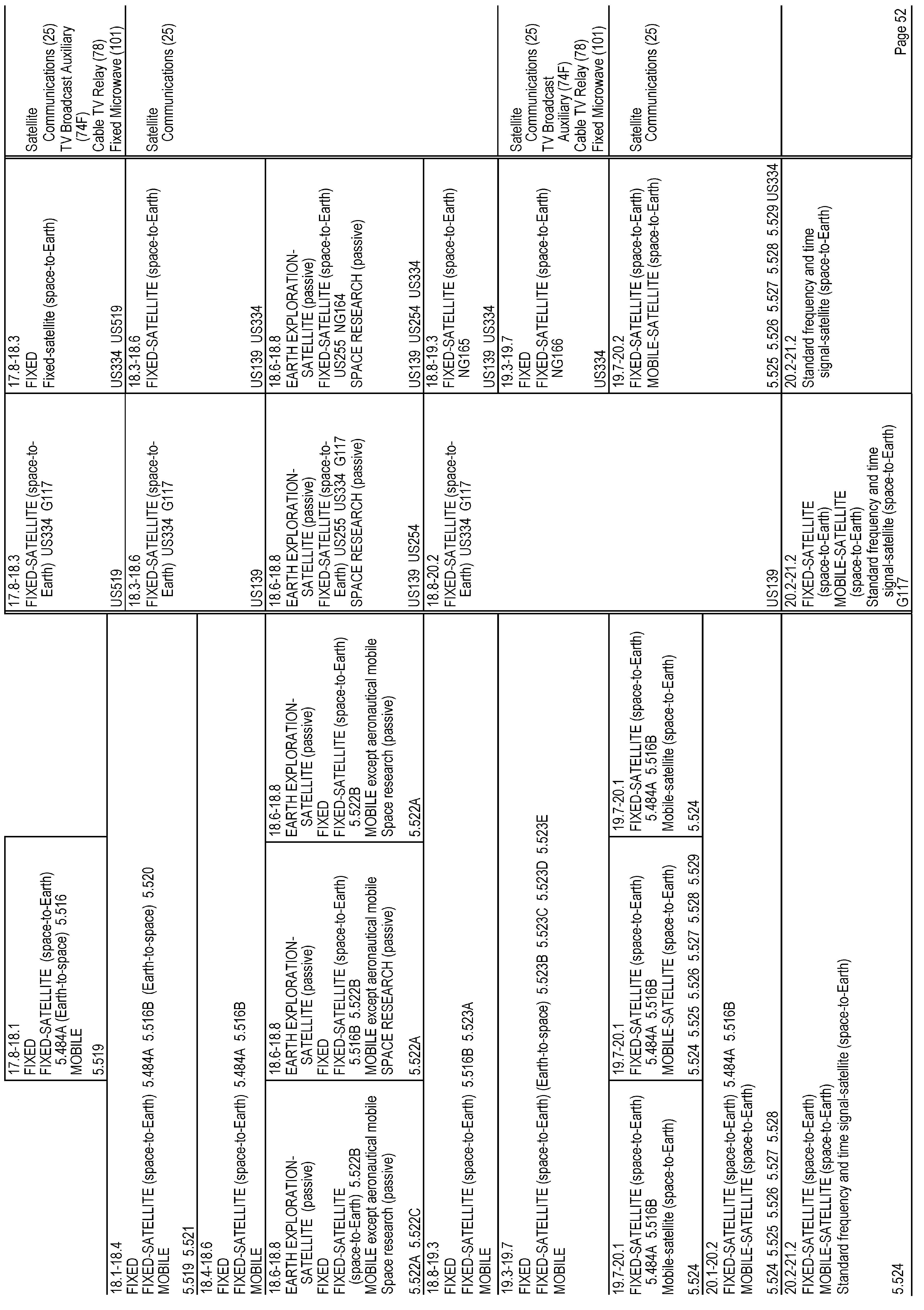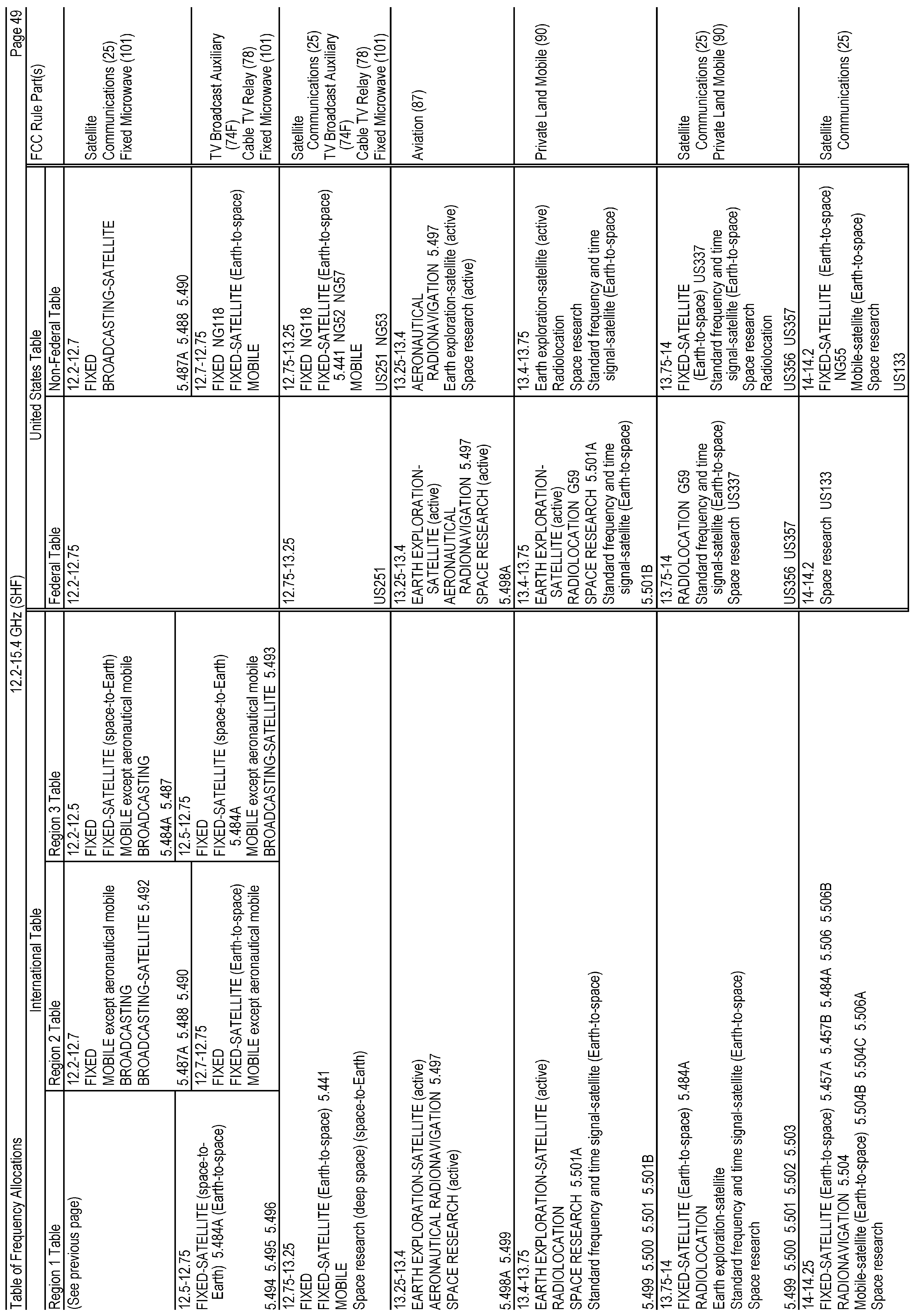 Since we are relocating most of the frequency-use restrictions in this paragraph to the Table of Frequency Allocations, we believe that a bare list of FSS frequencies, without notations of status (primary or secondary), other primary uses, restrictions to certain types of FSS systems or designations among FSS systems, coordination obligations, etc., would not be useful even if maintained accurately. And section 25.202(a)(1) has not been accurate since at least 1996, and is incomplete today. Allocated FSS frequency bands above 50.2 GHz are presently omitted from section 25.202(a)(1). These omissions falsely imply, pursuant to section 25.202(b), that the missing frequencies are subject to case-by-case licensing rather than licensing under default service rules in section 25.217. Because of its potential to generate confusion and no apparent benefit, we delete the FSS frequency list in section 25.202(a)(1). We also reject SpaceX's suggestion to note the Ka-band designations in both section 25.202(a)(1) and the Table of Frequency Allocations. We do not wish to recreate the Table in section 25.202(a)(1), an invitation for discrepancies, and see no reason to single out the Ka-band designations over the many other limitations noted in the Table.