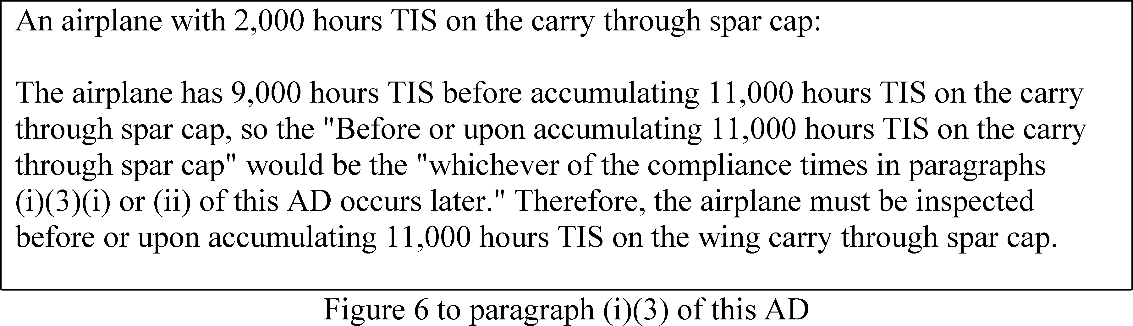 (i) Before or upon accumulating 11,000 TIS on the carry through spar cap; or