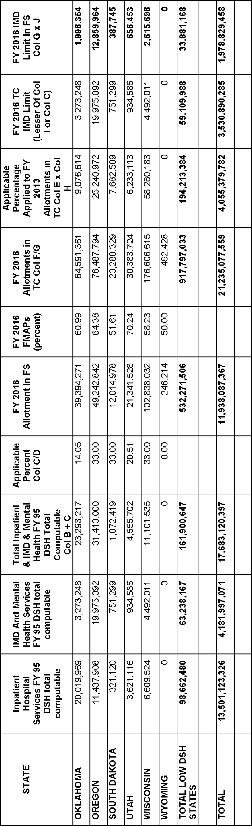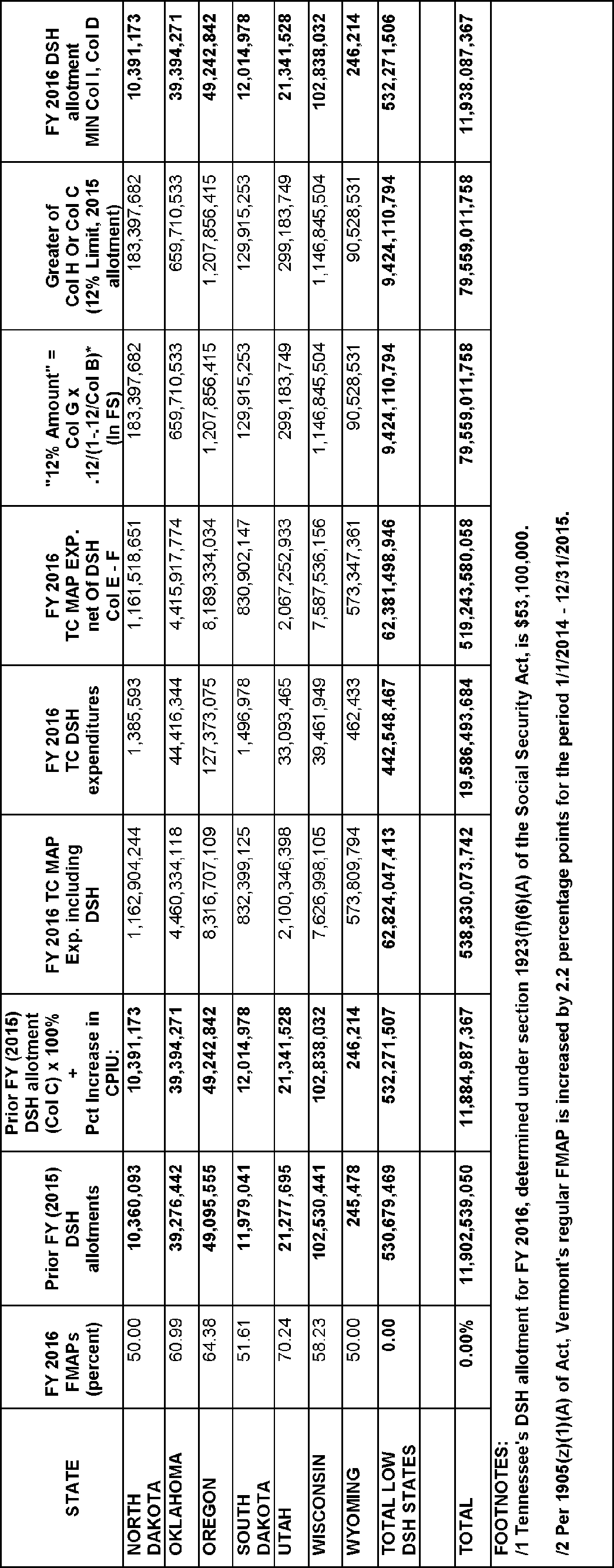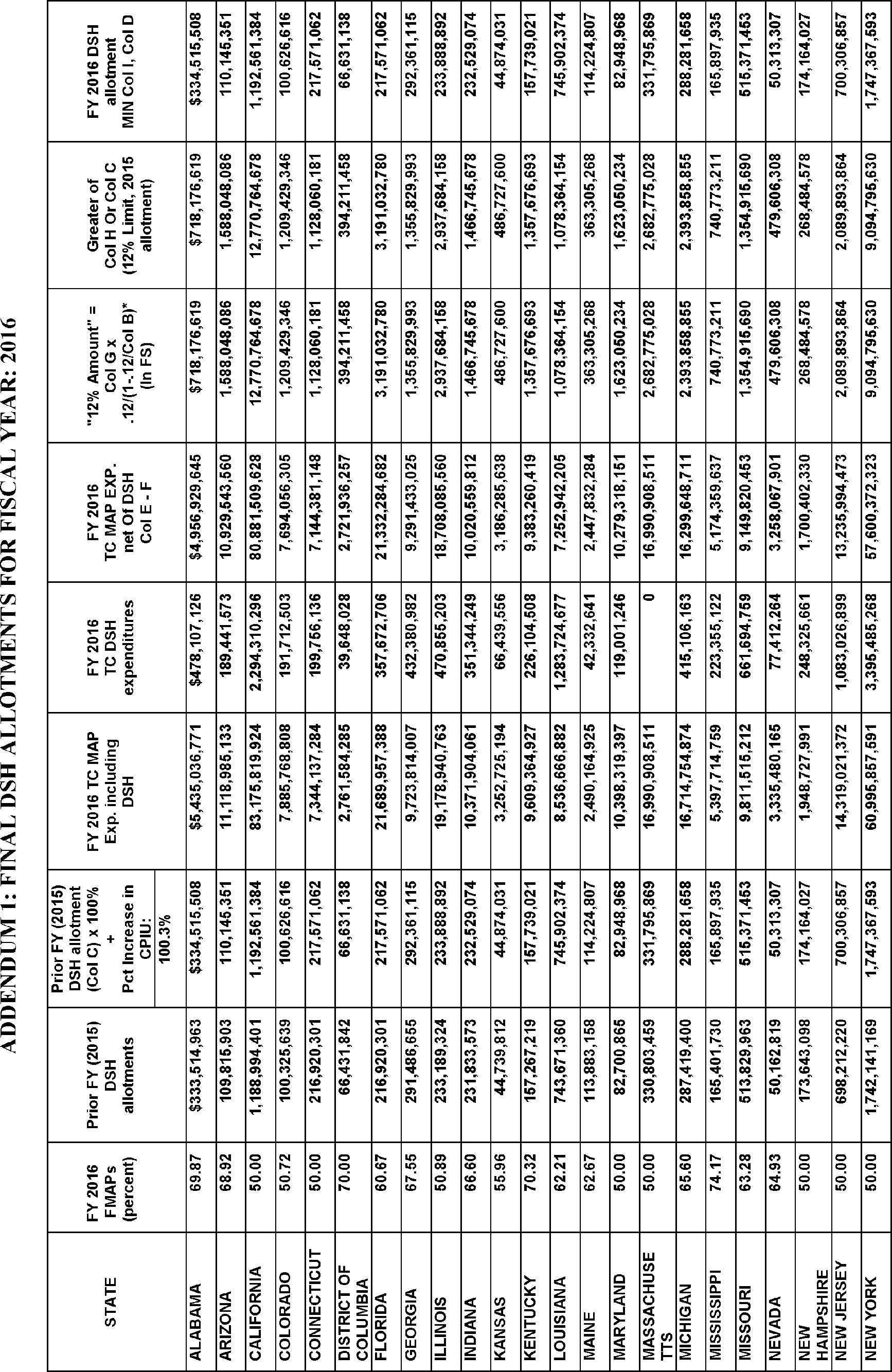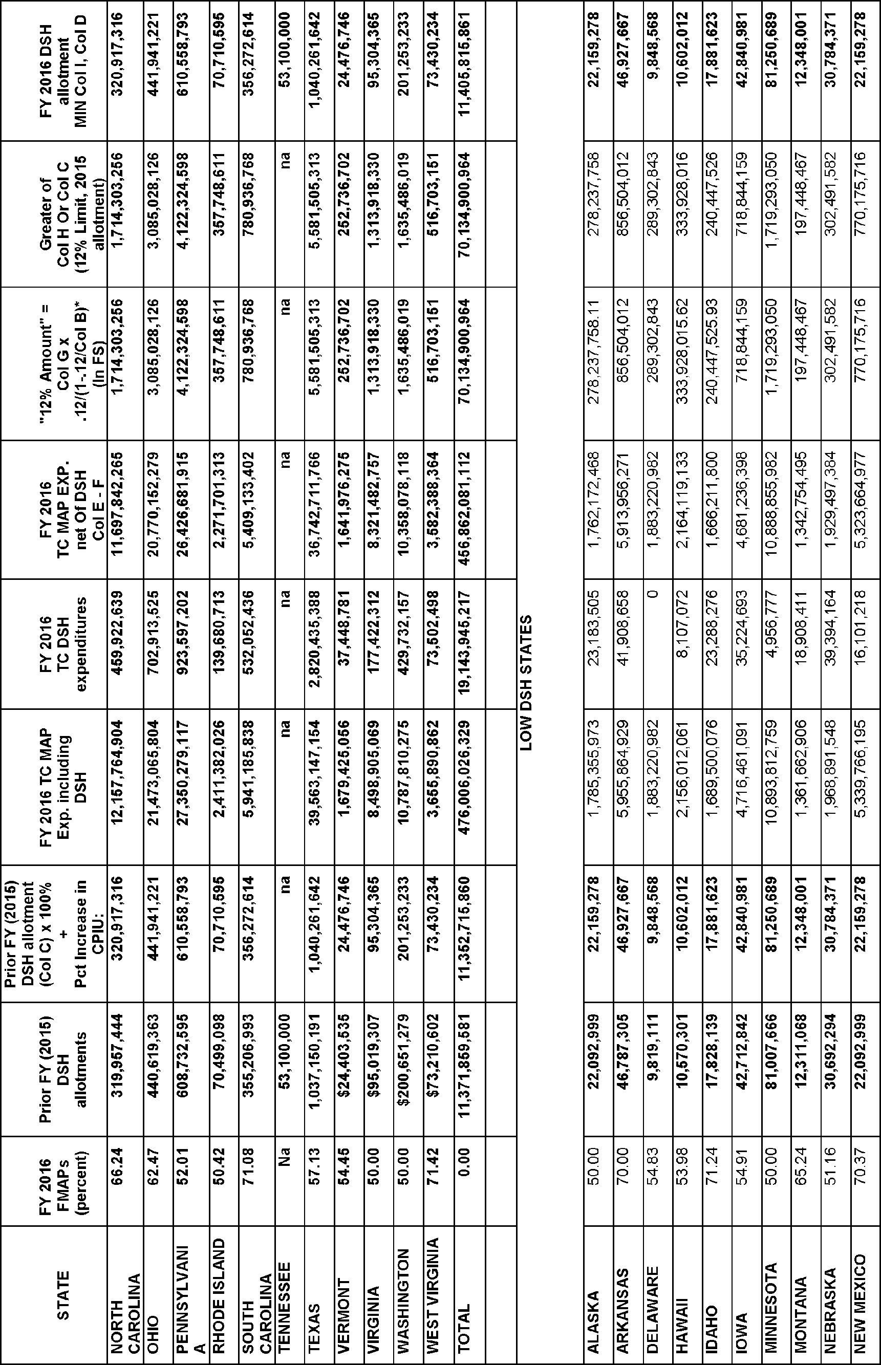 The Final FY 2016 DSH Allotments for the NON-Low DSH States are presented in the top section of this addendum, and the Final FY 2016 DSH Allotments for the Low-DSH States are presented in the bottom section of this addendum.