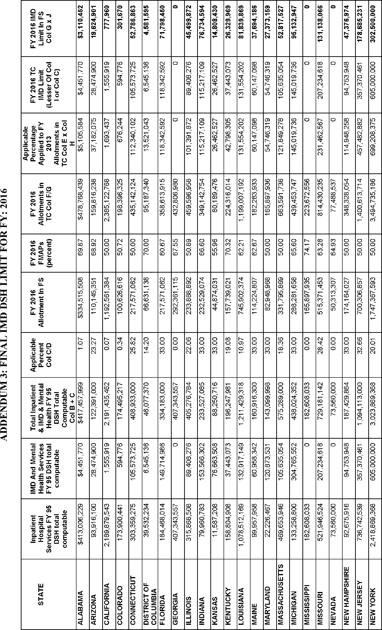 Key to ADDENDUM 3—Final IMD DSH Limits for FY 2016