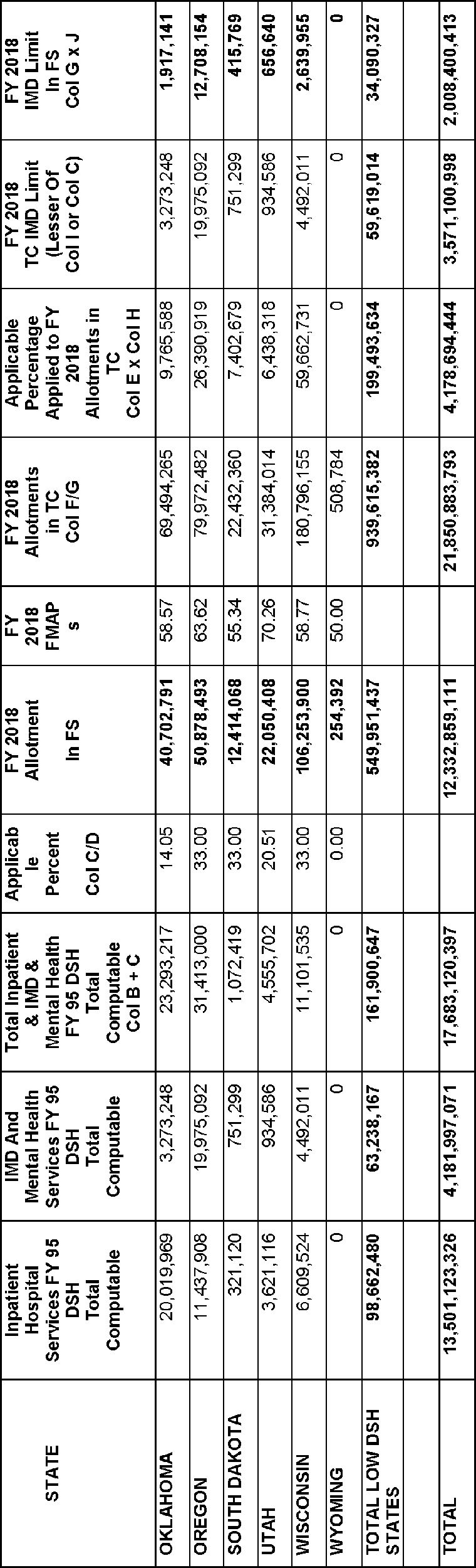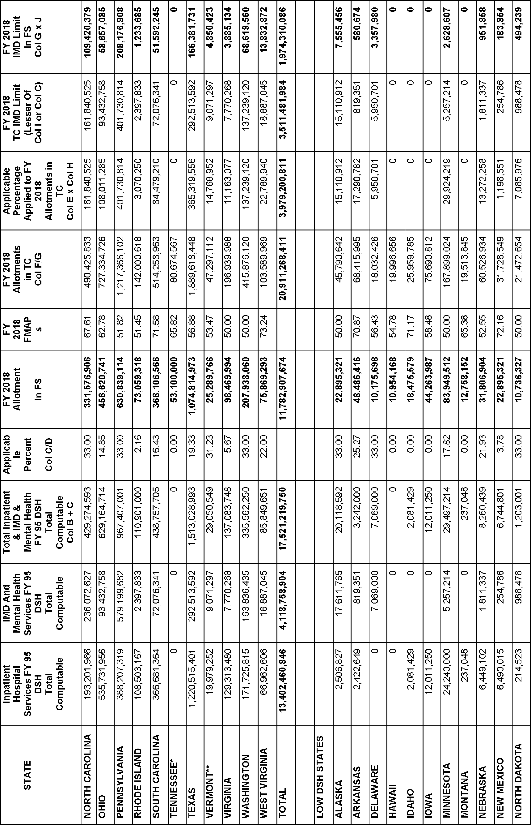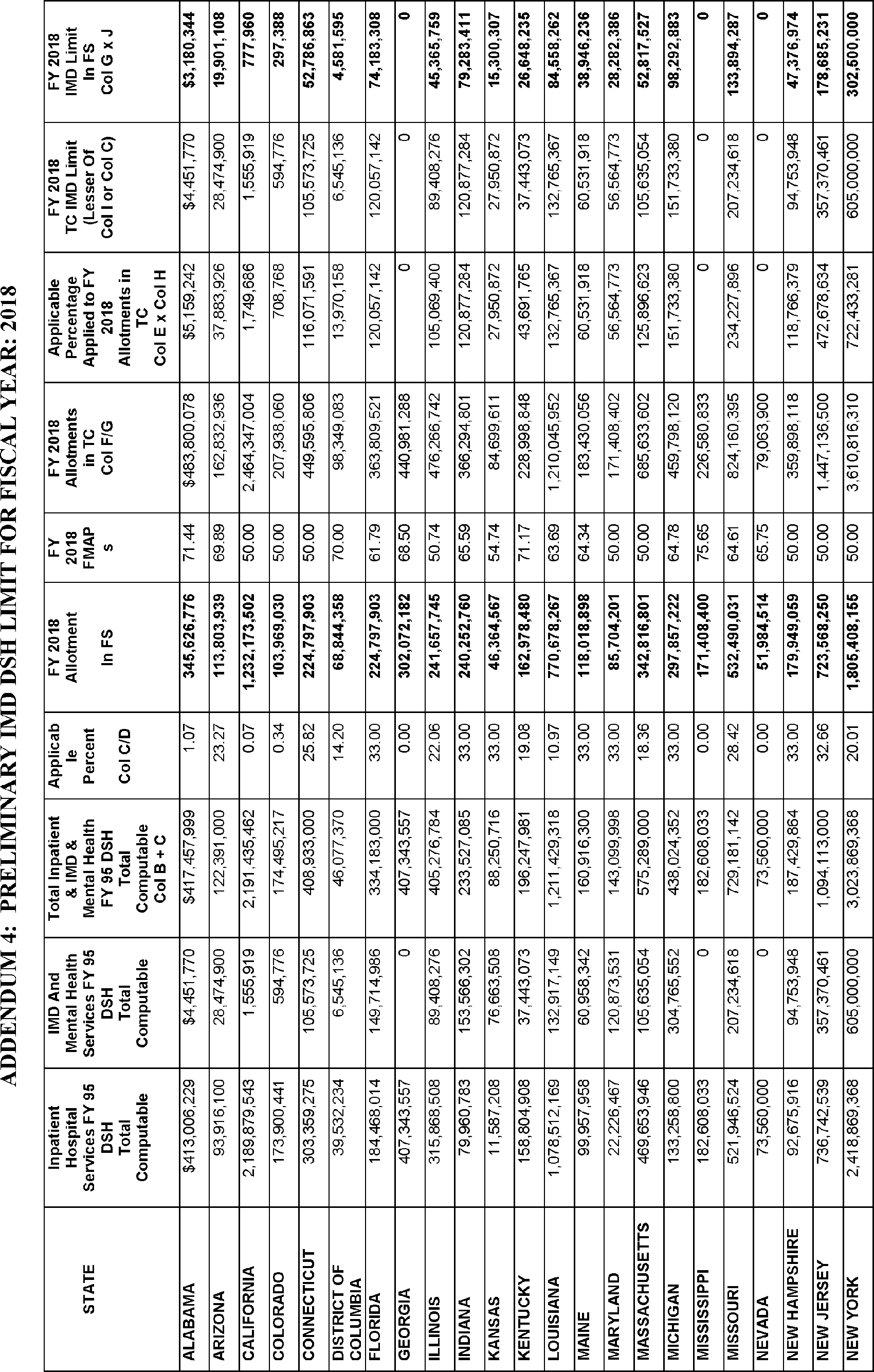 The preliminary FY 2018 IMD DSH Limits for the Non-Low DSH States are presented in the top section of this addendum and the preliminary FY 2018 IMD DSH Limits for the Low-DSH States are presented in the bottom section of the addendum.
