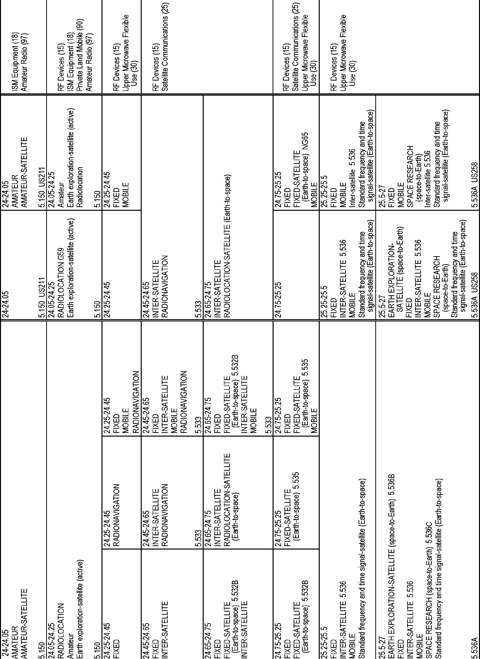 NG65 In the bands 24.75-25.25 GHz, 47.2-48.2 GHz and 50.4-51.4 GHz, stations in the fixed and mobile services may not claim protection from individually licensed earth stations authorized pursuant to 47 CFR 25.136. However, nothing in this footnote shall limit the right of UMFUS licensees to operate in conformance with the technical rules contained in 47 CFR part 30. The Commission reserves the right to monitor developments and to undertake further action concerning interference between UMFUS and FSS, including aggregate interference to satellite receivers, if appropriate.