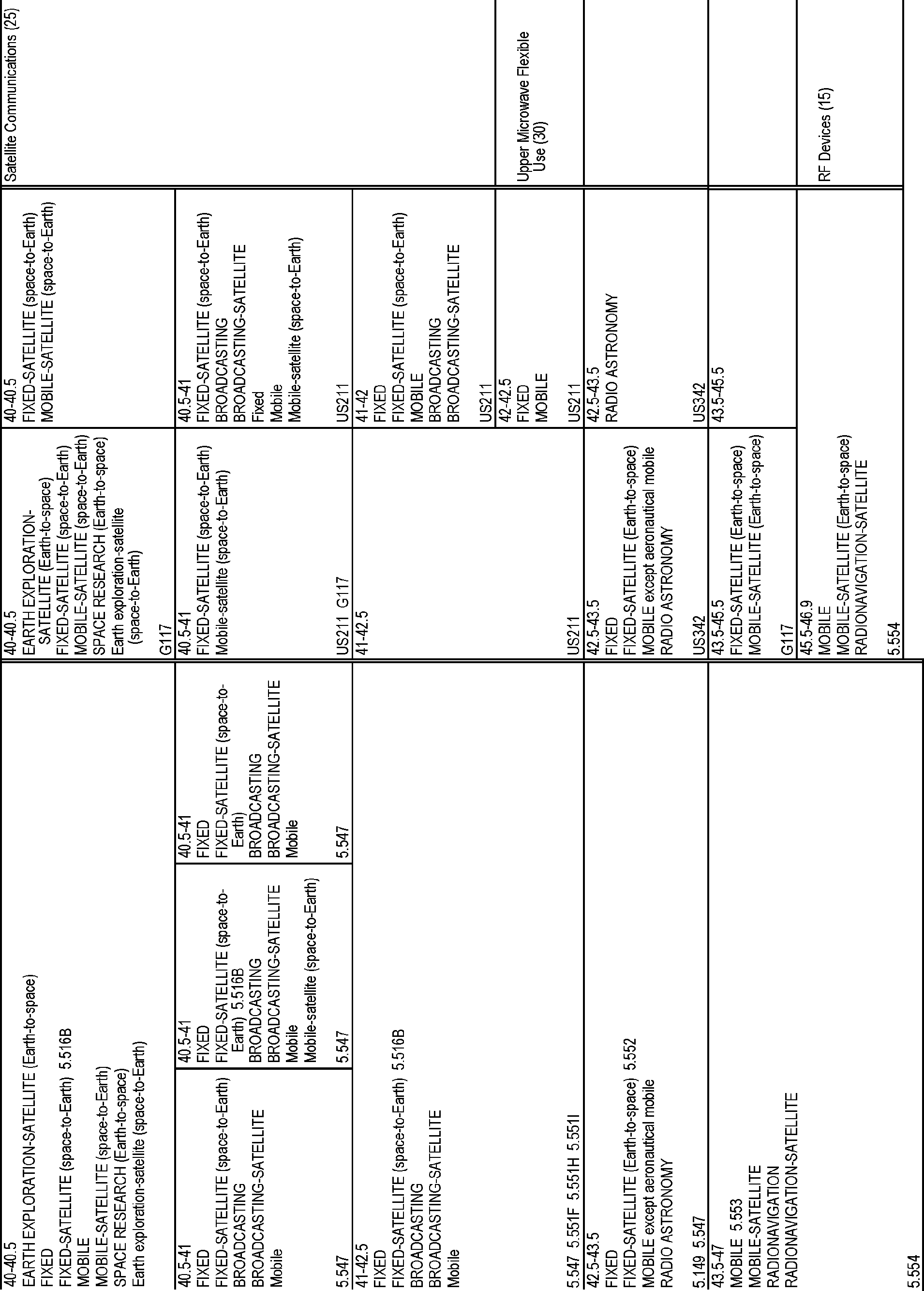 5. Certain FSS operators argue that the band should be licensed for satellite uses, and they raise arguments similar to those raised in petitions for reconsideration of the Commission's decision not to allocate the 42 GHz band for FSS. FWCC argues the band by itself is too narrow for fixed duplex operations and that, accordingly, the 42 GHz band should be combined with the adjacent 42.5-43.5 GHz band to create a single band with rules for fixed operations. The Commission notes that although in its
